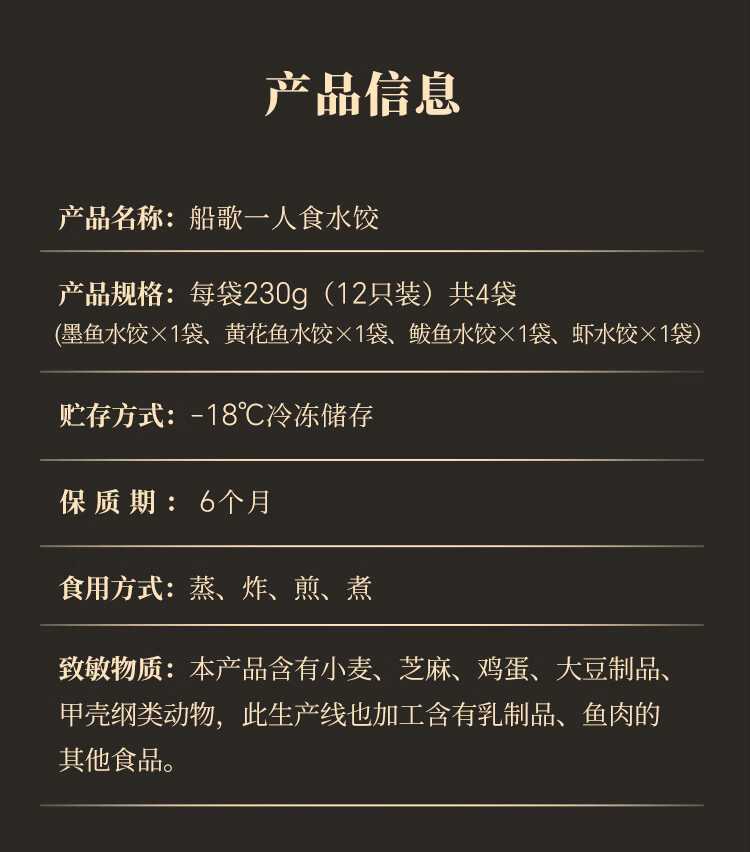 船歌鱼水饺 蒸饺早餐夜宵 青岛 手工海鲜速冻饺子 多味鲅鱼水饺230g*4袋简装