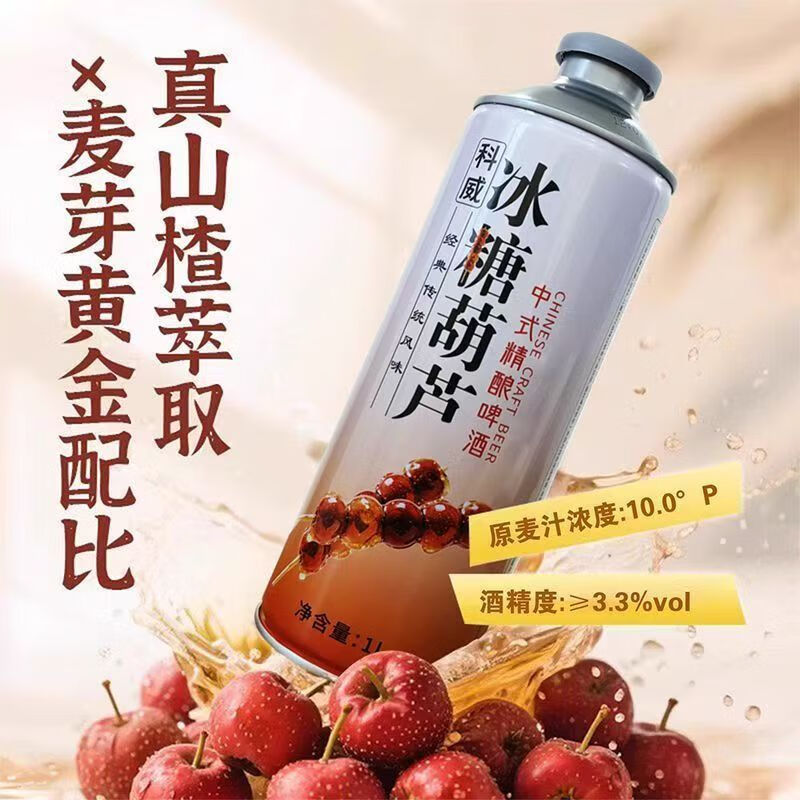 科威精酿冰糖葫芦啤酒10°P 中式精酿果味啤酒1L大罐 节日礼品啤酒 1000mL 2罐 双瓶装 尝鲜