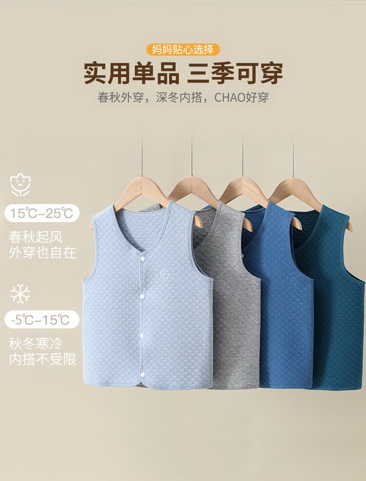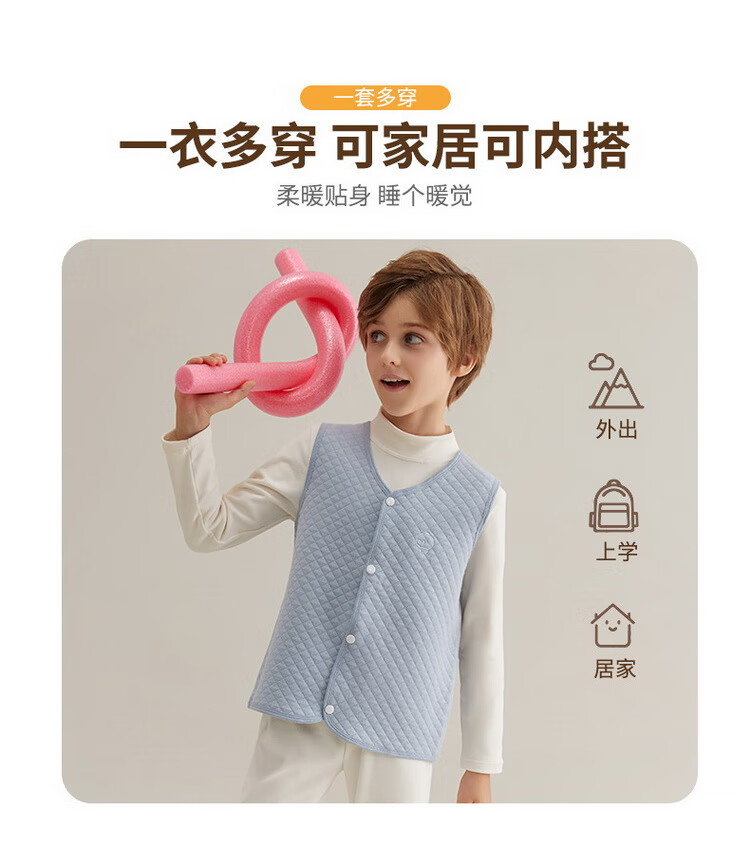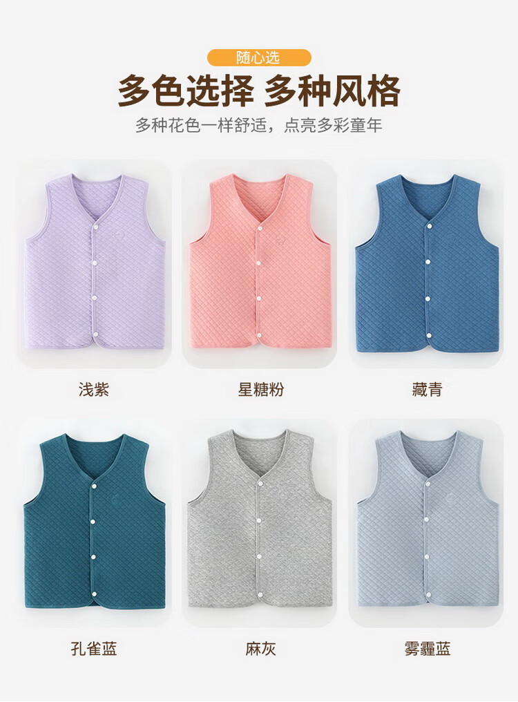 马骑顿童装男童女童三层夹棉空气层加绒加厚背心保暖内胆儿童秋冬马甲 浅紫 140 (身高125-134cm 体重55-65斤)