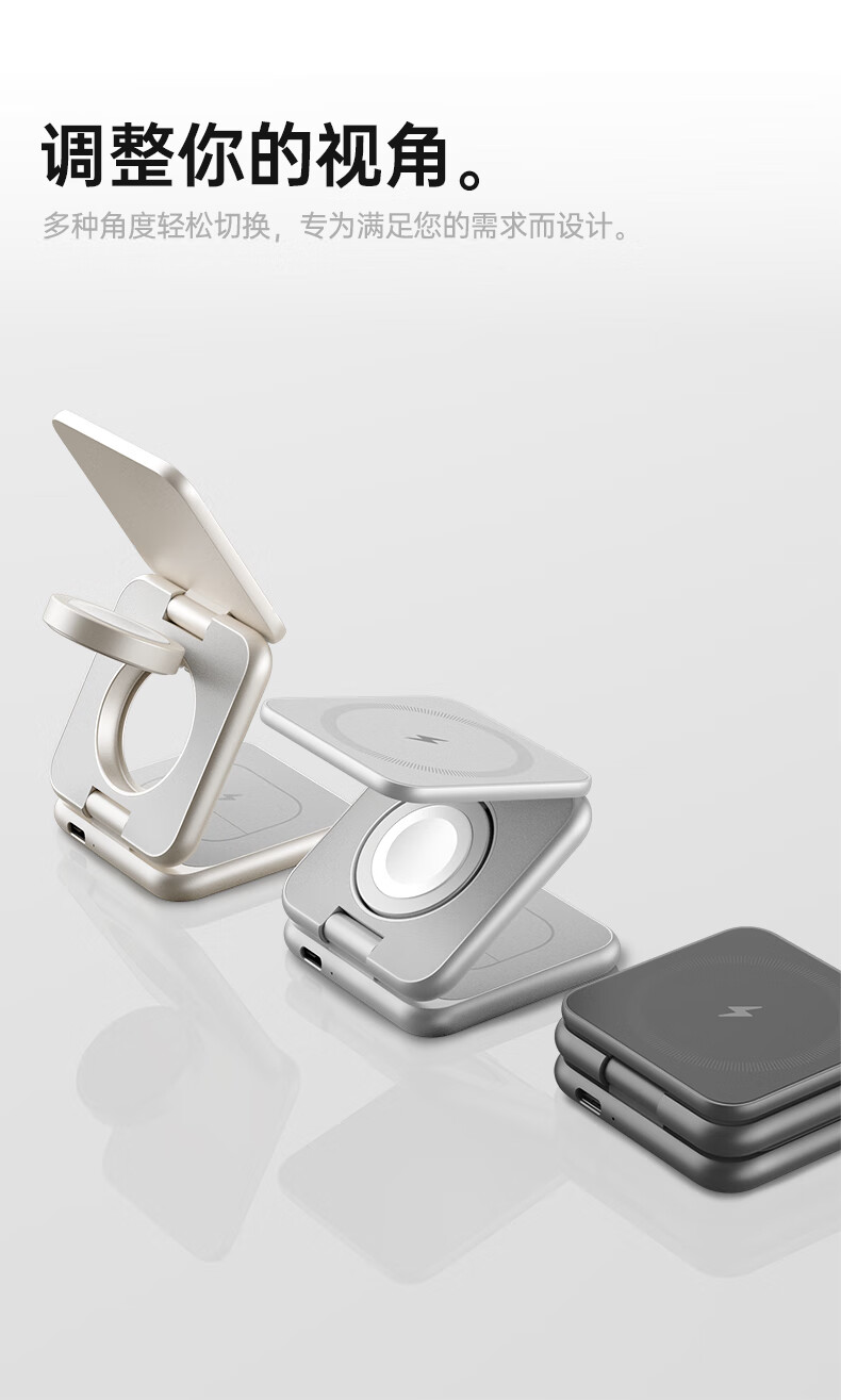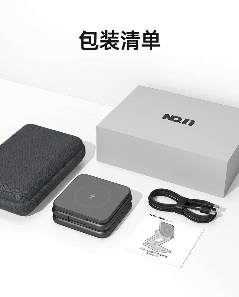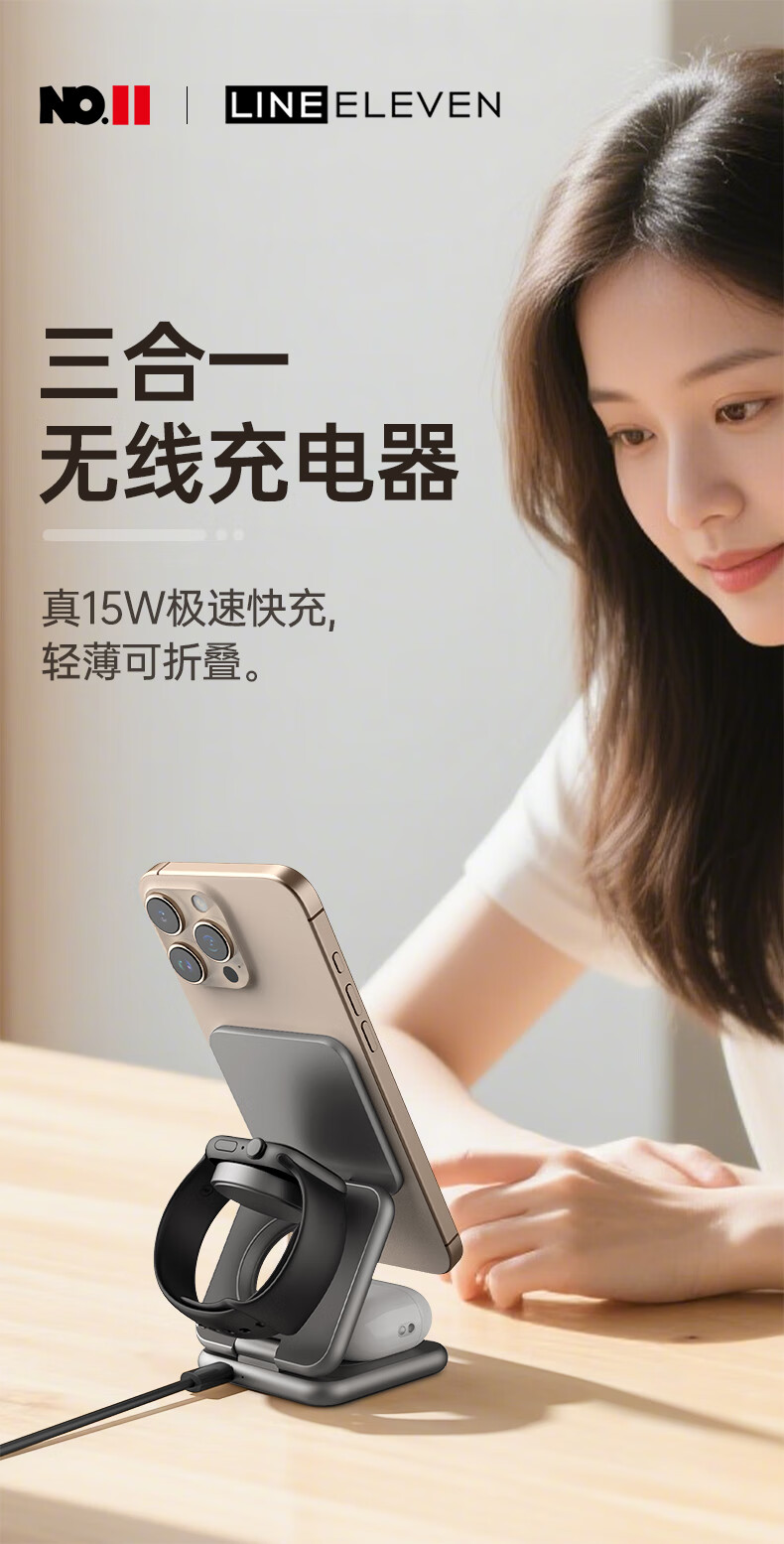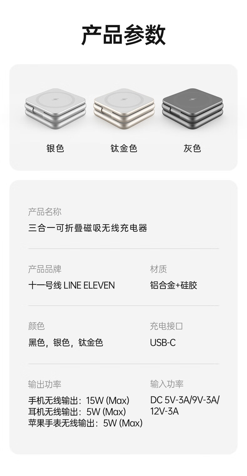 十一号线三合一无线充充电器苹果磁吸式 折叠便携桌面磁吸立式支架MagSafe快充适用 灰色 三合一无线充-X40S+
