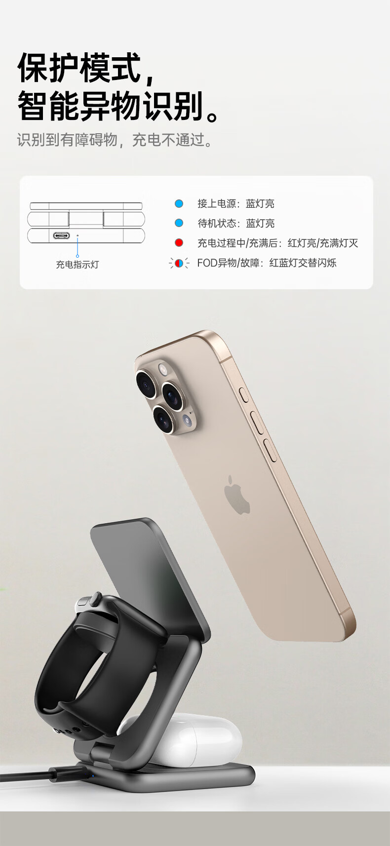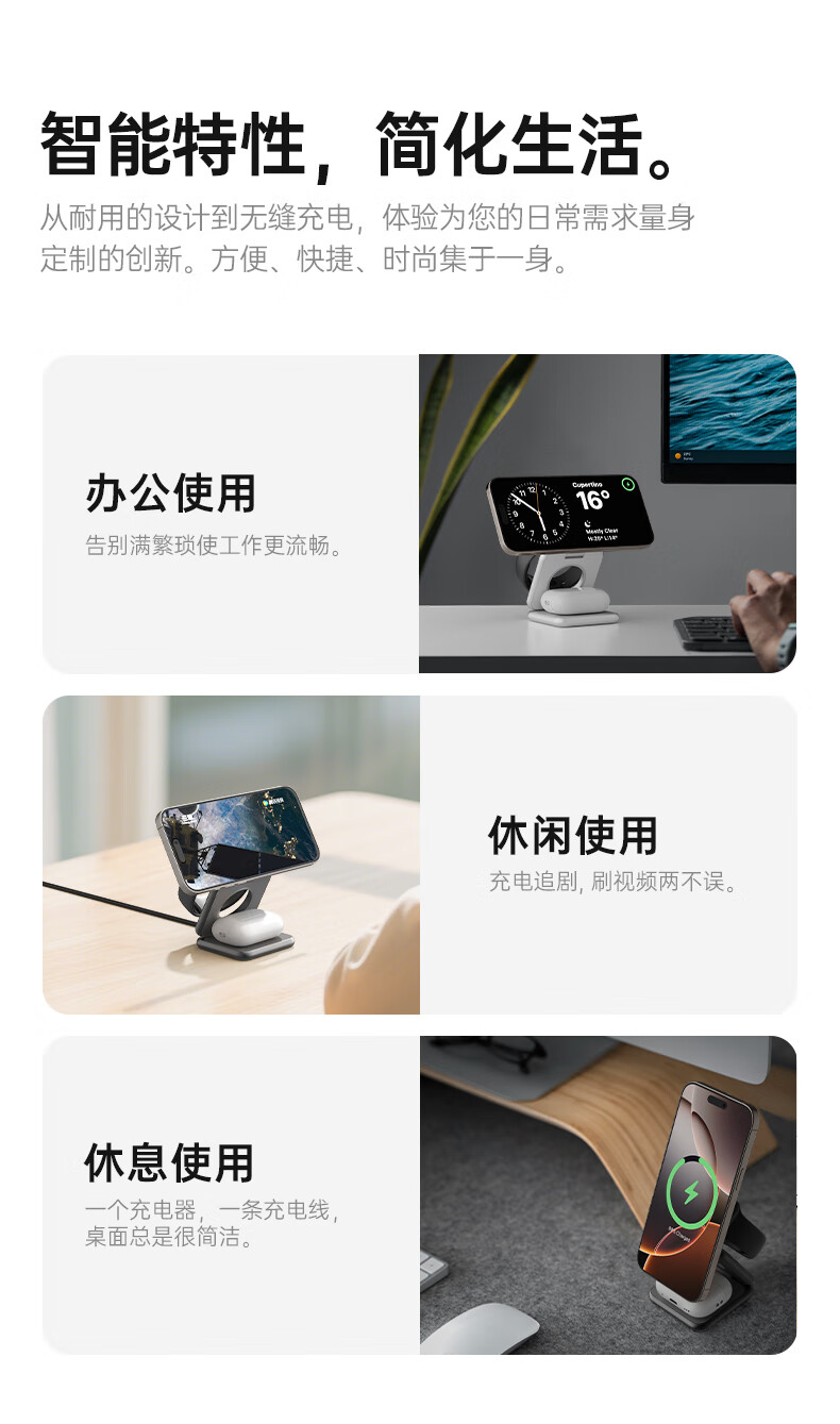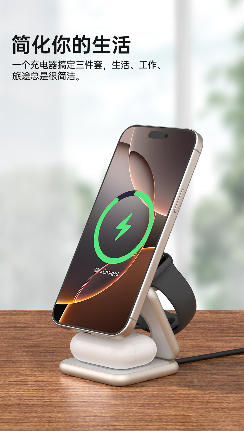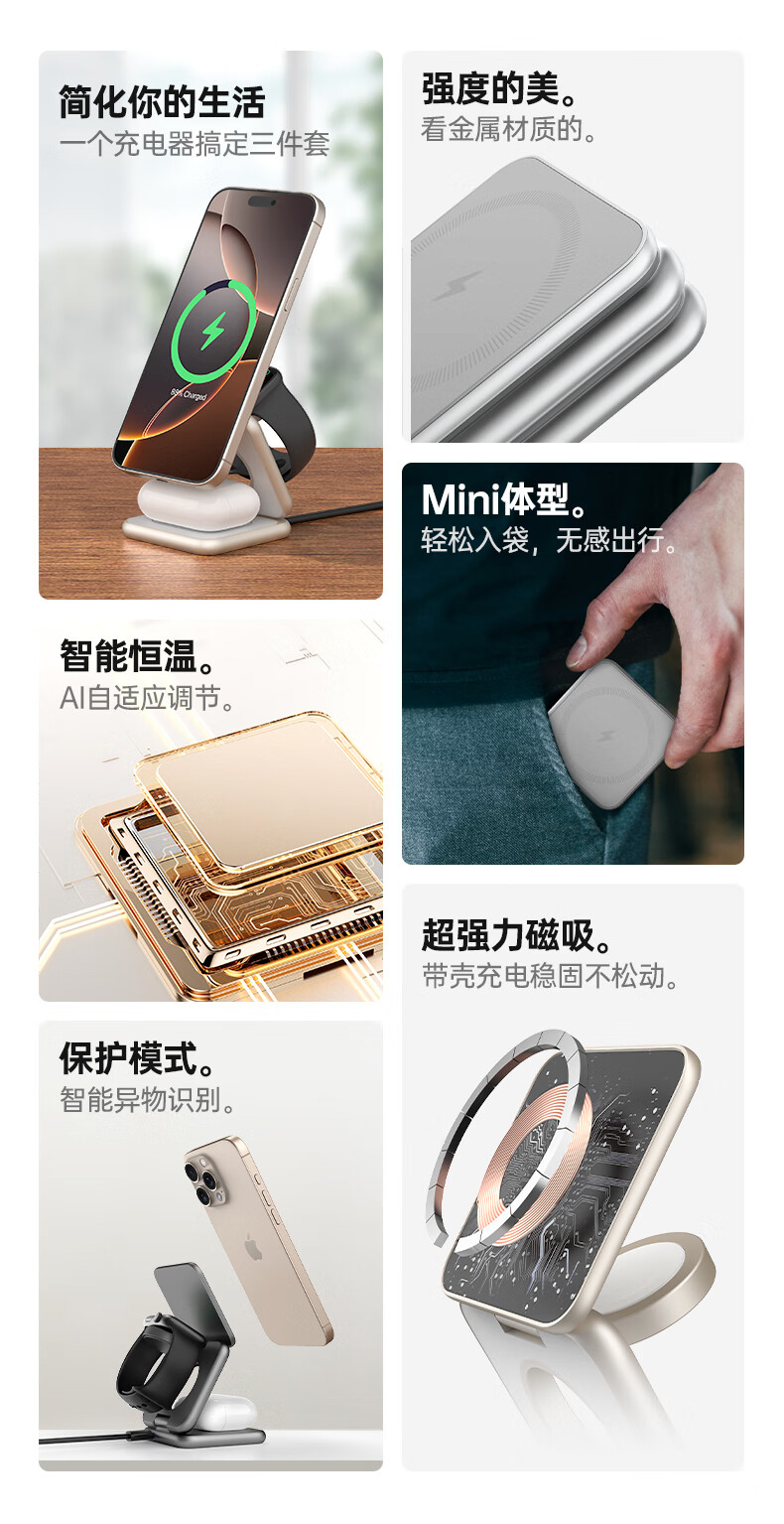 十一号线三合一无线充充电器苹果磁吸式 折叠便携桌面磁吸立式支架MagSafe快充适用 灰色 三合一无线充-X40S+