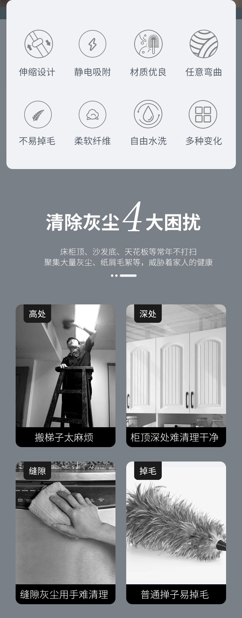 好媳妇(okaywife)静电除尘掸家用鸡毛掸子360度可伸缩水洗汽车掸子扫灰神器 静电除尘掸