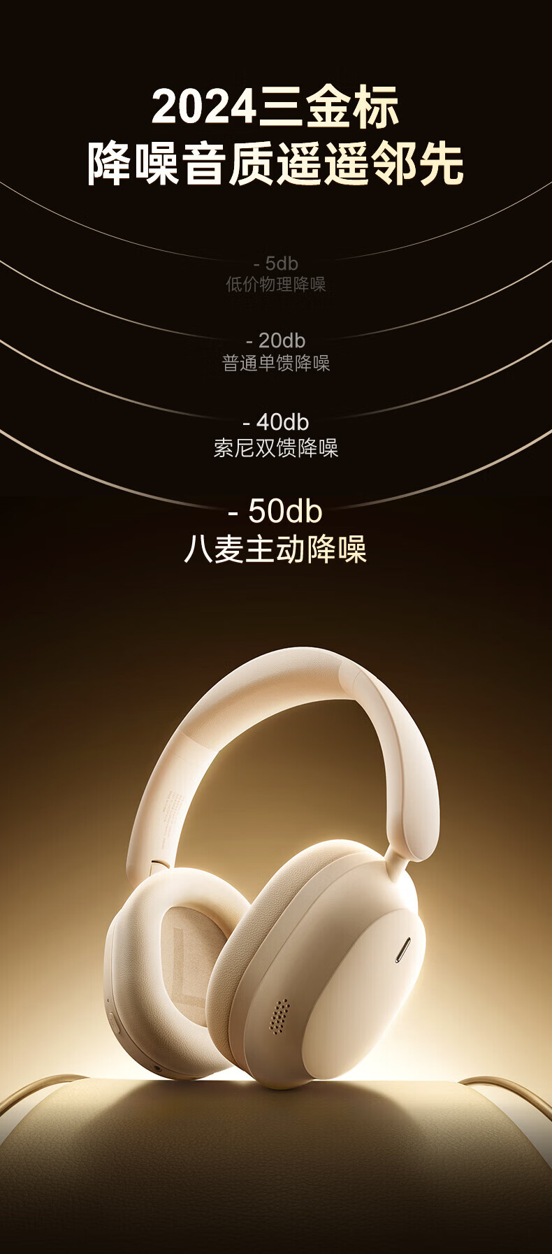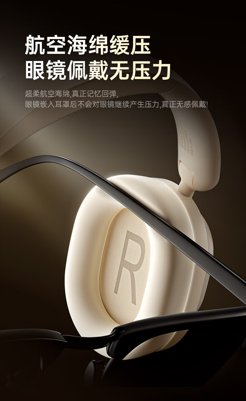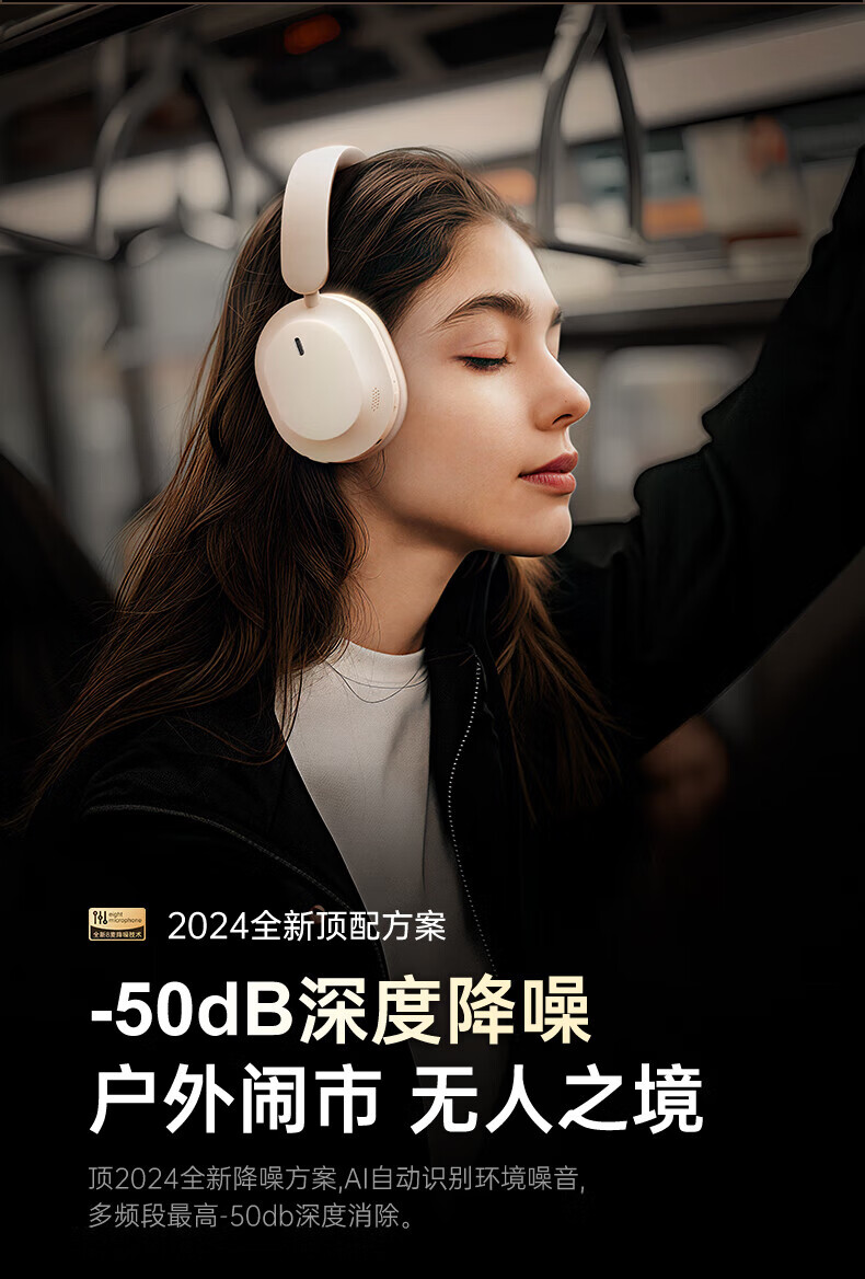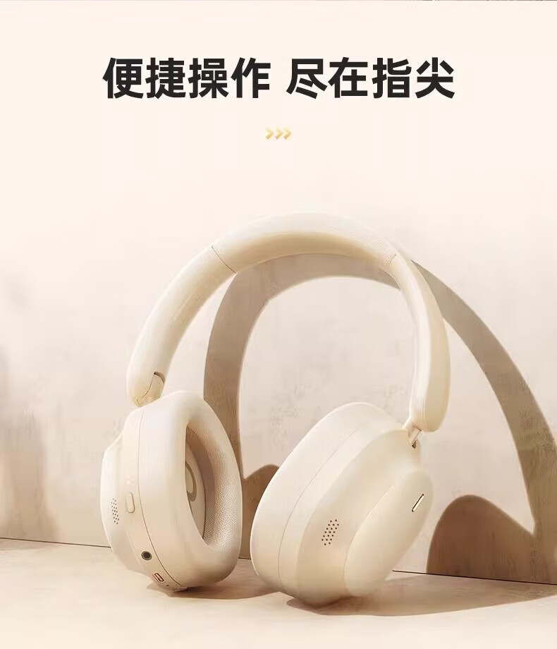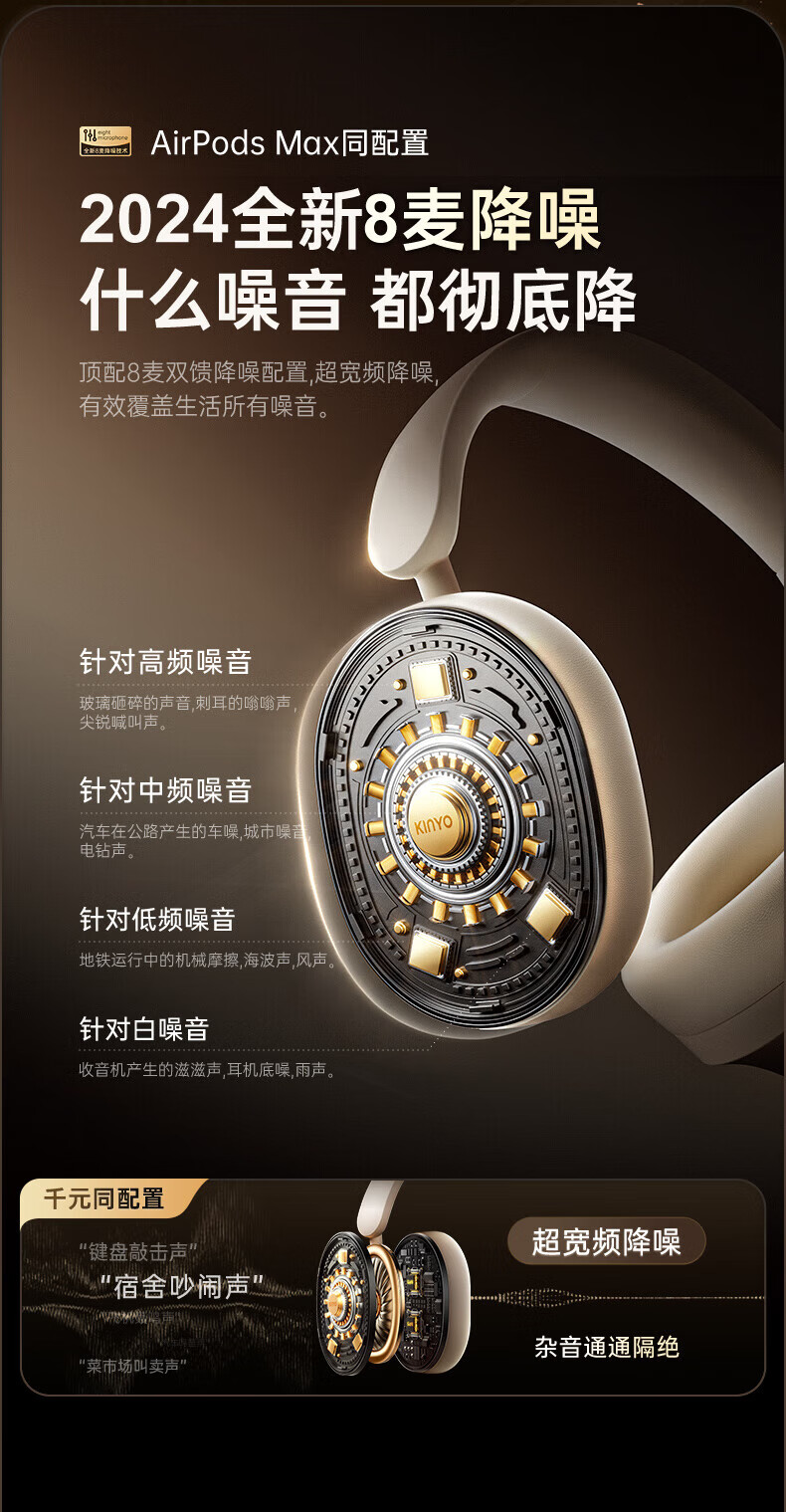 金运【2024超级新品丨8麦降噪】蓝牙耳机头戴式主动降噪无线音乐电竞游戏运动隔音适配 【米白色】强劲降噪丨千元音质
