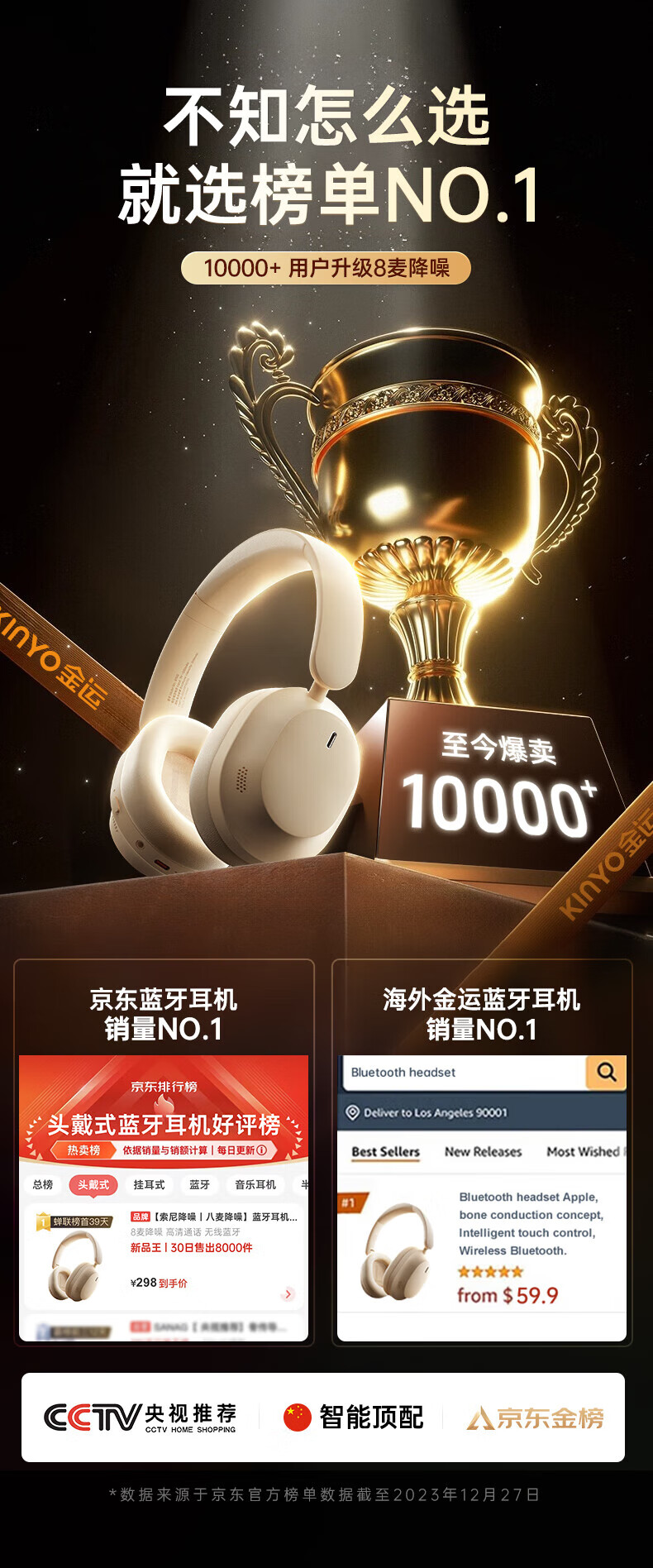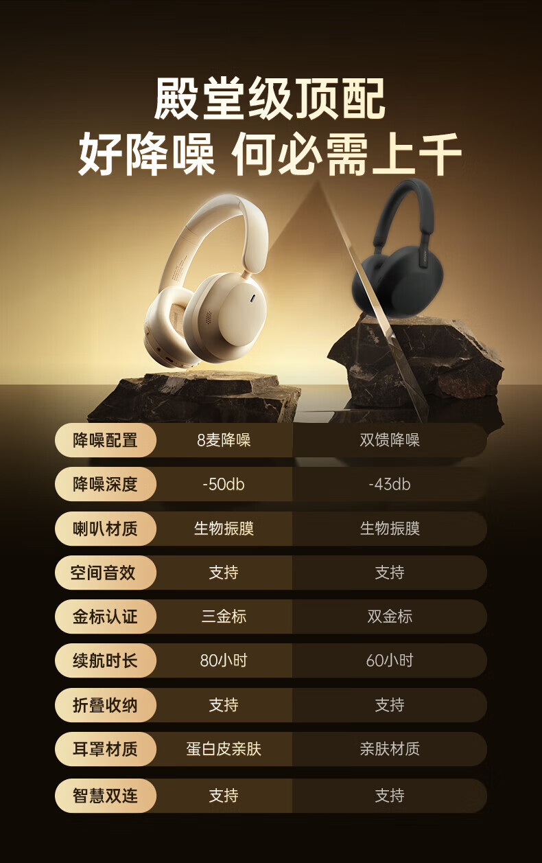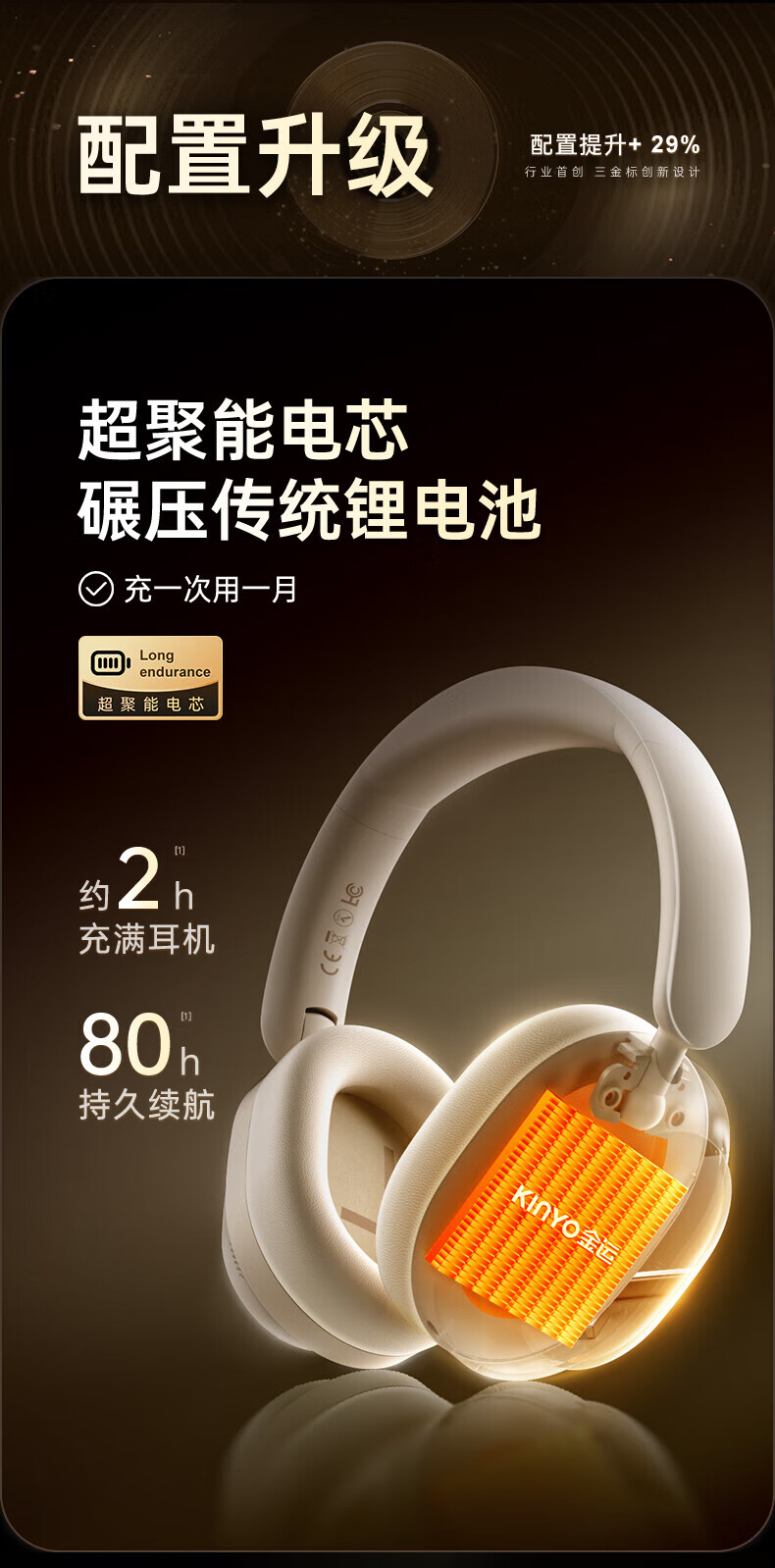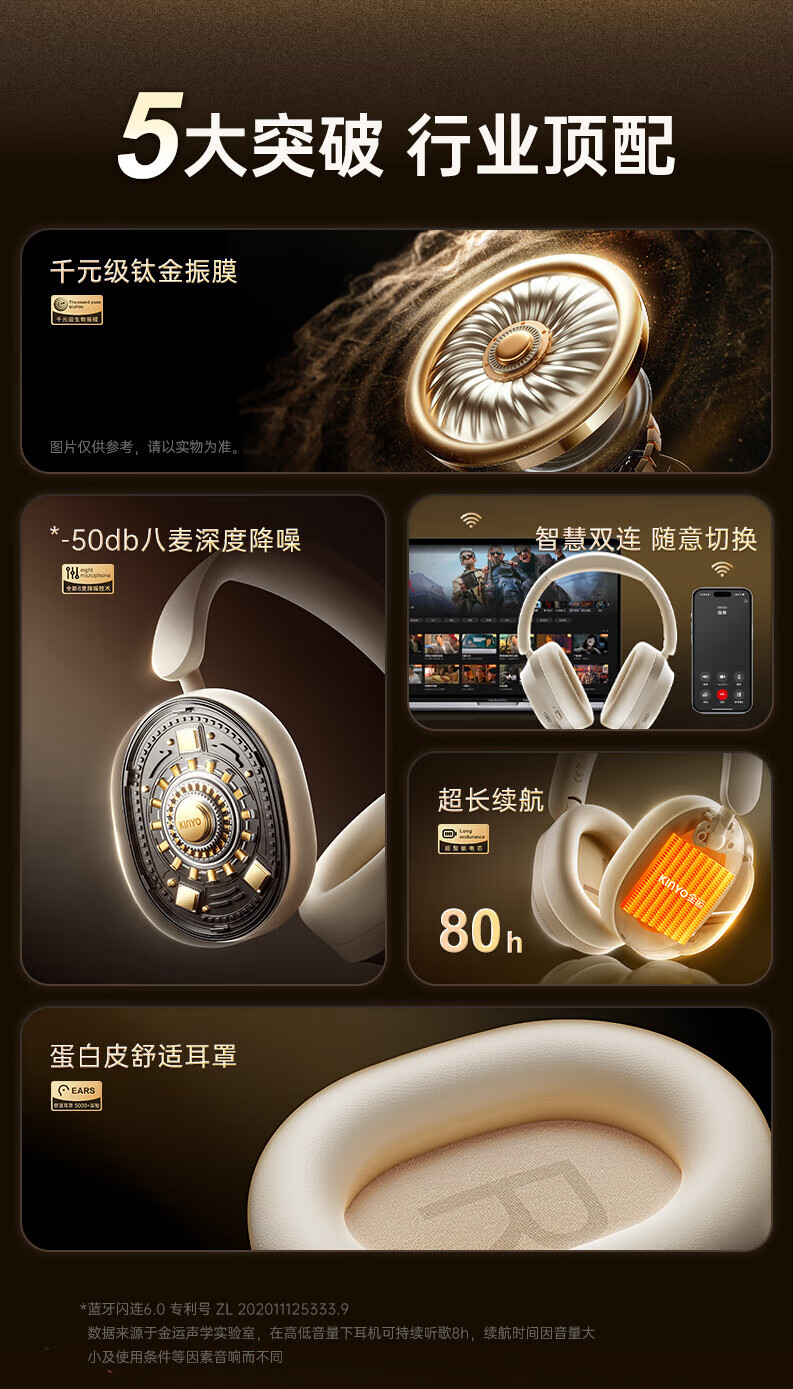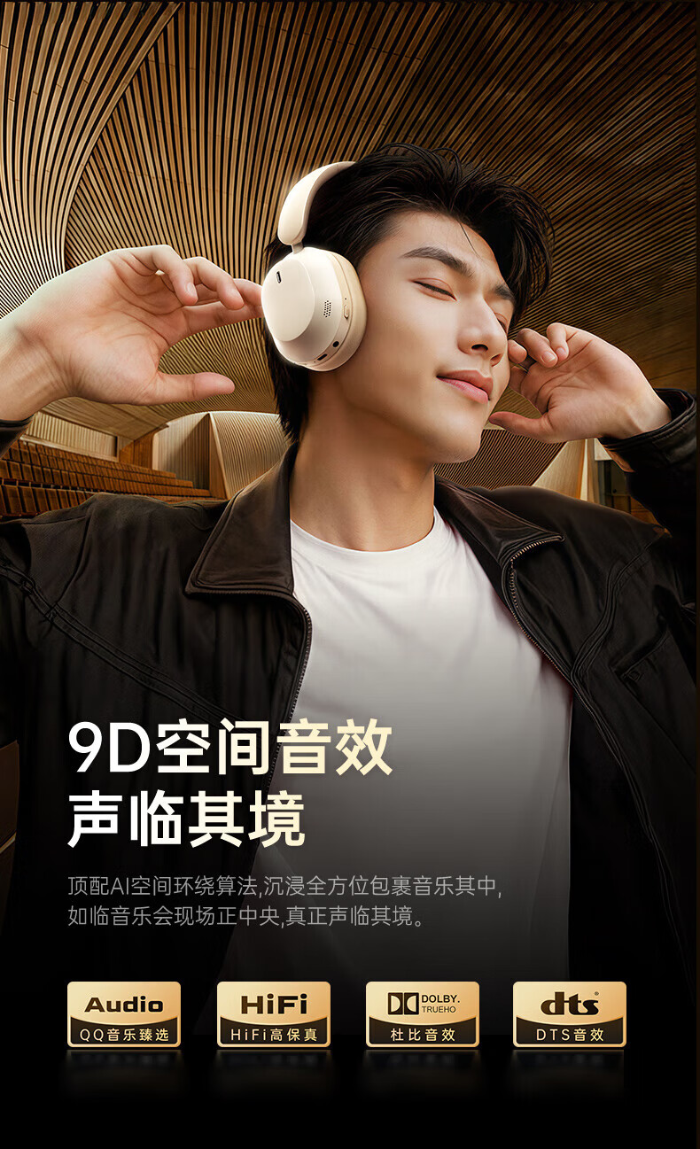 金运【2024超级新品丨8麦降噪】蓝牙耳机头戴式主动降噪无线音乐电竞游戏运动隔音适配 【米白色】强劲降噪丨千元音质