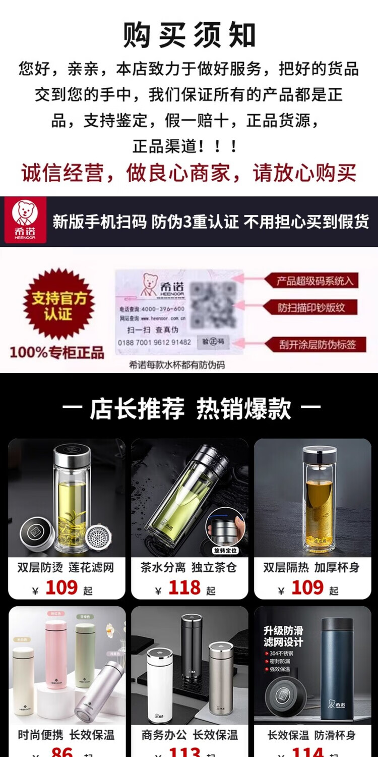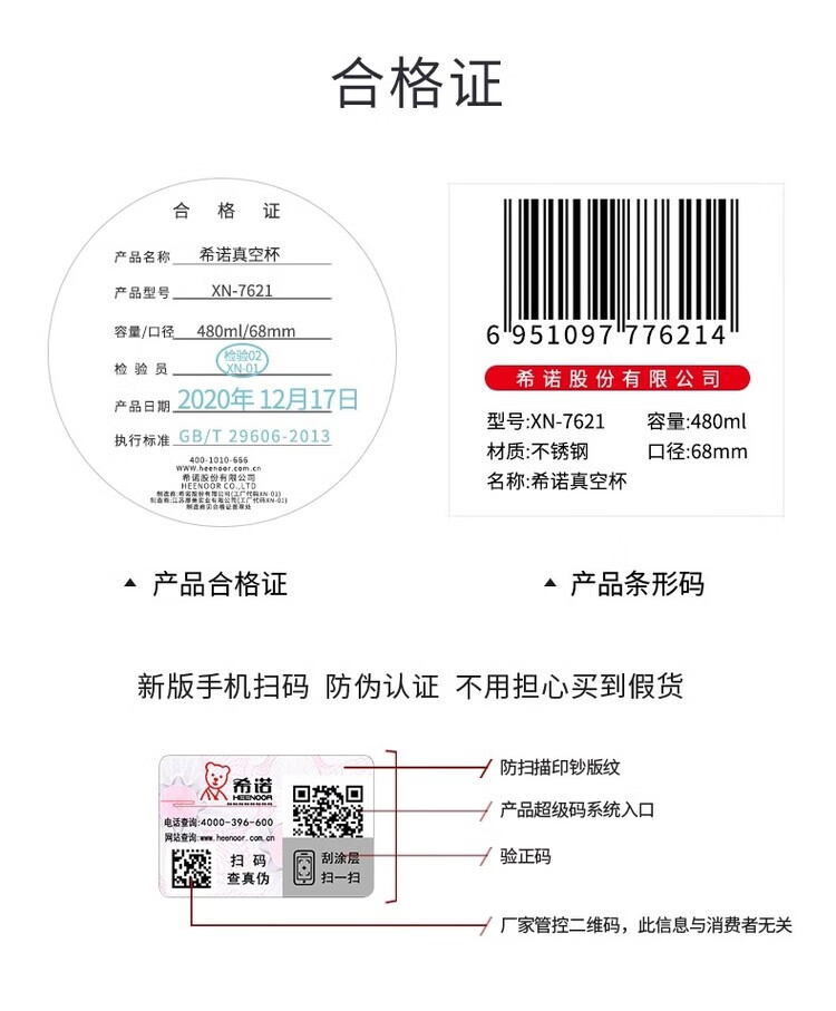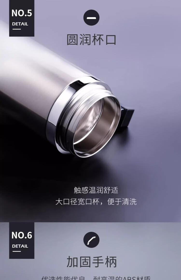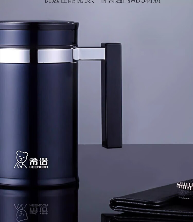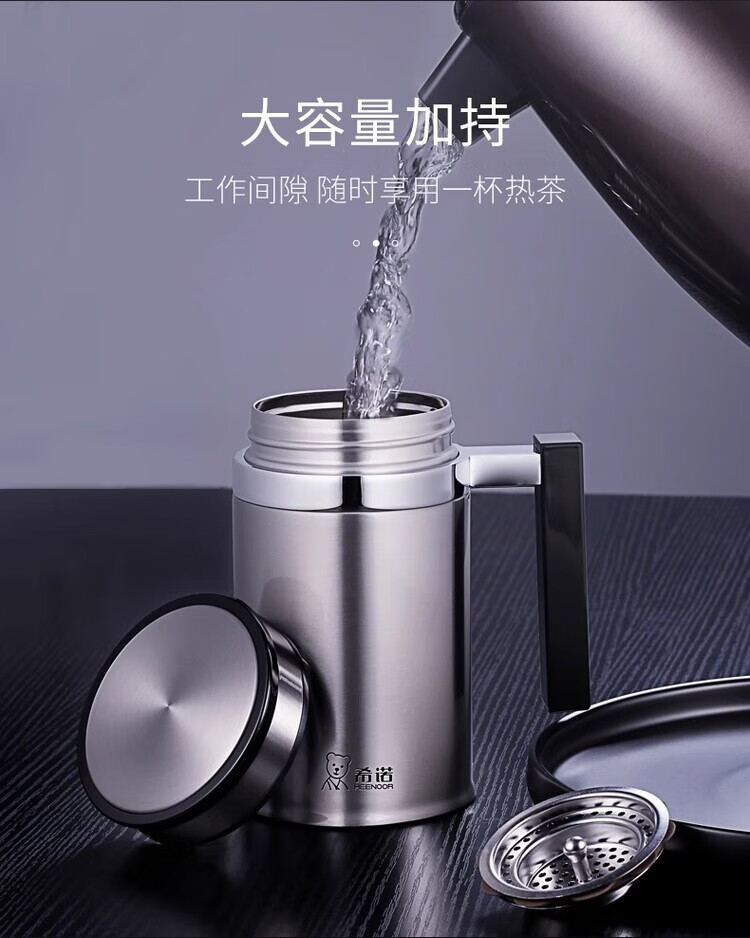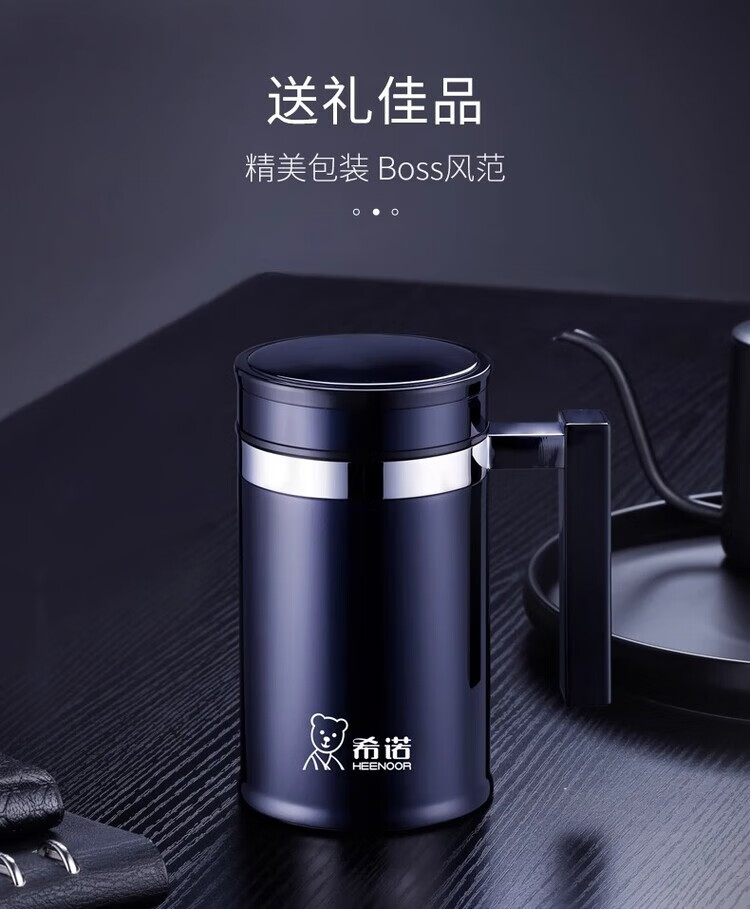 希诺(heenoor)正品保温杯大容量商务304不锈钢宽口保温杯茶水分离带手柄 XN5620-280ML本色-礼盒装 官方正品