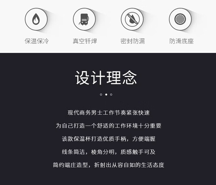 富光 男女士真空不锈钢保温杯 旅行运动水杯子 便携式车载办公茶杯 幽冥黑 500ml