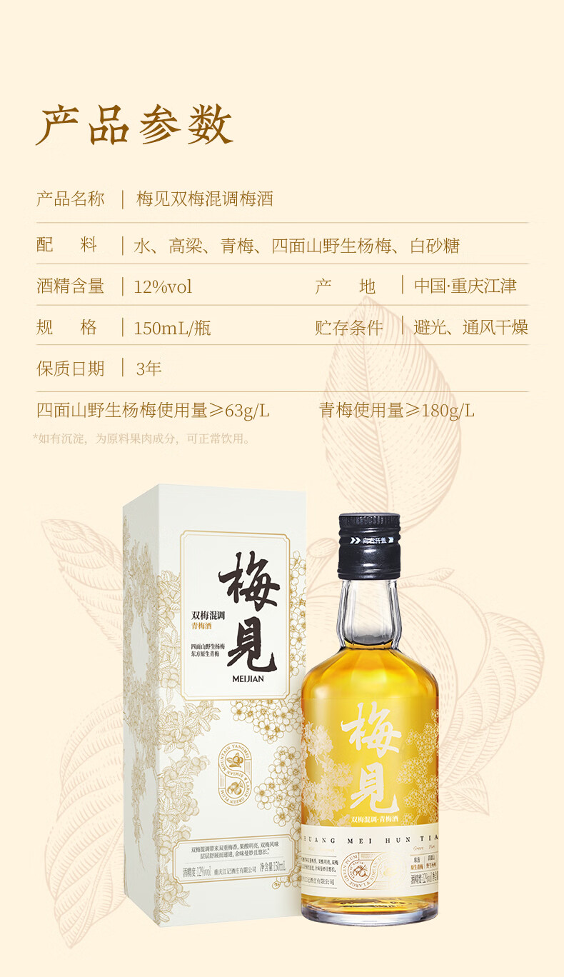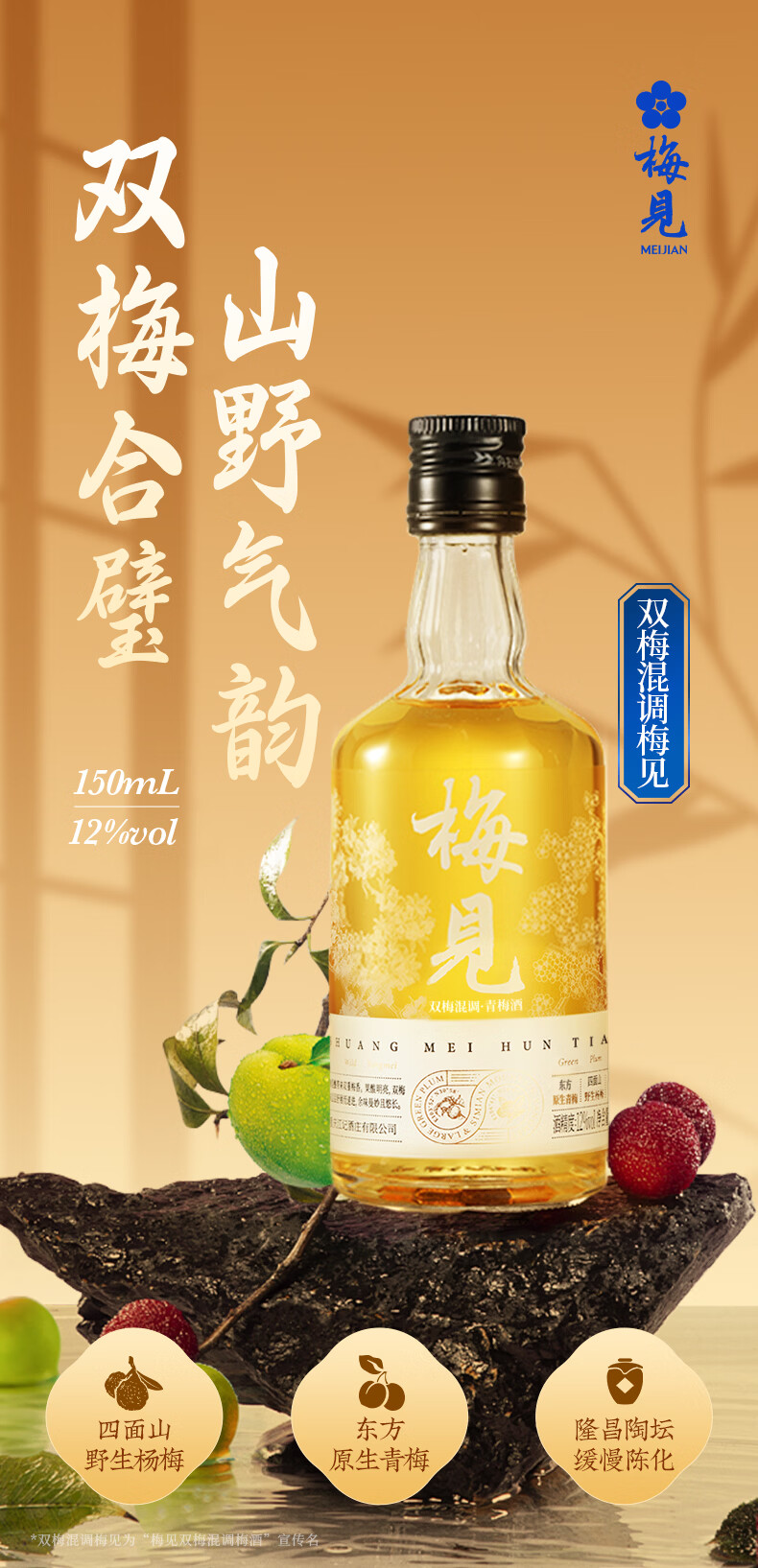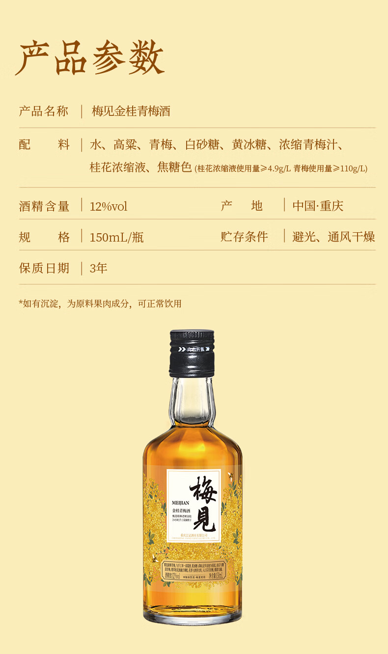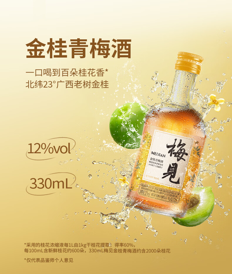 梅见12度双梅混酿金桂桂花青梅原味梅见梅子酒多口味组合微醺果酒送礼 金桂+双梅混调+超酸(光瓶)150ml*3