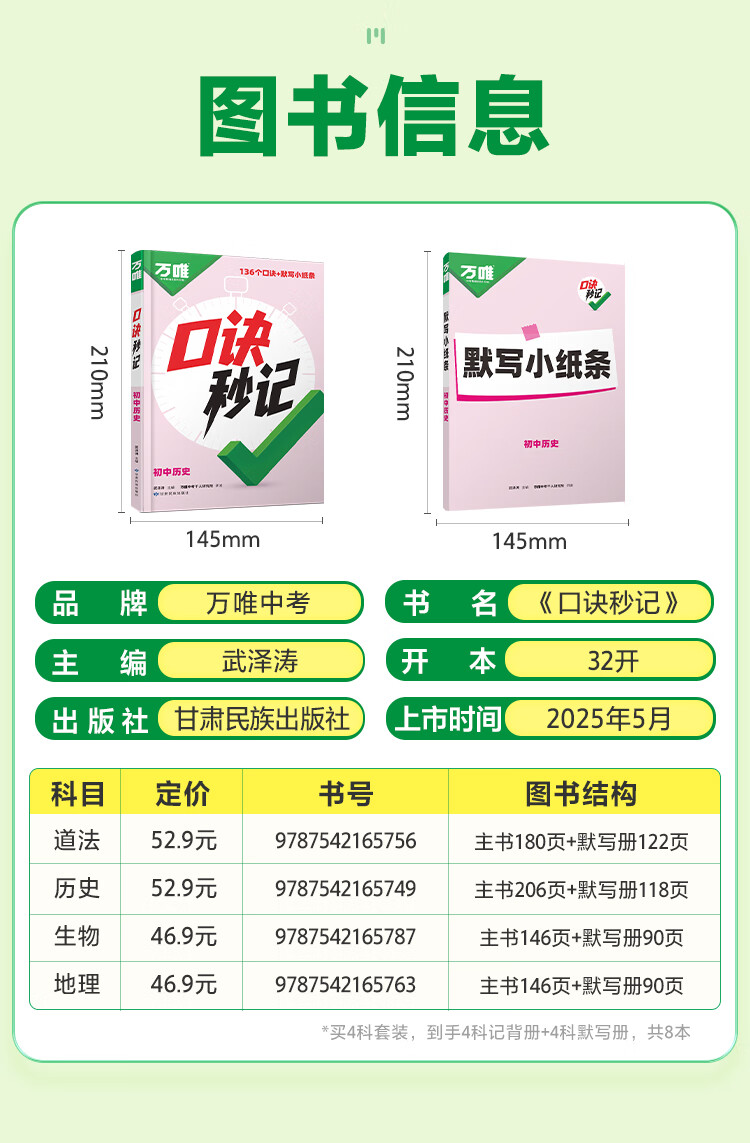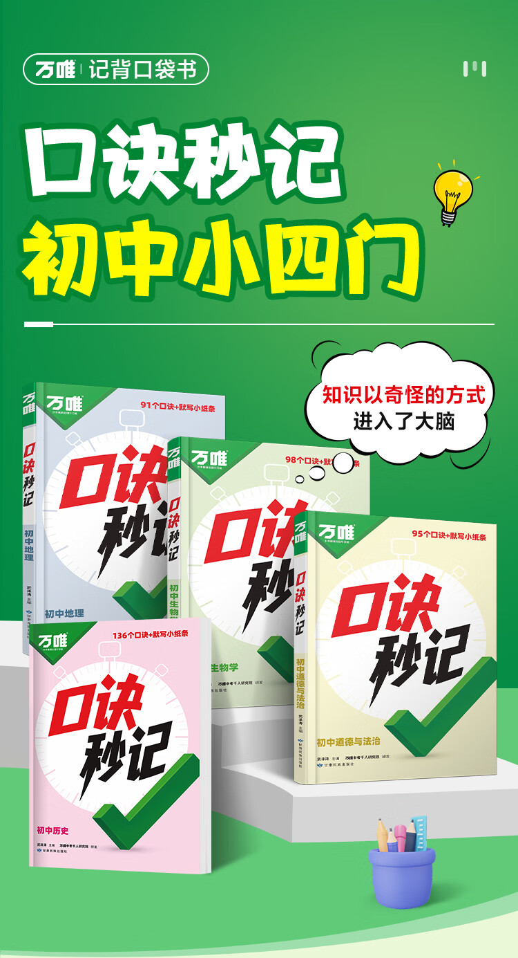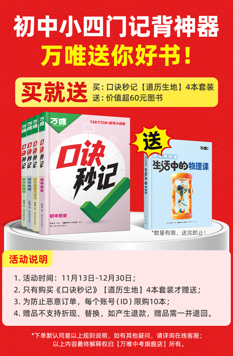 万唯口诀秒记初中小四门2026新书必背知识点初一初二初三789年级道法历史生物地理政治基础知识手册套装万维教育官方旗舰店 初中通用 拍【道历生地】4本套装|赠生活中的物理课