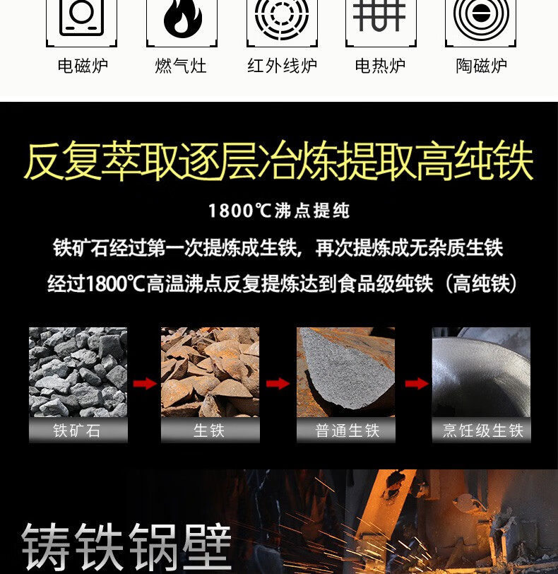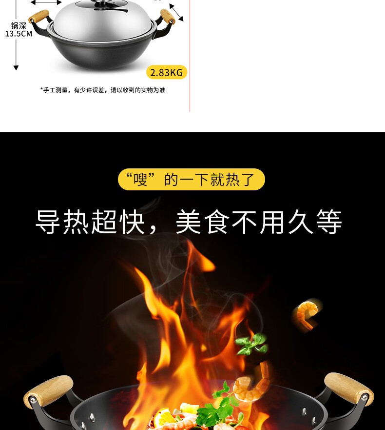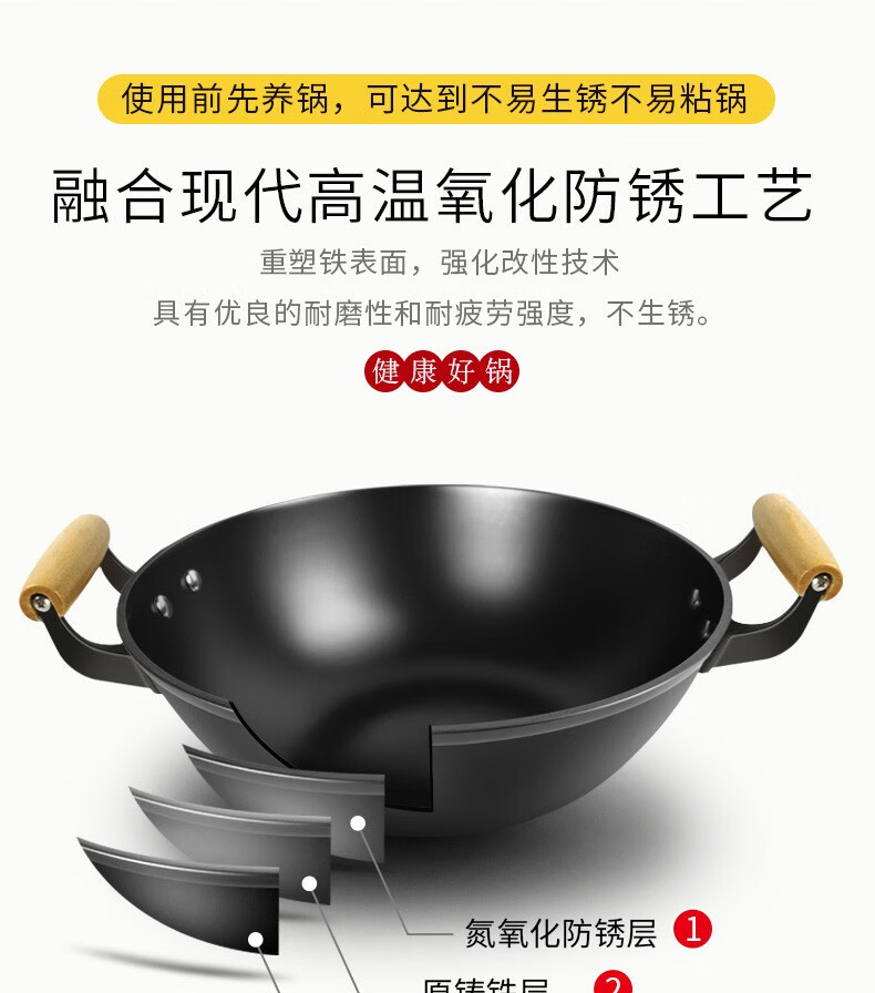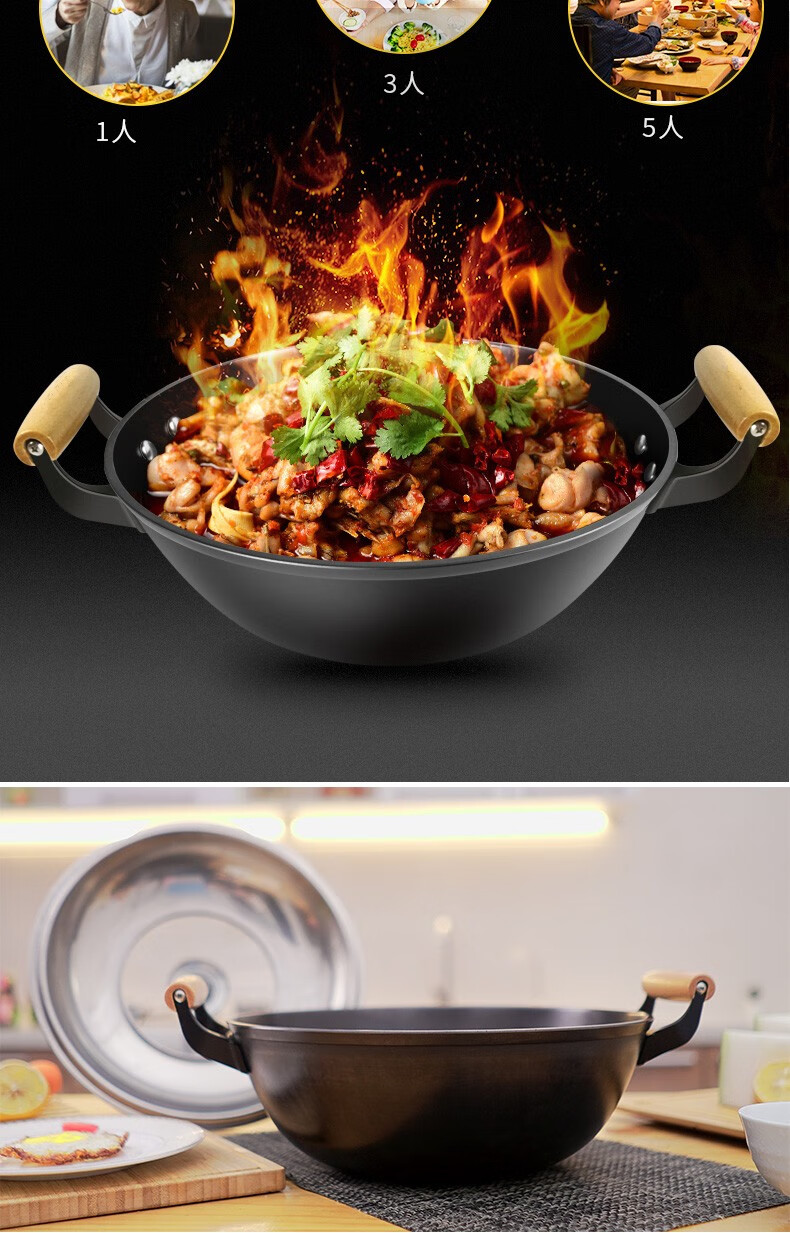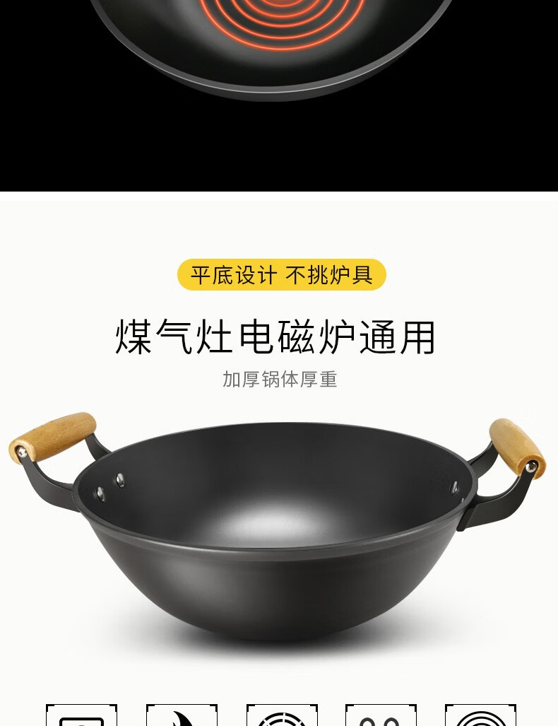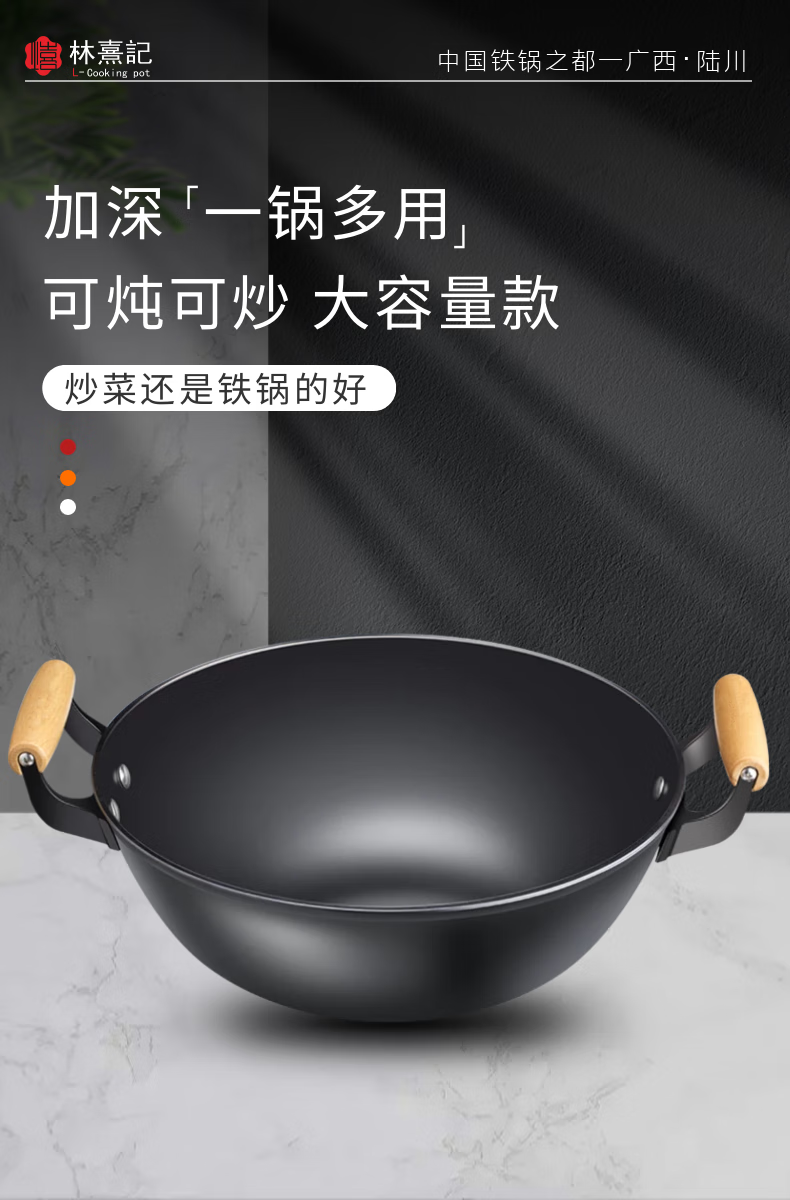 林熹记 陆川传统铁锅 双耳炒锅加深家用无涂层铸铁锅平底炖锅炒菜不粘锅 40cm加深铁锅(带盖铲子) 40cm