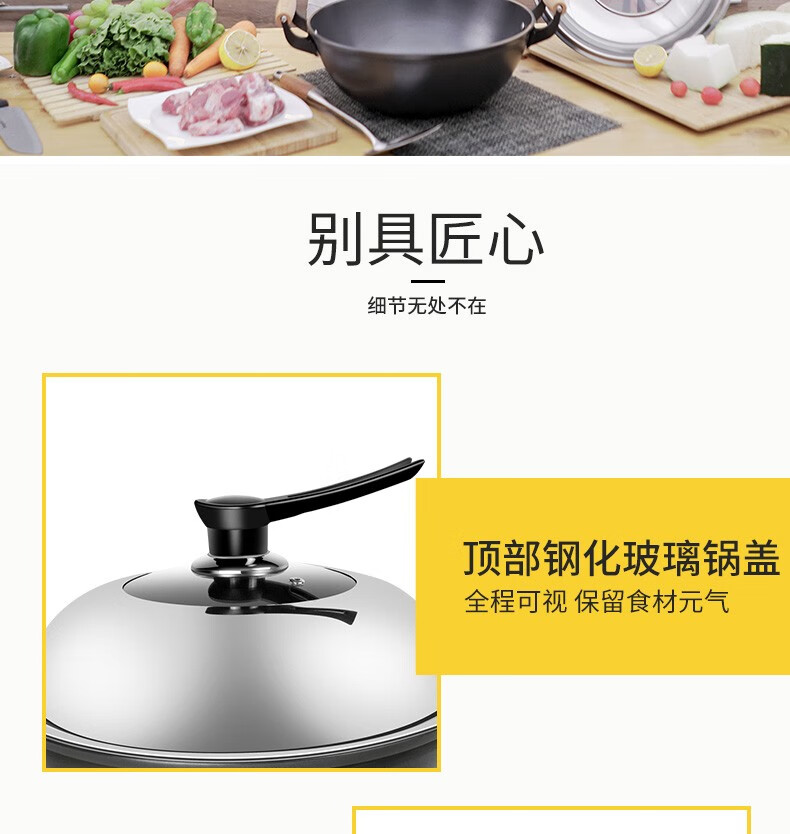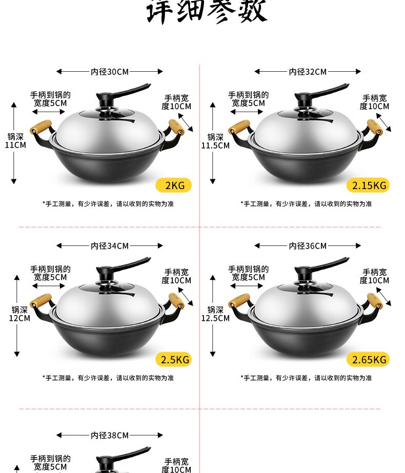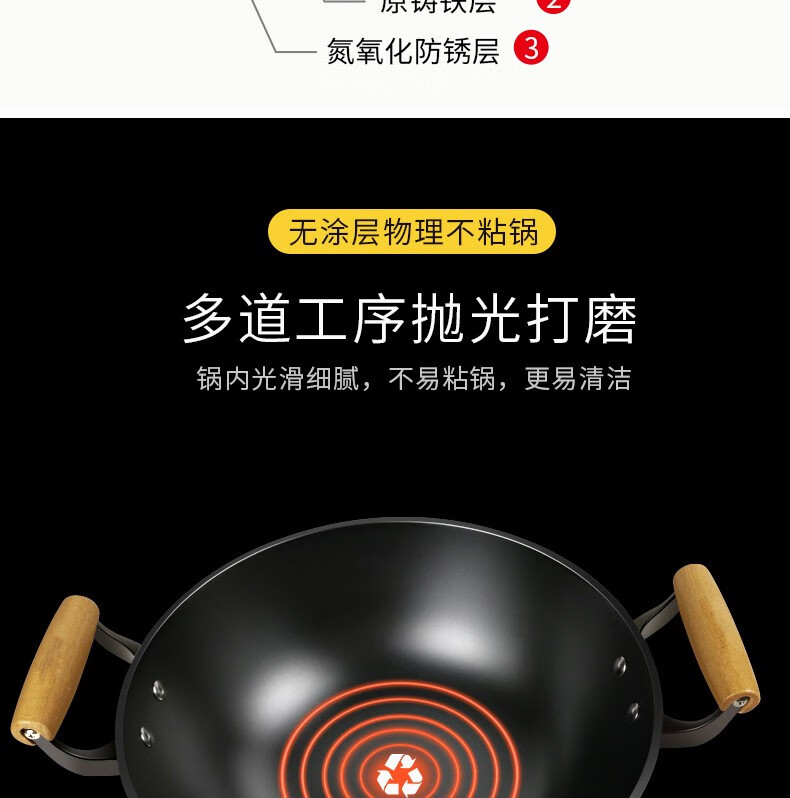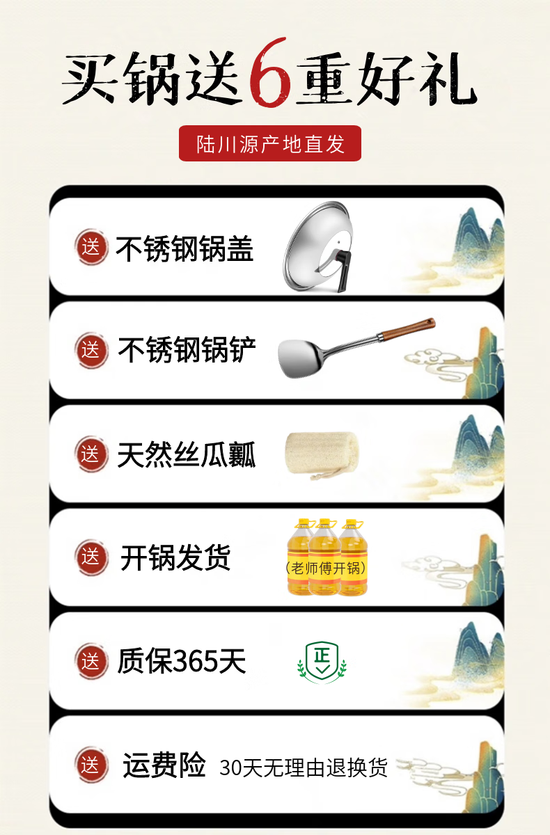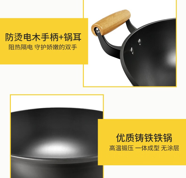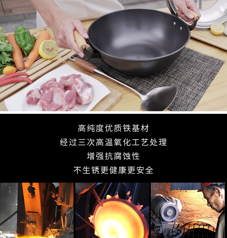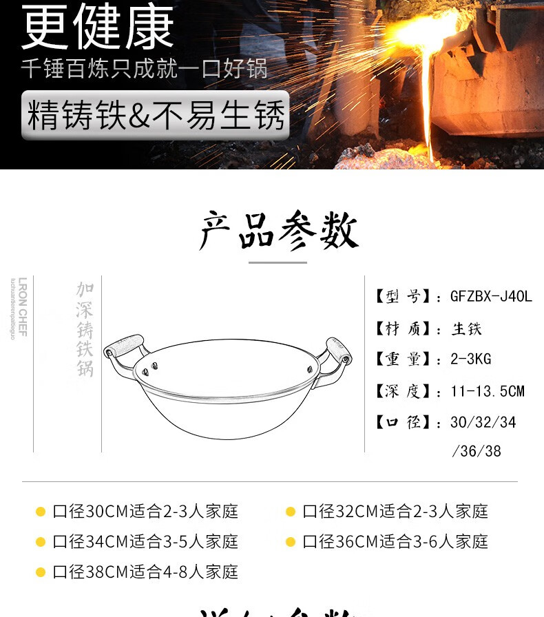 林熹记 陆川传统铁锅 双耳炒锅加深家用无涂层铸铁锅平底炖锅炒菜不粘锅 40cm加深铁锅(带盖铲子) 40cm