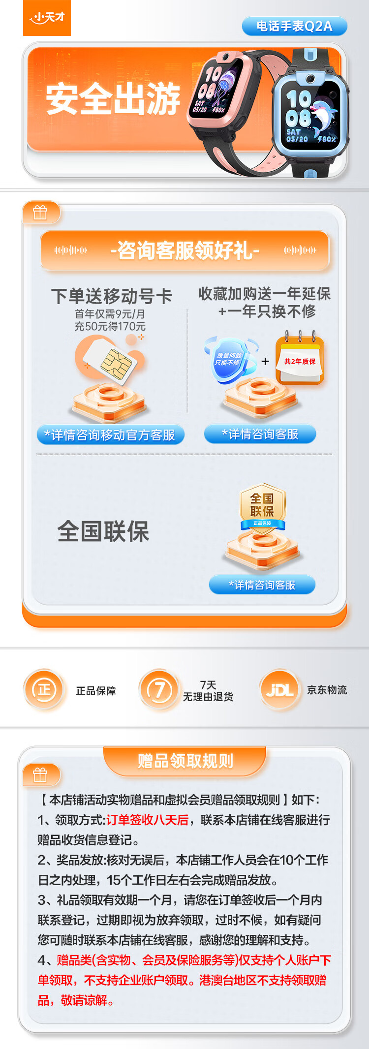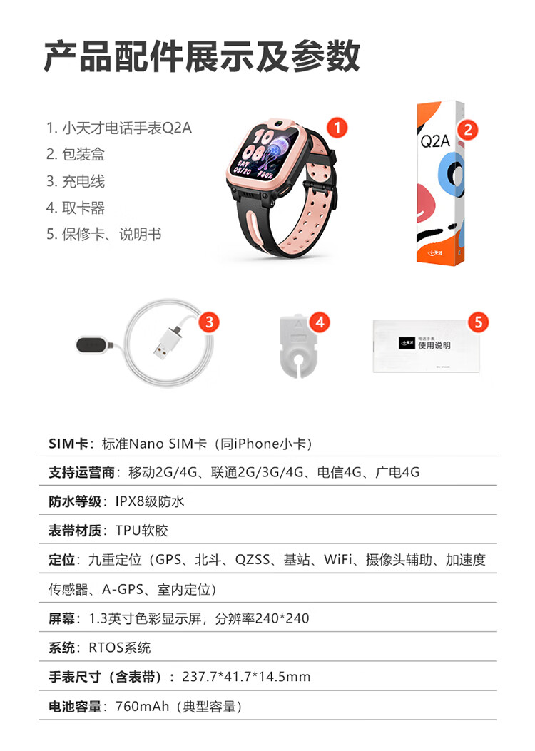 小天才电话手表Q2A长续航儿童手表GPS定位智能手表学生儿童4G视频拍照手表天镜蓝男女表