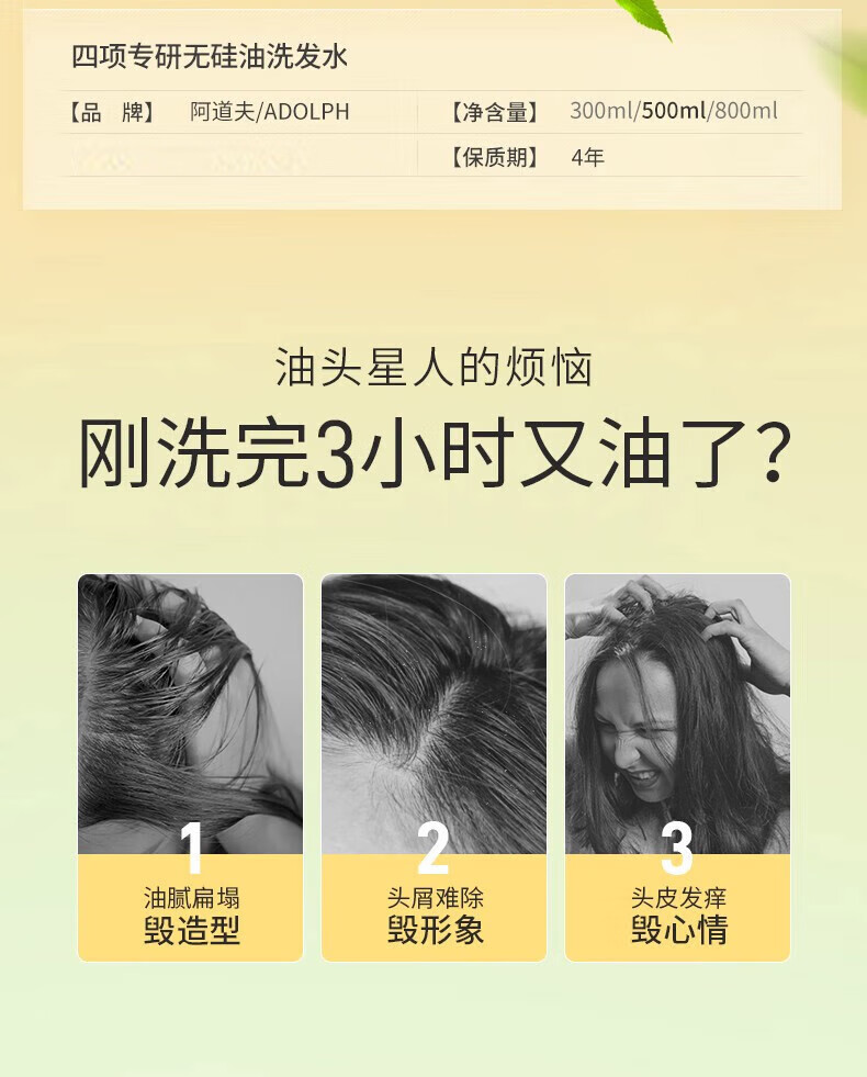 阿道夫去屑修护洗发水套装控油蓬松柔顺留香无硅油洗发露洗头膏男女士 去屑修护洗发水300ml