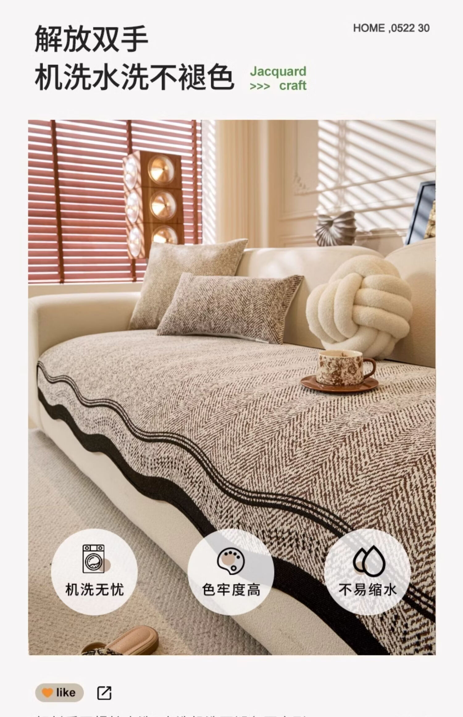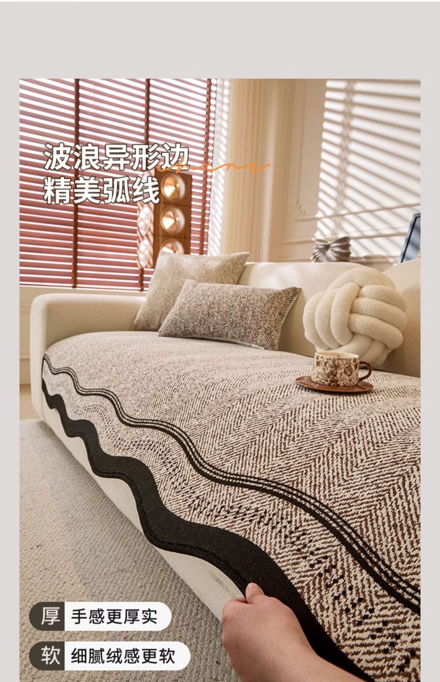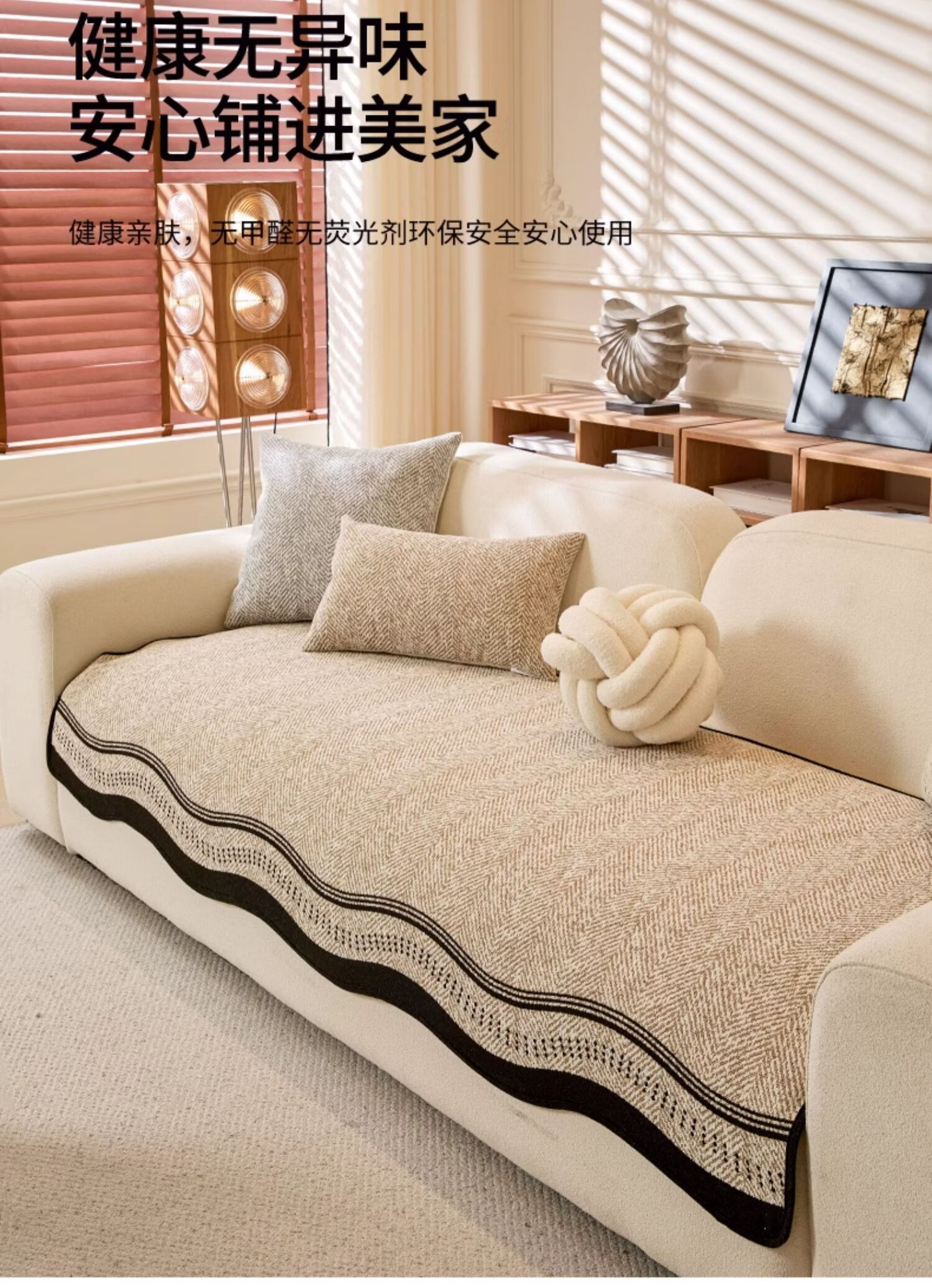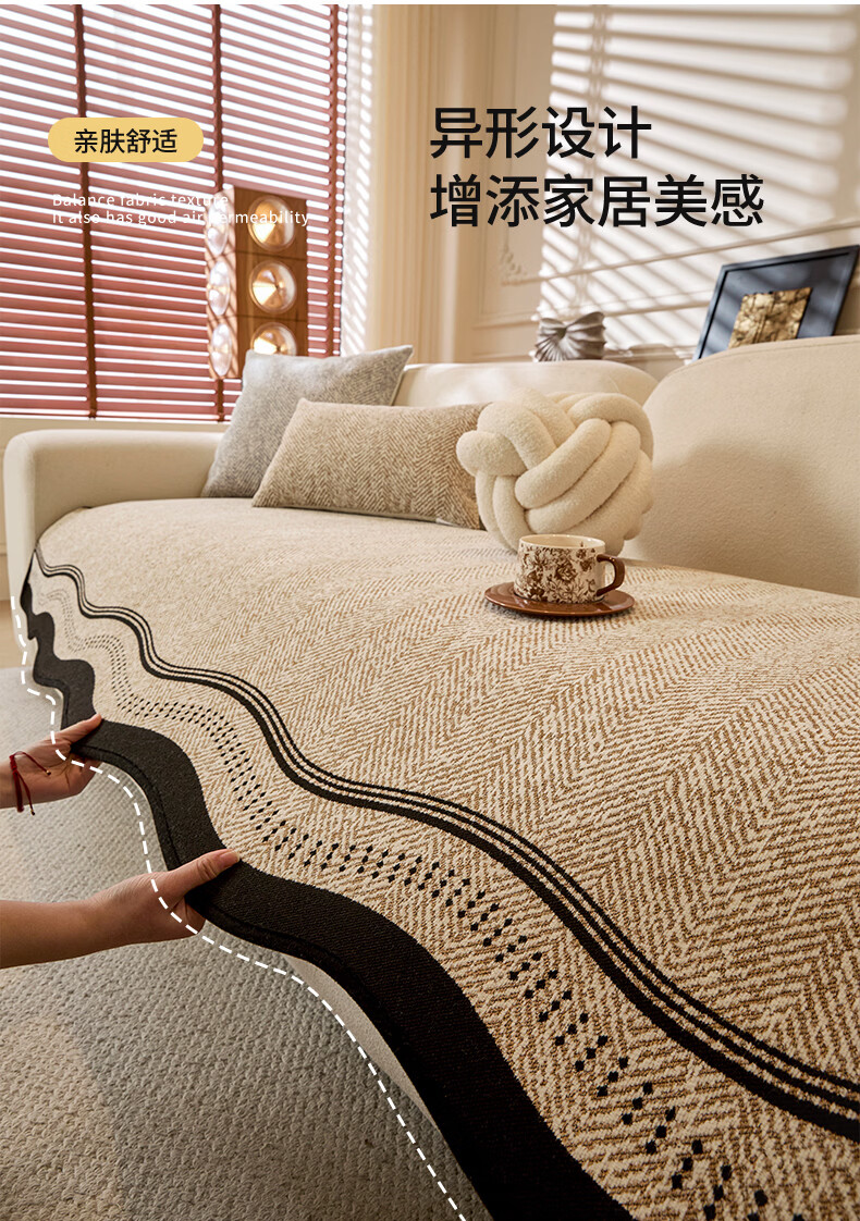 名创优品(MINISO)沙发垫 坐垫子高级感沙发盖布固定防滑垫 伊人异形-浅咖 70cm*180cm 【大双人位】