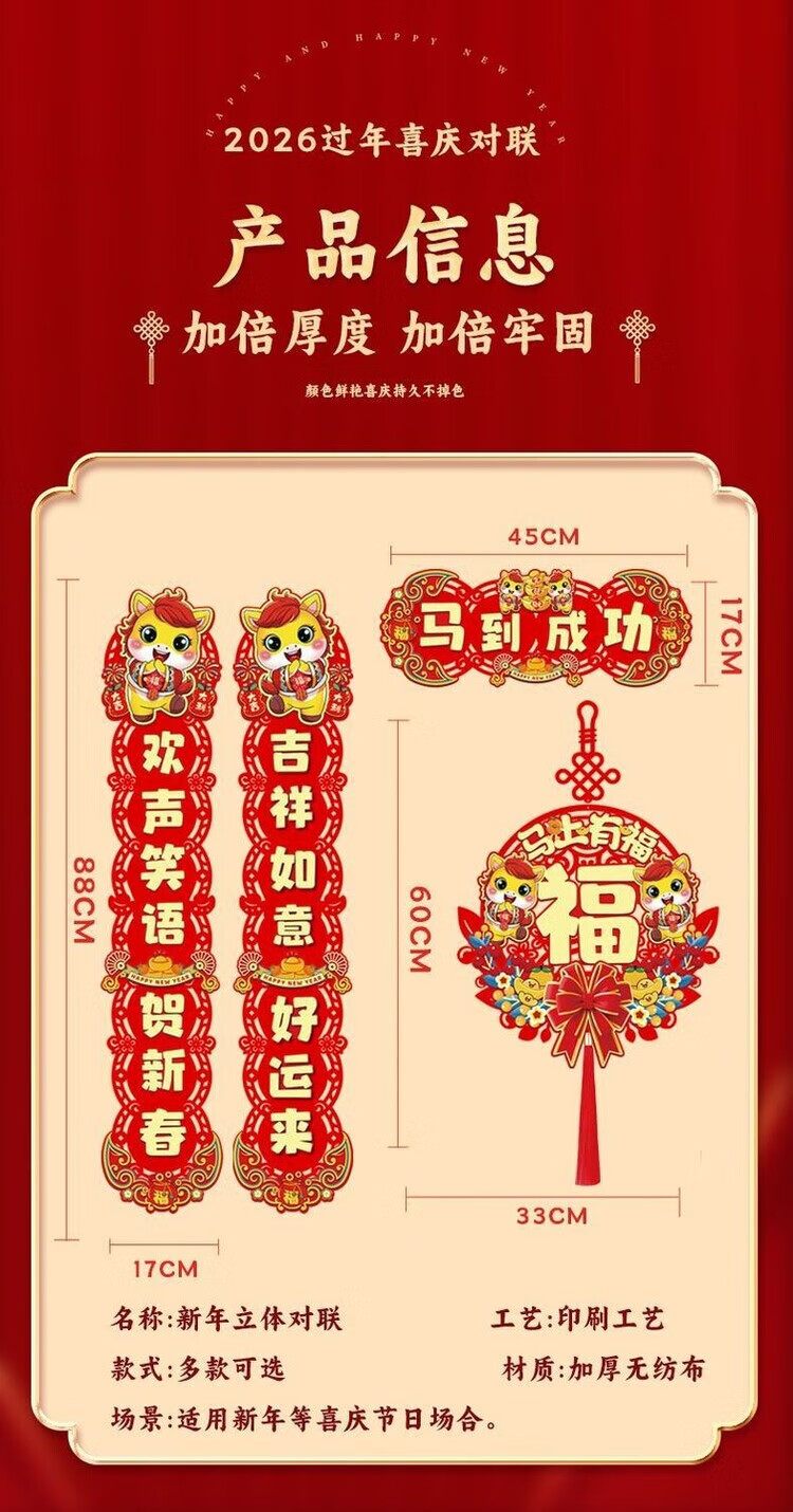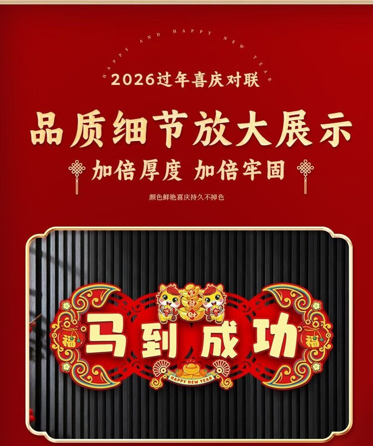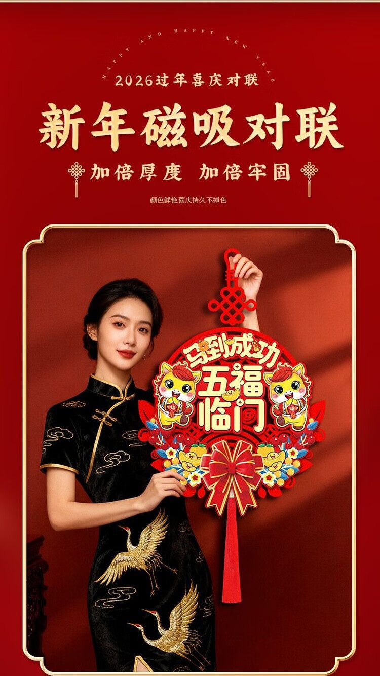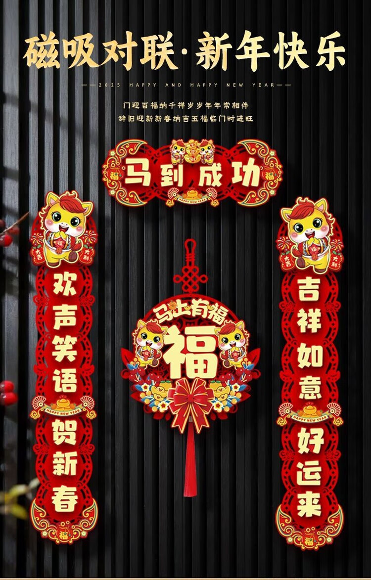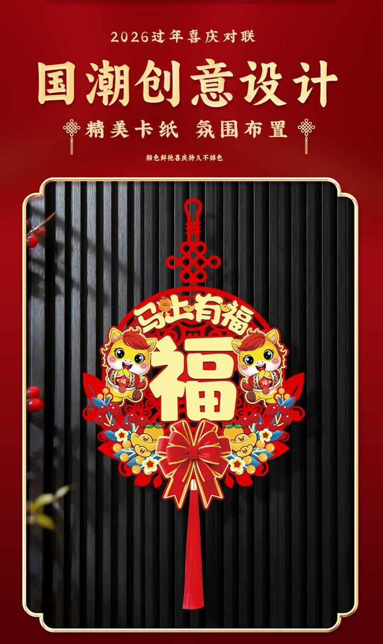 OYKTN对联2026马年新款春节家用过年大门布置新年门贴装饰磁吸春联 马年7字对联【送磁吸贴片+点胶】 【植绒布材质】马上有福挂件-单挂件