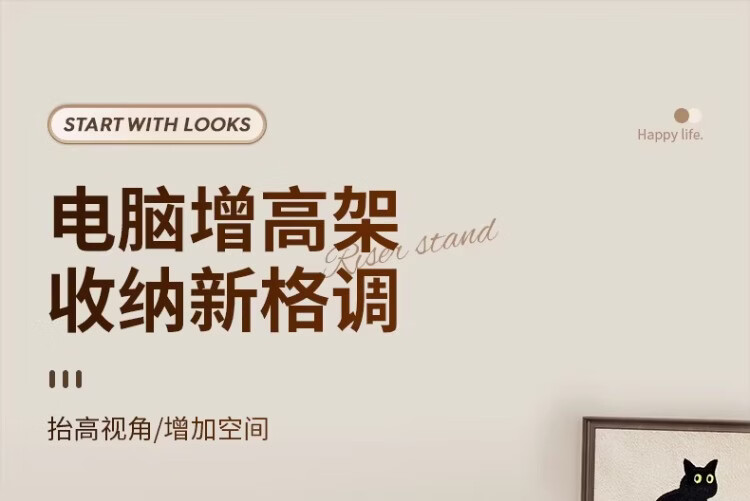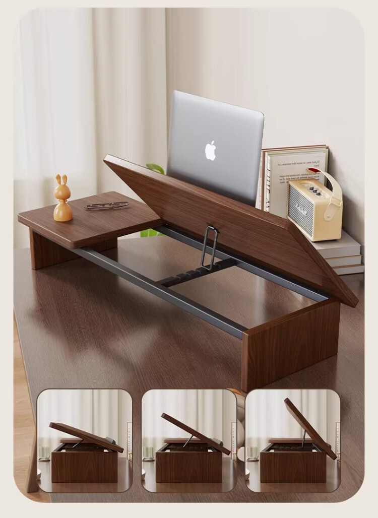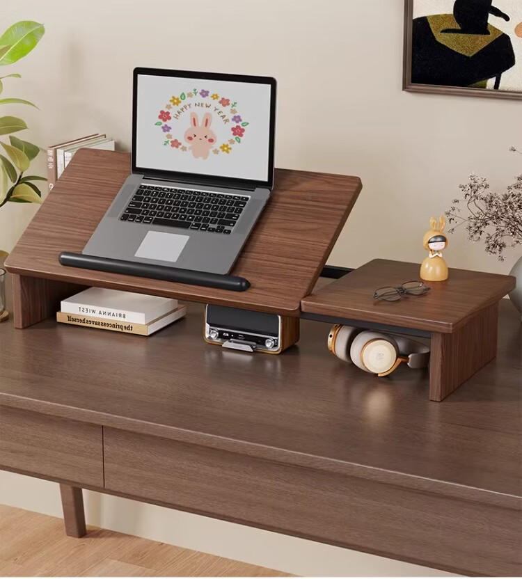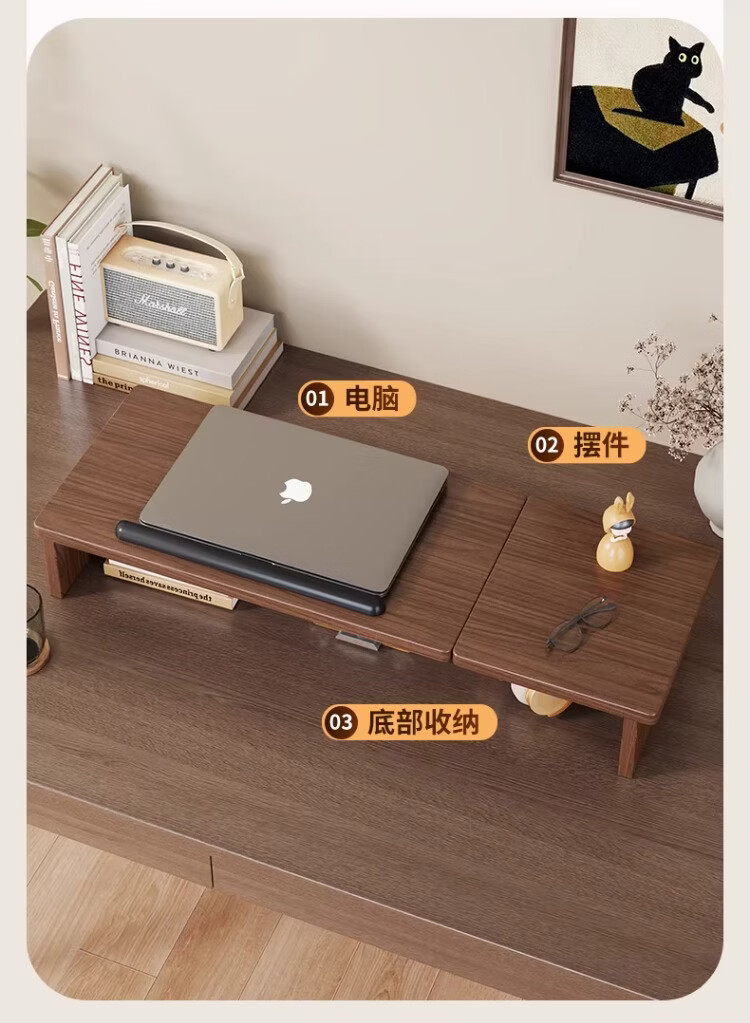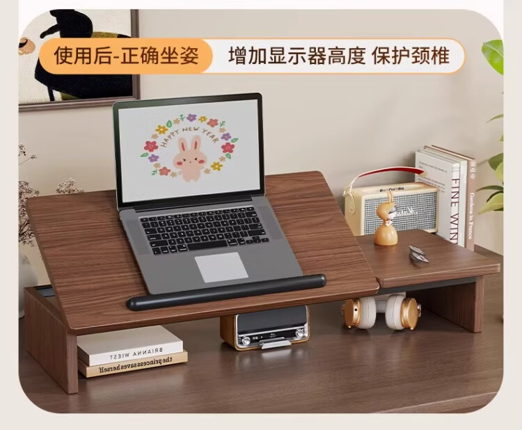 尔思家电脑增高架桌面置物架可折叠便携笔记本散热支架台面显示器支撑架 胡桃色-基础款