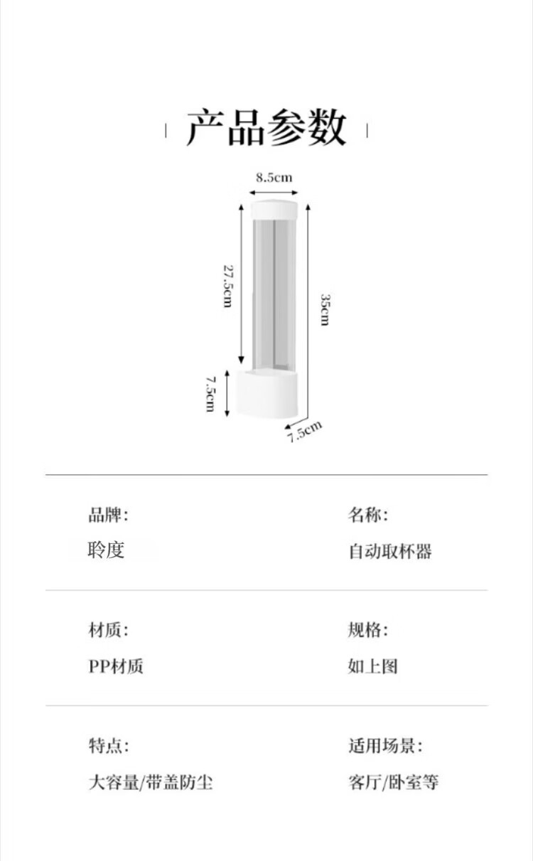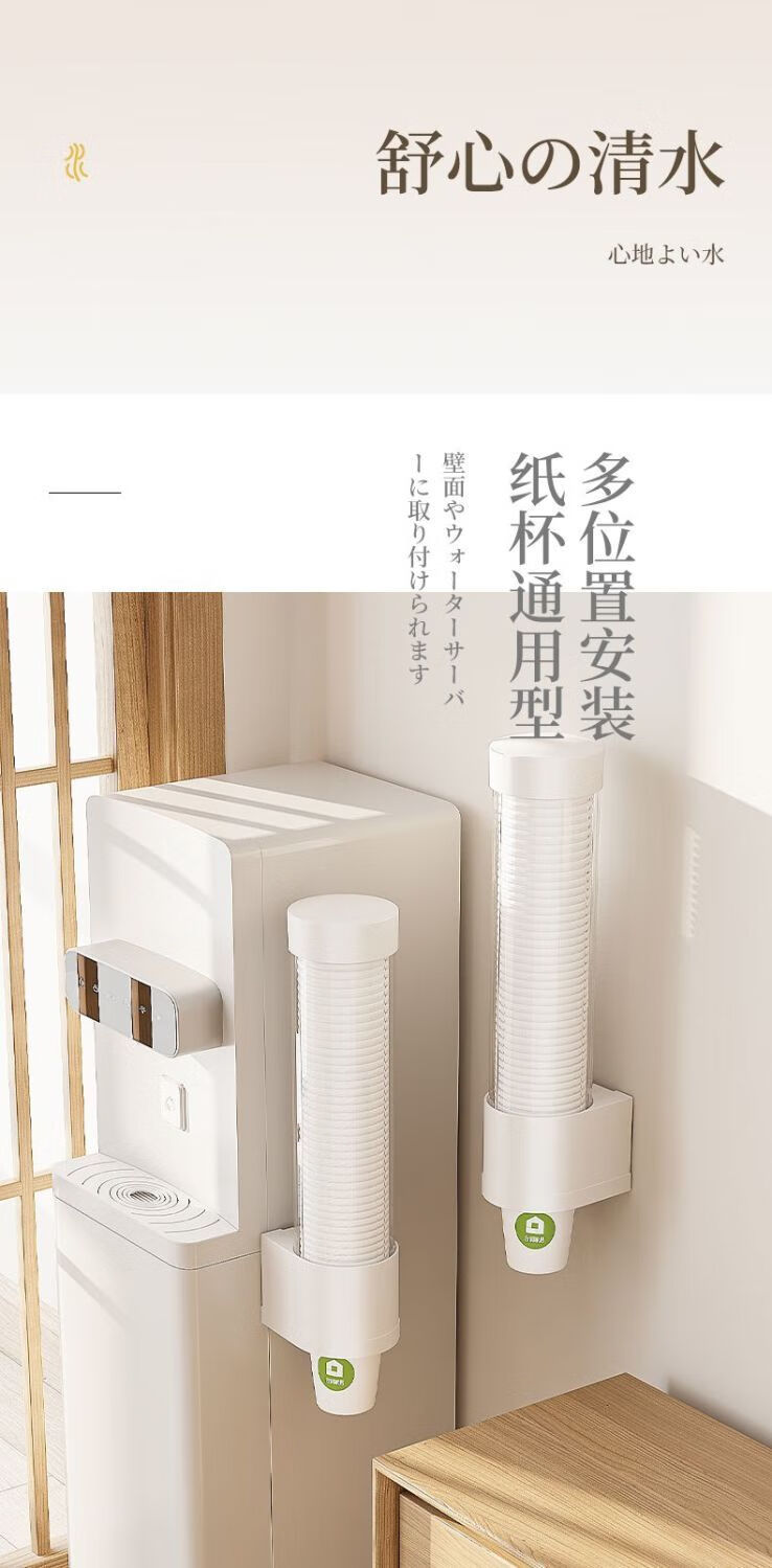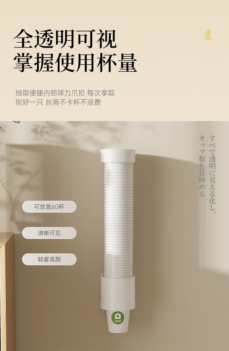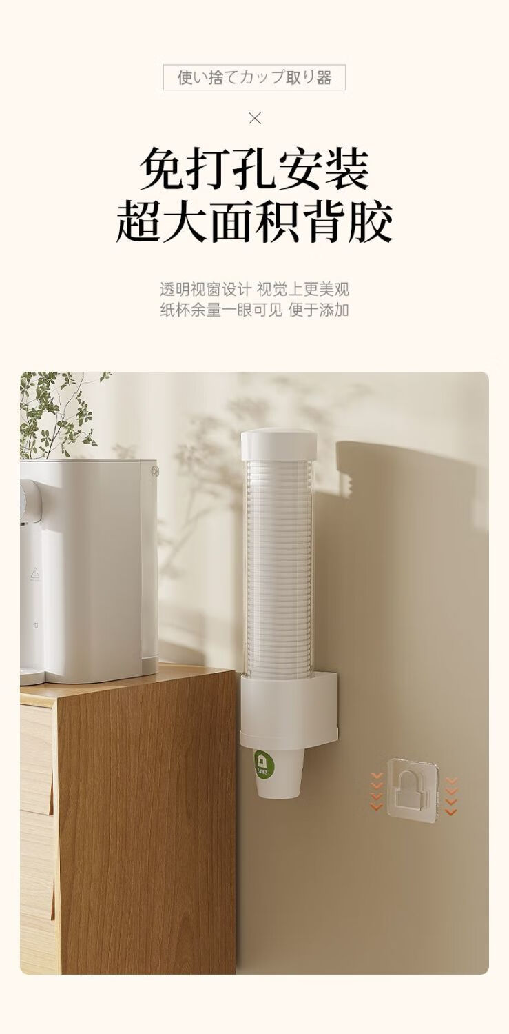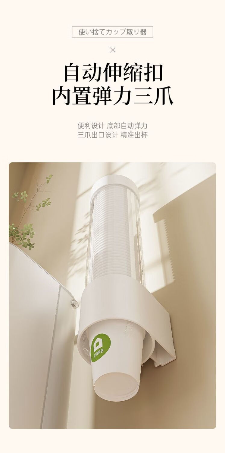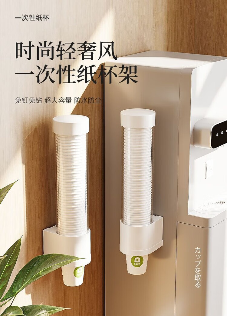 简漾一次性杯子取杯器挂墙纸杯置物架家用饮水机塑料杯收纳免打孔 单筒短款【约放十个】