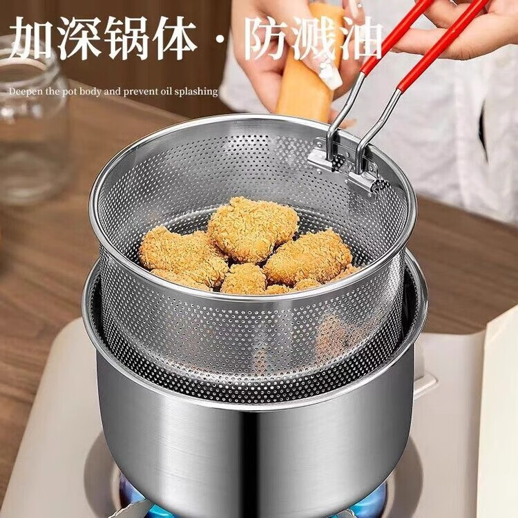 泰禧阁304不锈钢加厚炸锅家用油炸锅涂层迷你辅食多功能奶锅油锅天妇 单独炸锅 18cm