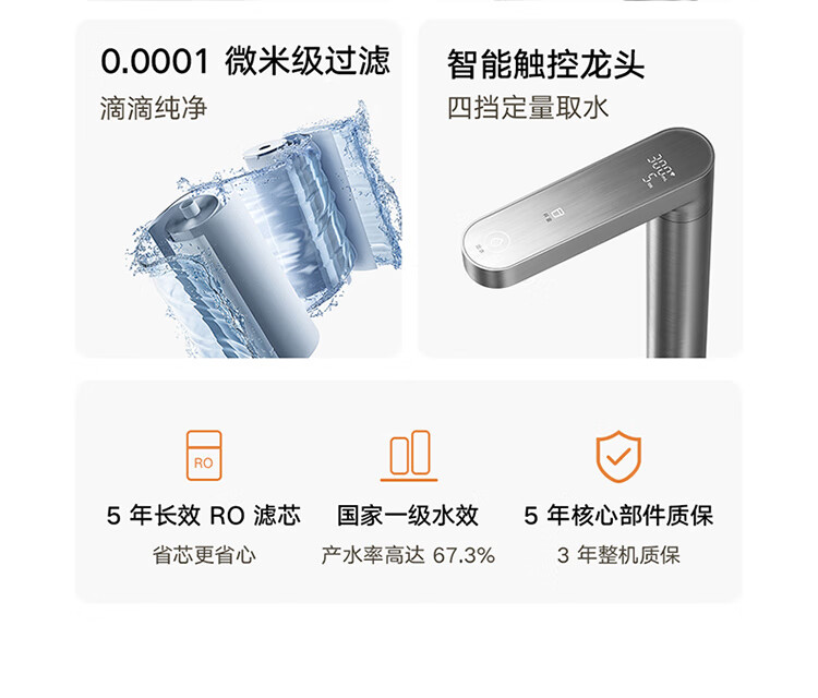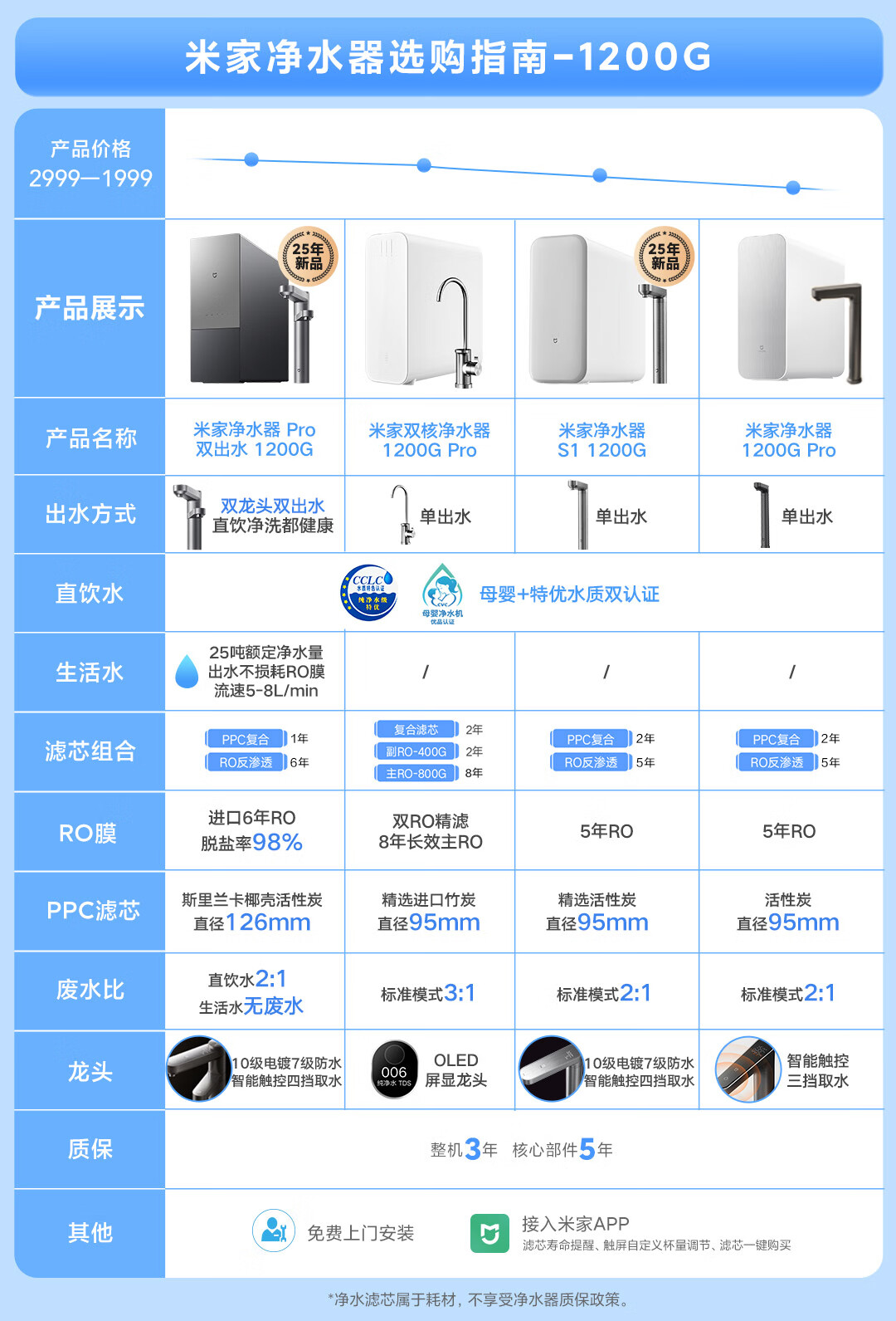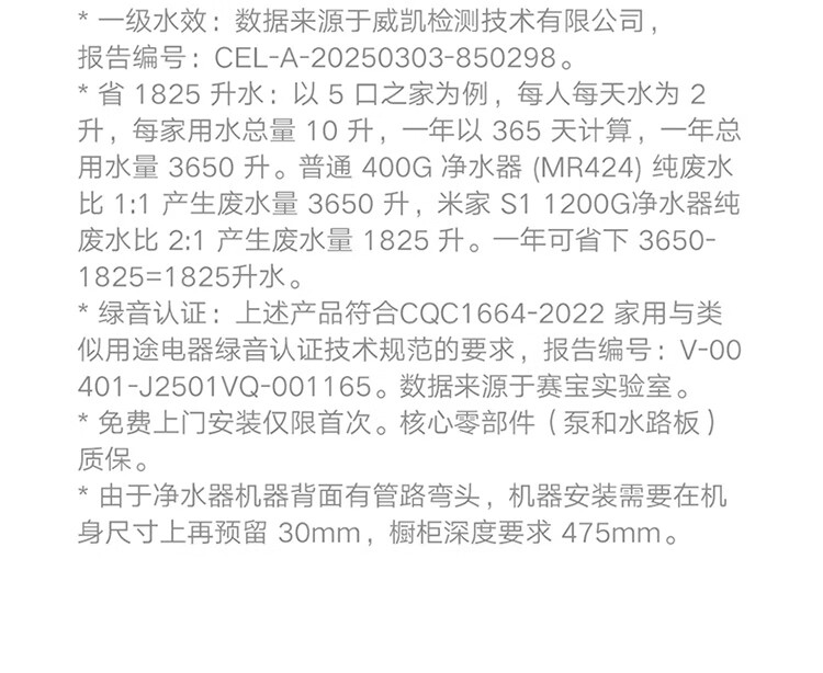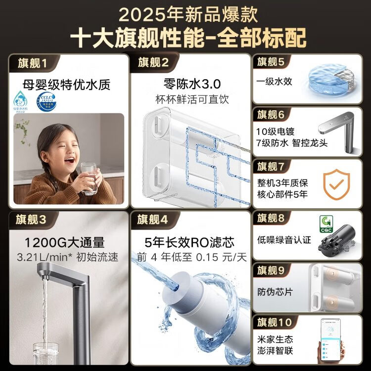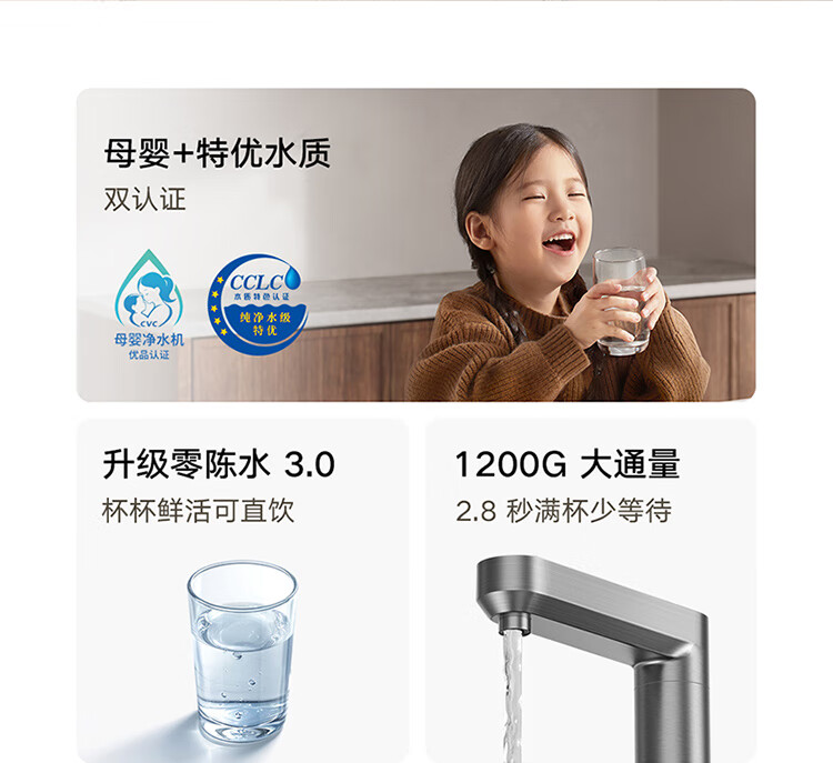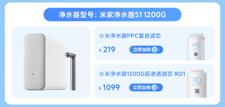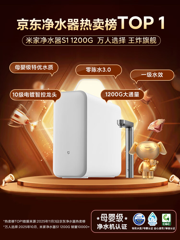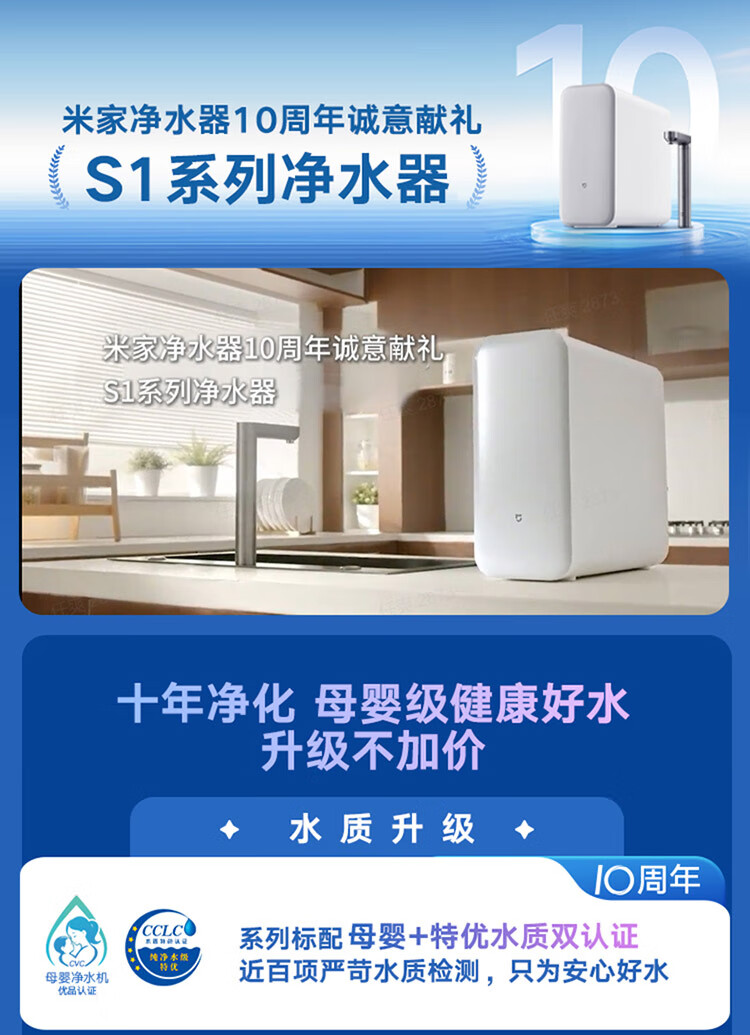 米家【10周年新品】小米净水器S1 1200G家用大通量5年长效RO反渗透过滤直饮净饮一体净水机 MR1272-A