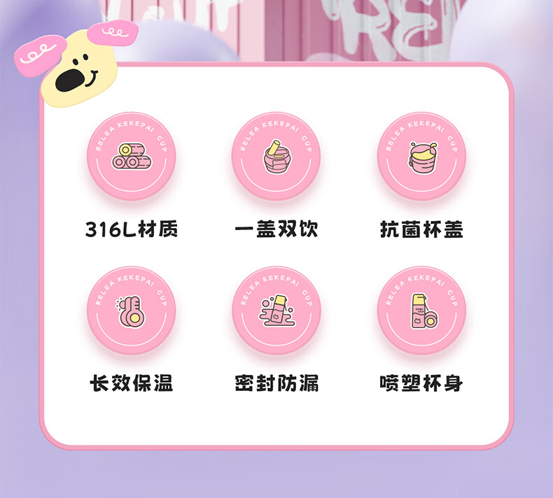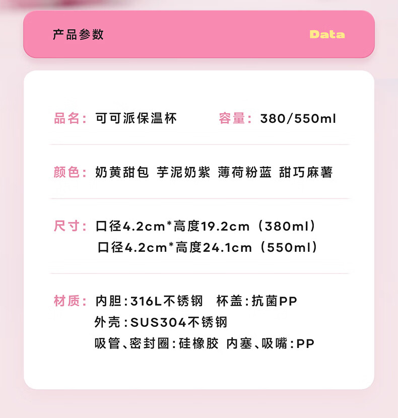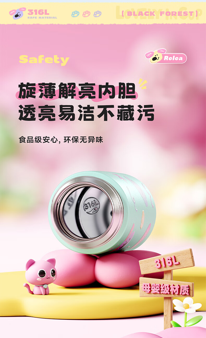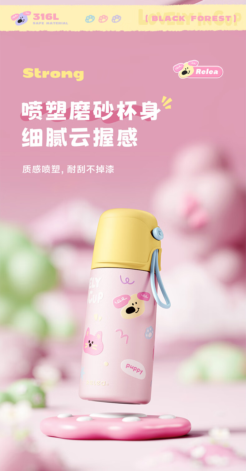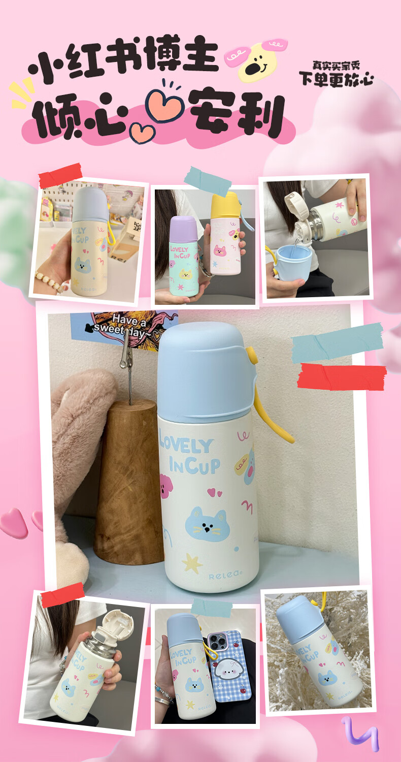 物生物儿童保温杯女士高颜值吸管水杯316L不锈钢大容量学生上学圣诞礼物 甜巧麻薯【一盖双饮】380ml