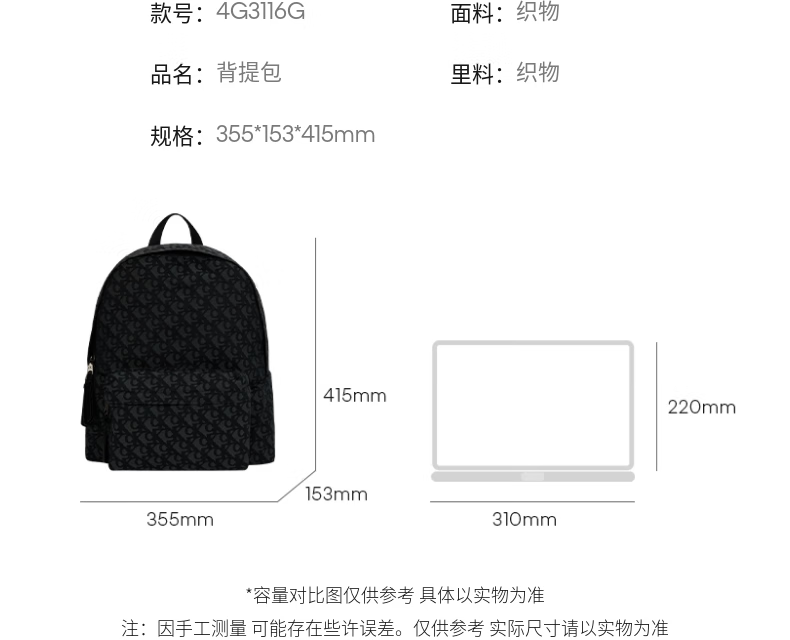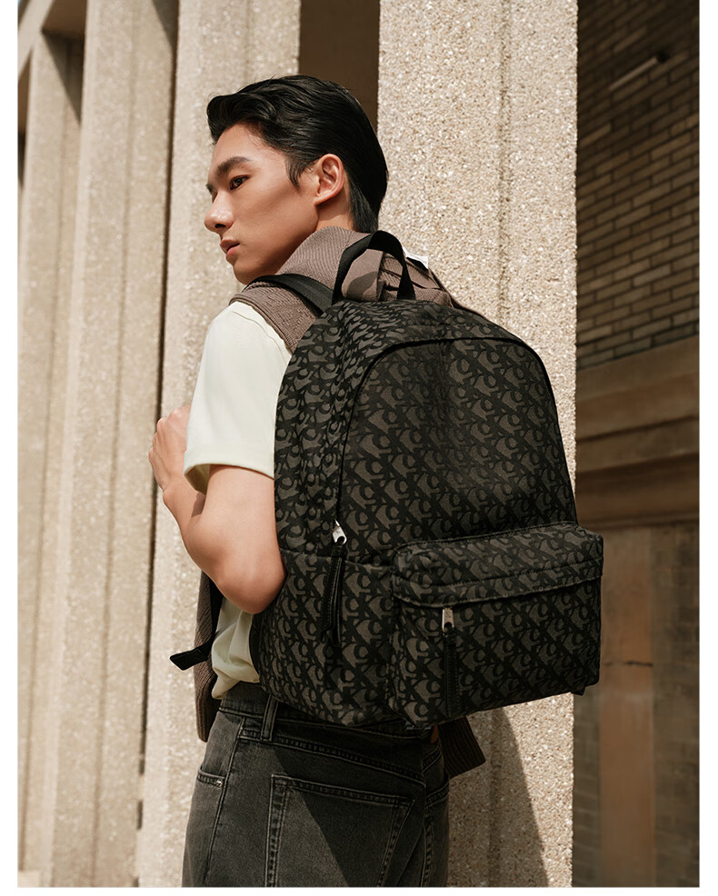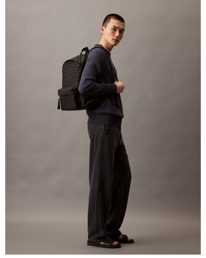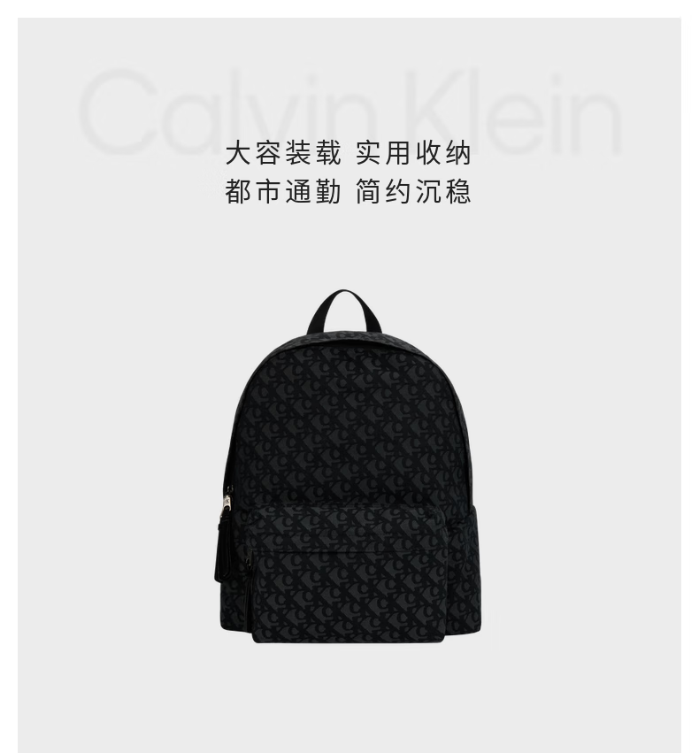 Calvin KleinJeans【圣诞礼物】25男士休闲通勤校园风ck提花大容量书包双肩包 UB1-太空黑 OS