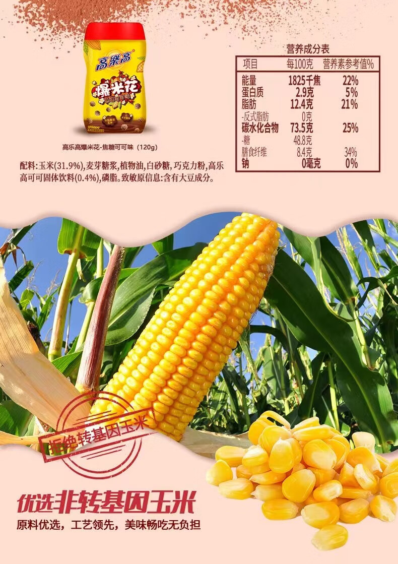 高乐高爆米花焦糖可可味120g桶装网红休闲零食膨化玉米球26年6.30到期