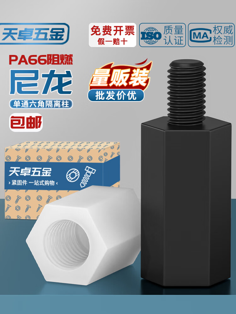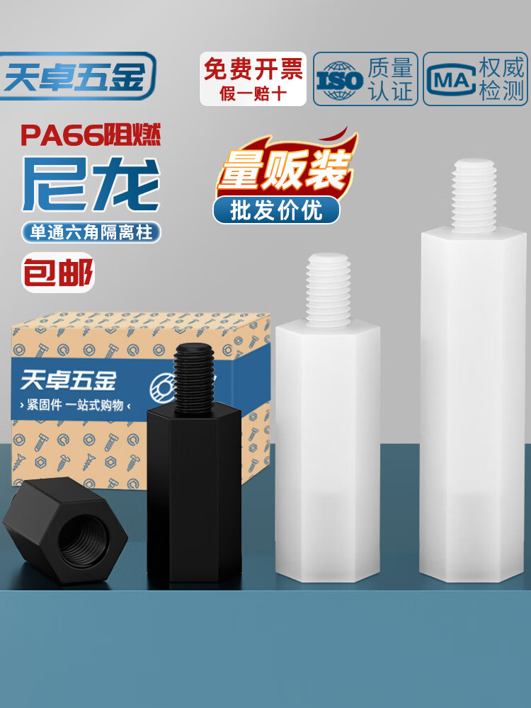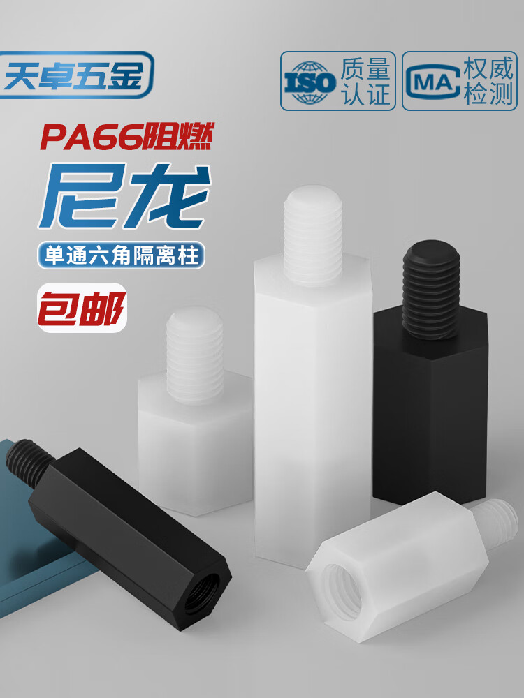 天卓五金绝缘阻燃尼龙塑料塑胶六角单头隔离柱支撑柱间隔柱螺柱M2M3M4M5mm 白色尼龙柱(M2.0)套装