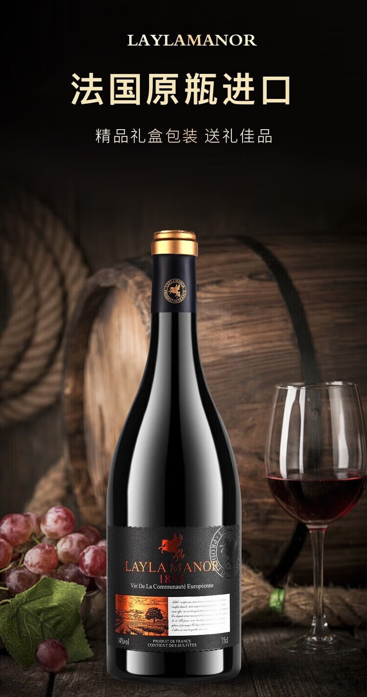 LAYLA法国蕾拉【品牌爆款月销过万】进口14度干红葡萄酒750mlX6礼盒装