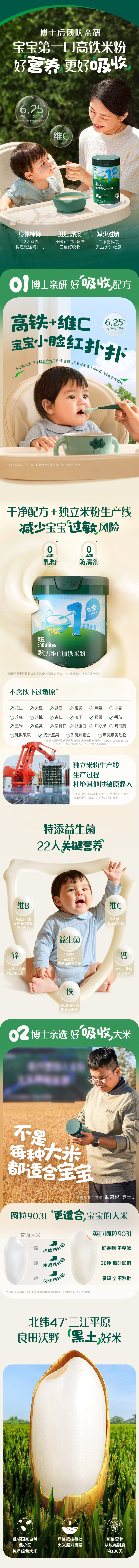 英氏米粉罐装套组婴幼儿高铁米粉6-12个月辅食宝宝营养米糊 1阶6月+第一口选维C加铁 258g*1罐