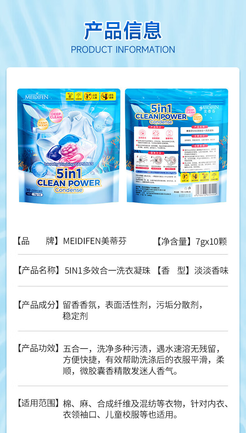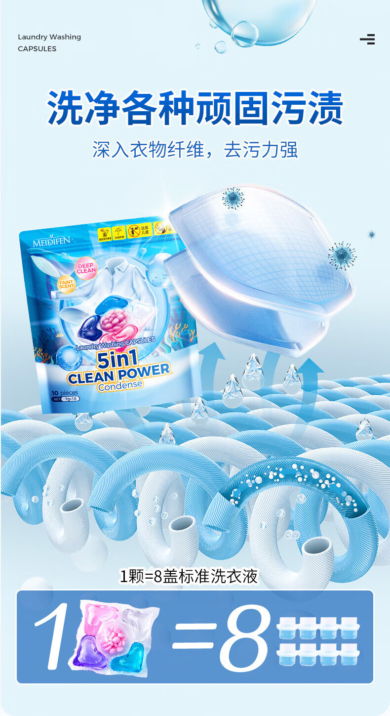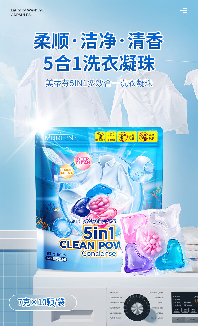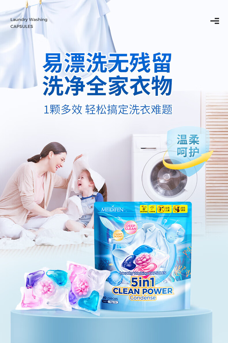 美蒂芬三效合一浓缩洗衣凝珠留香祛菌护衣 10颗/袋