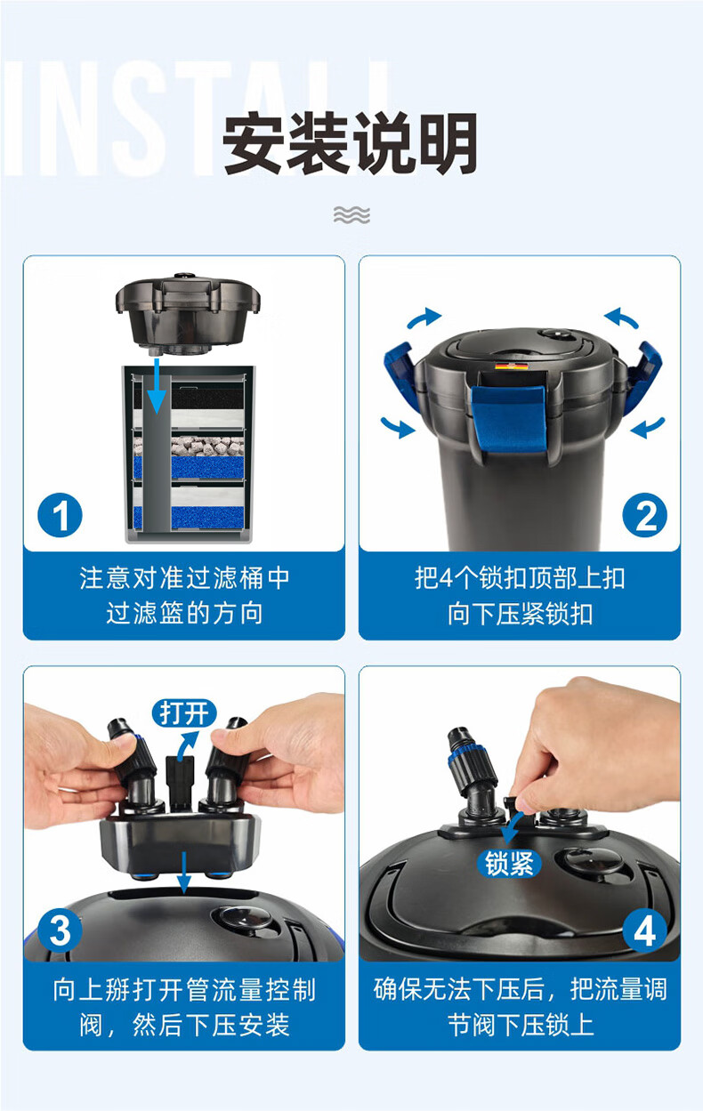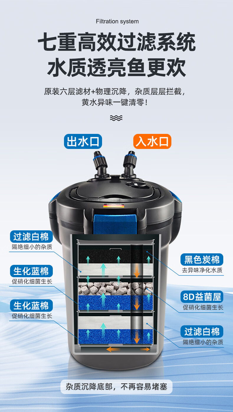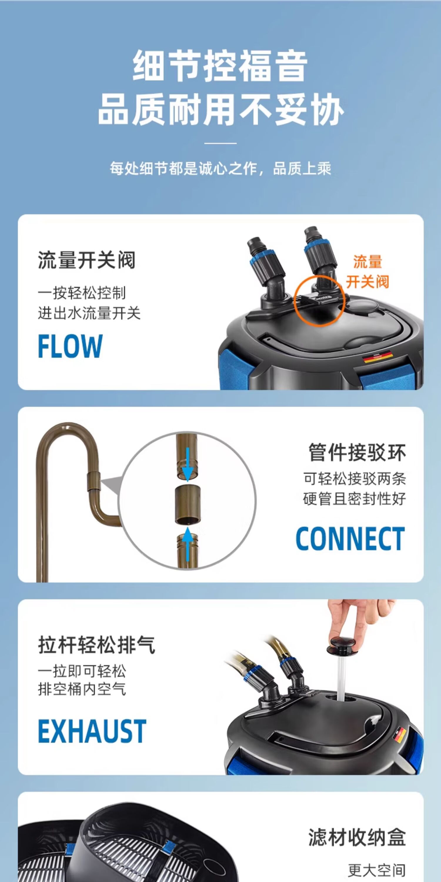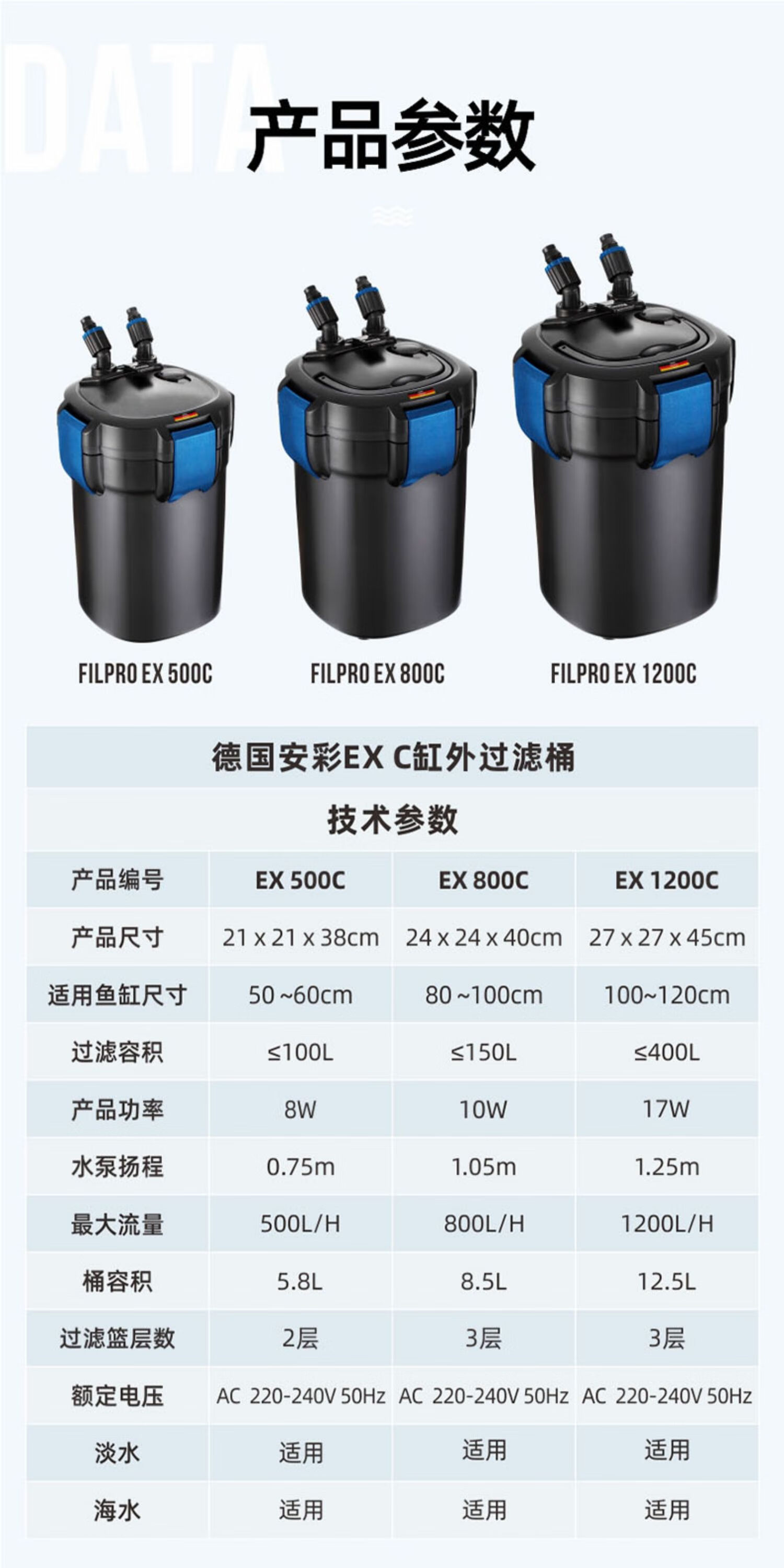 AMTRA TECHNIK德国安彩过滤桶过滤器鱼缸缸外净水静音EX800C EX800C【内含滤材】适合80CM-100CM鱼缸