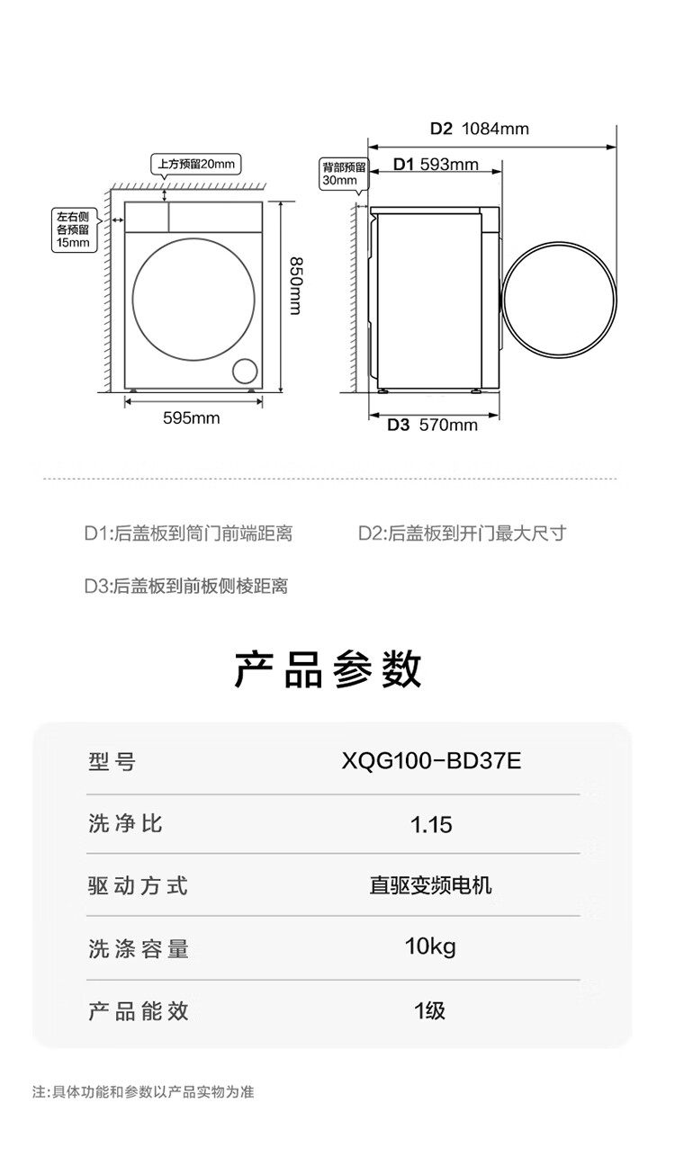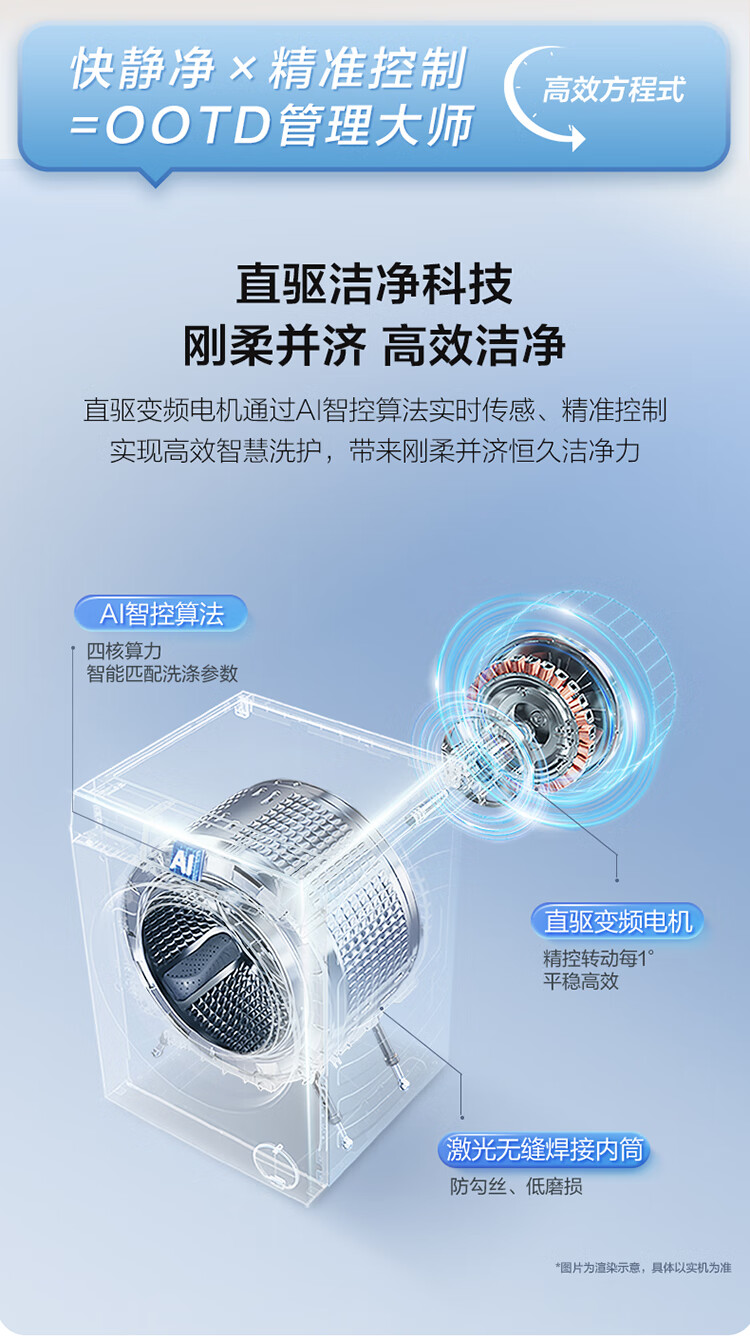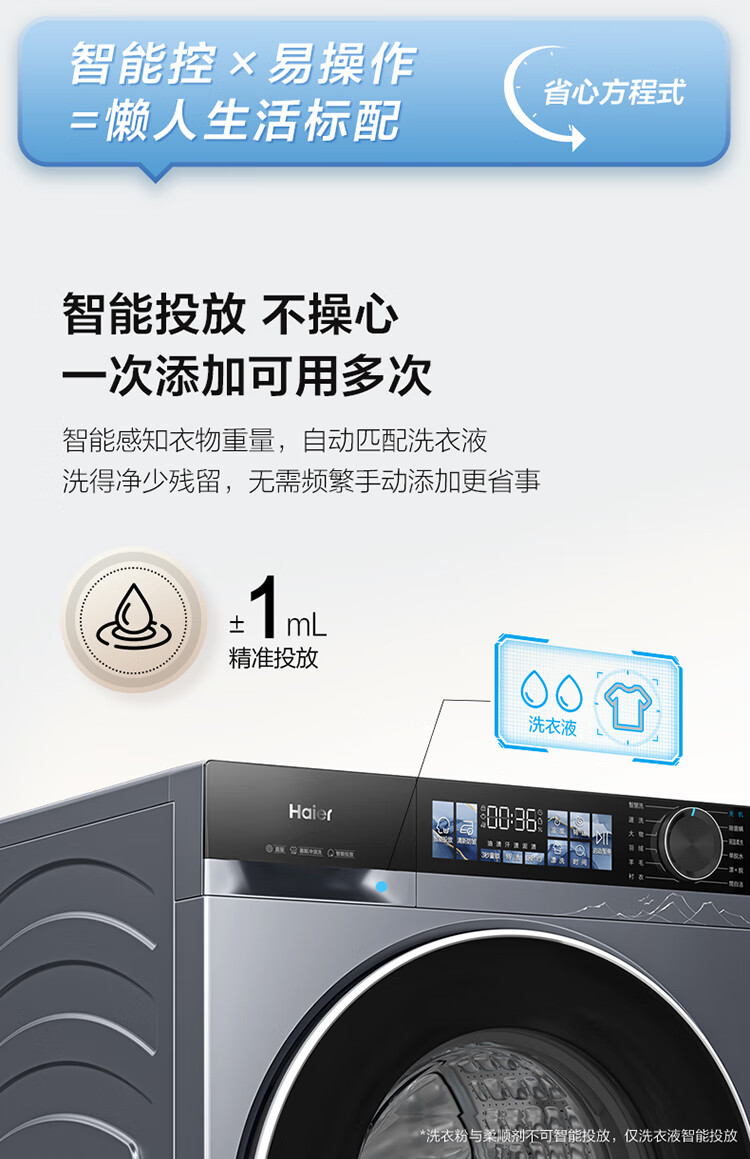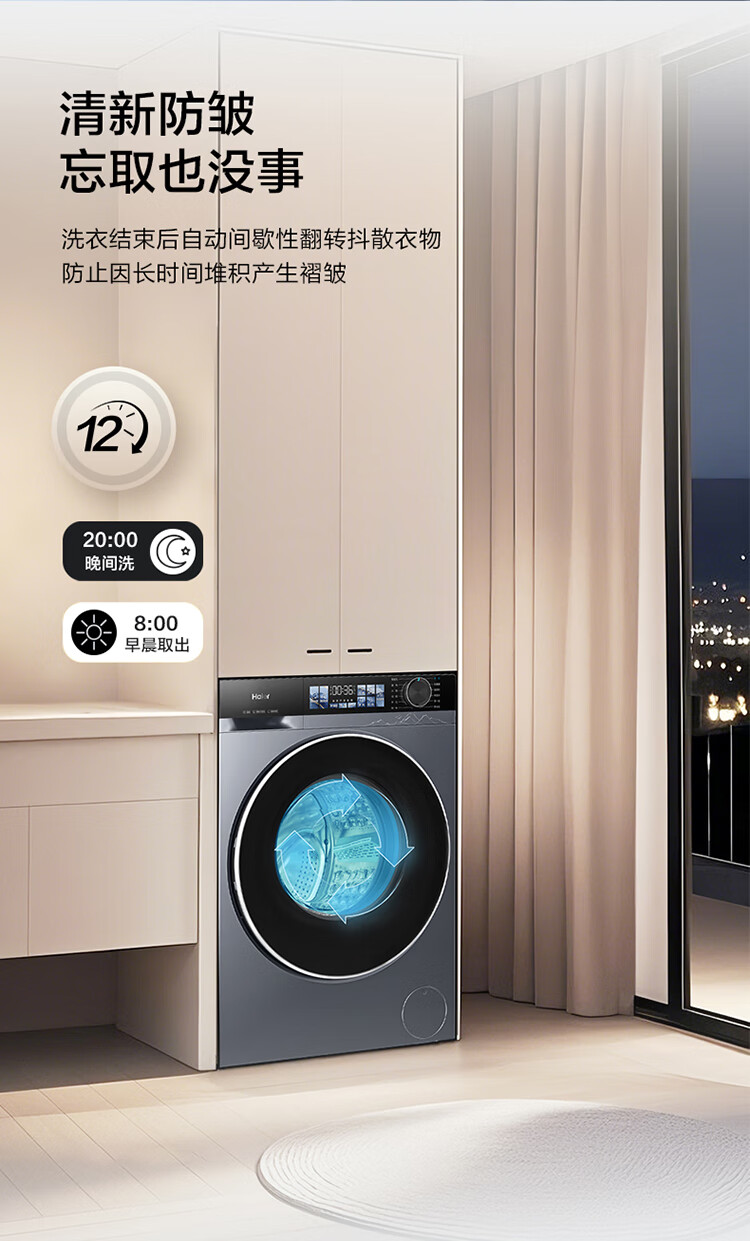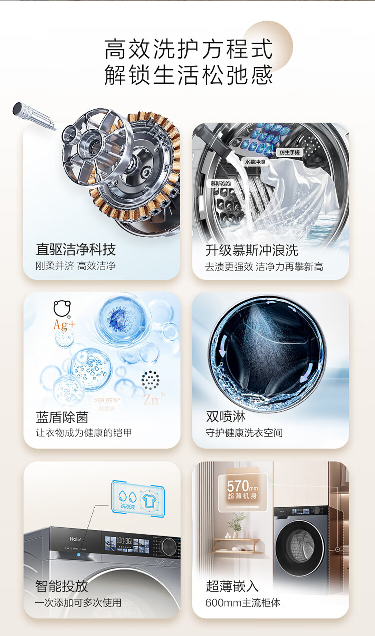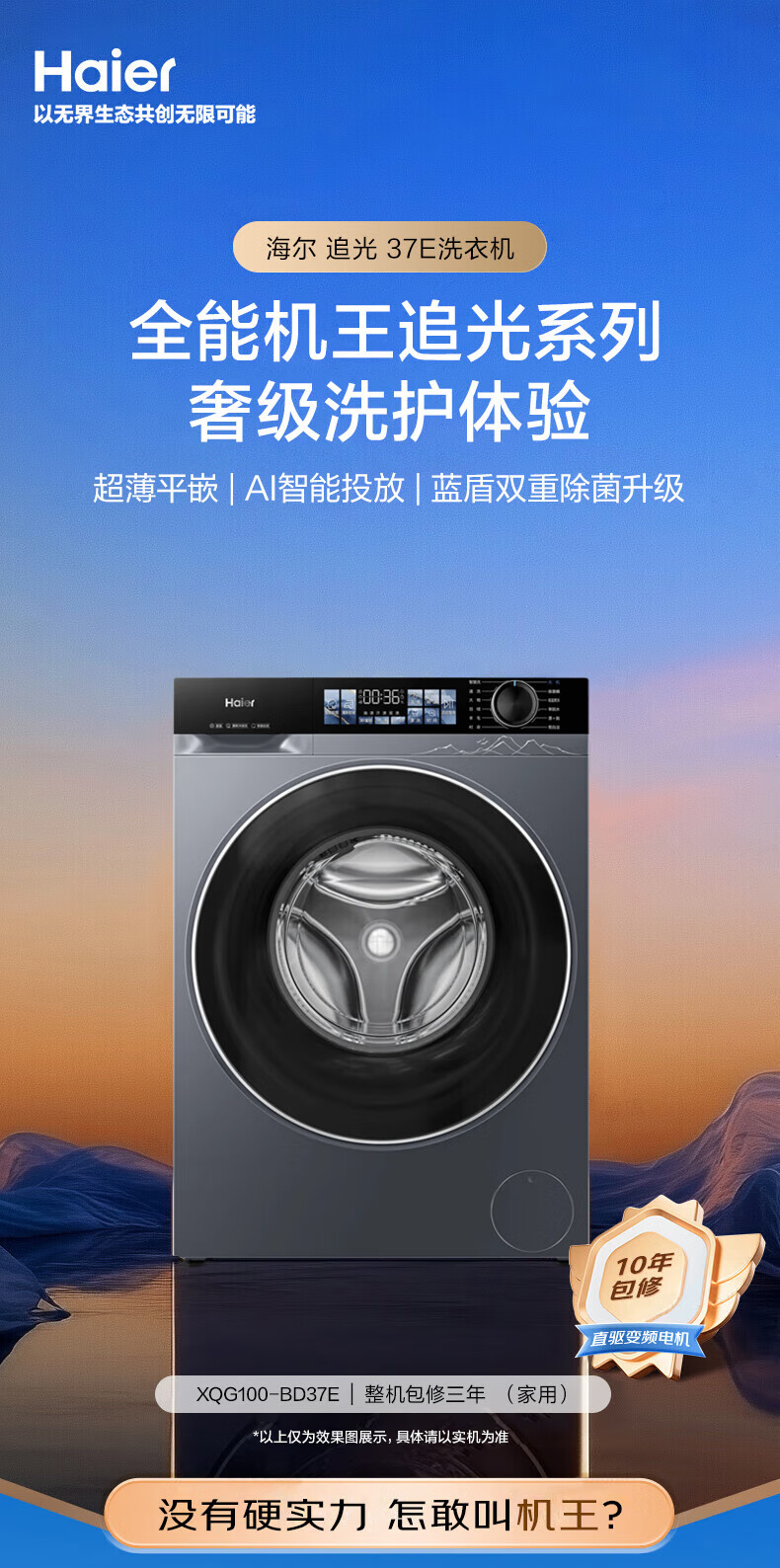 海尔(Haier)【25年追光新品】滚筒洗衣机全自动 10公斤超薄家用 直驱一级能效 以旧换新国家补贴 XQG100-BD37E