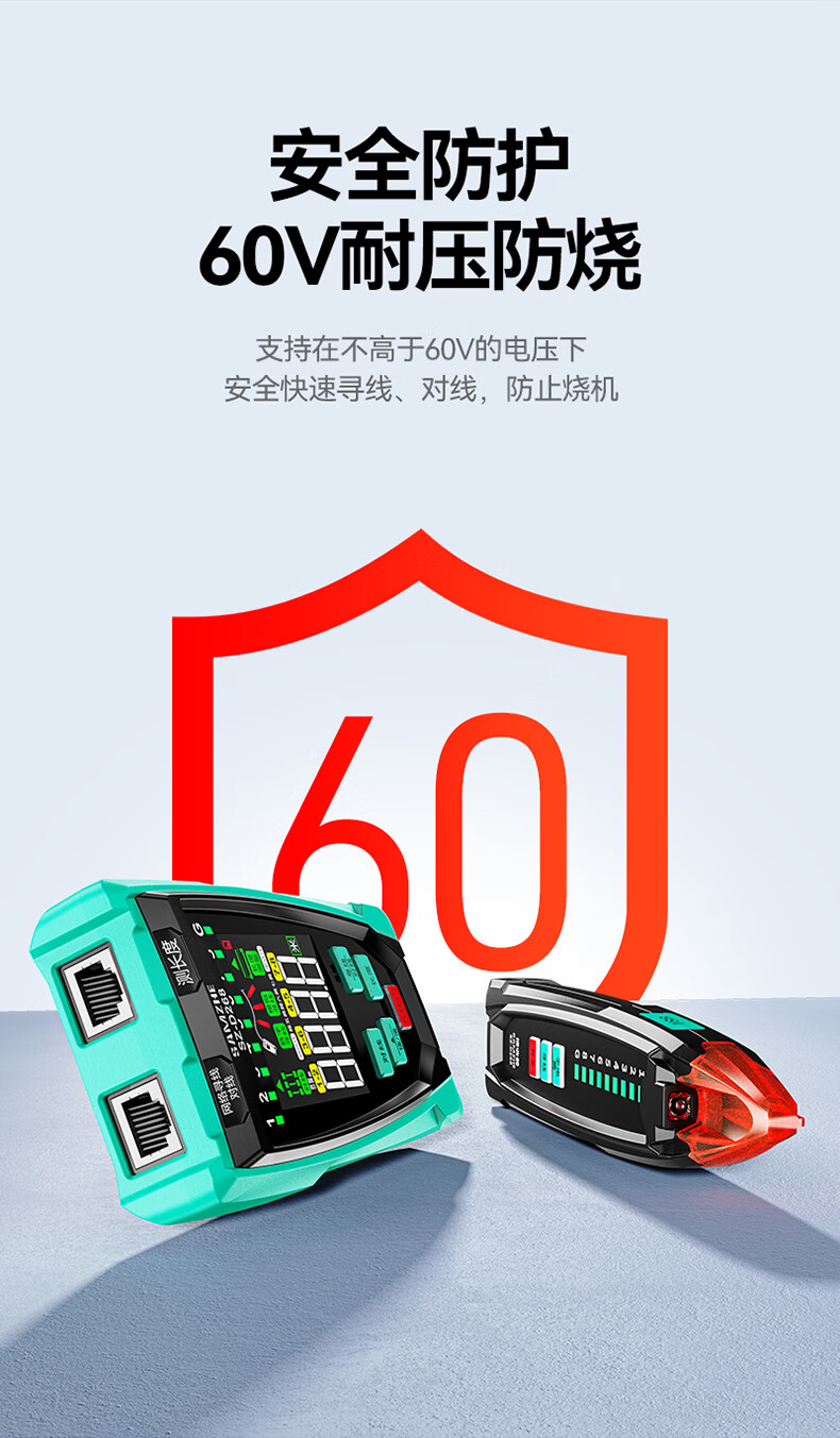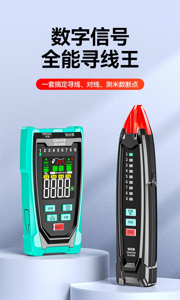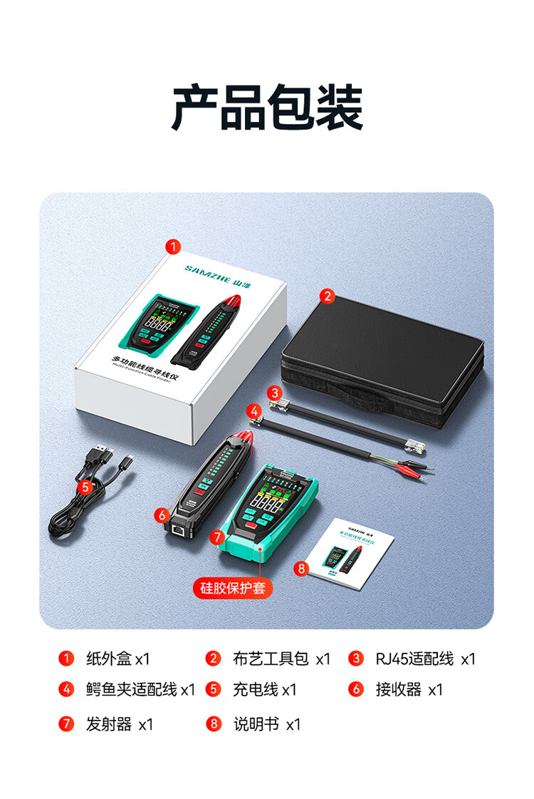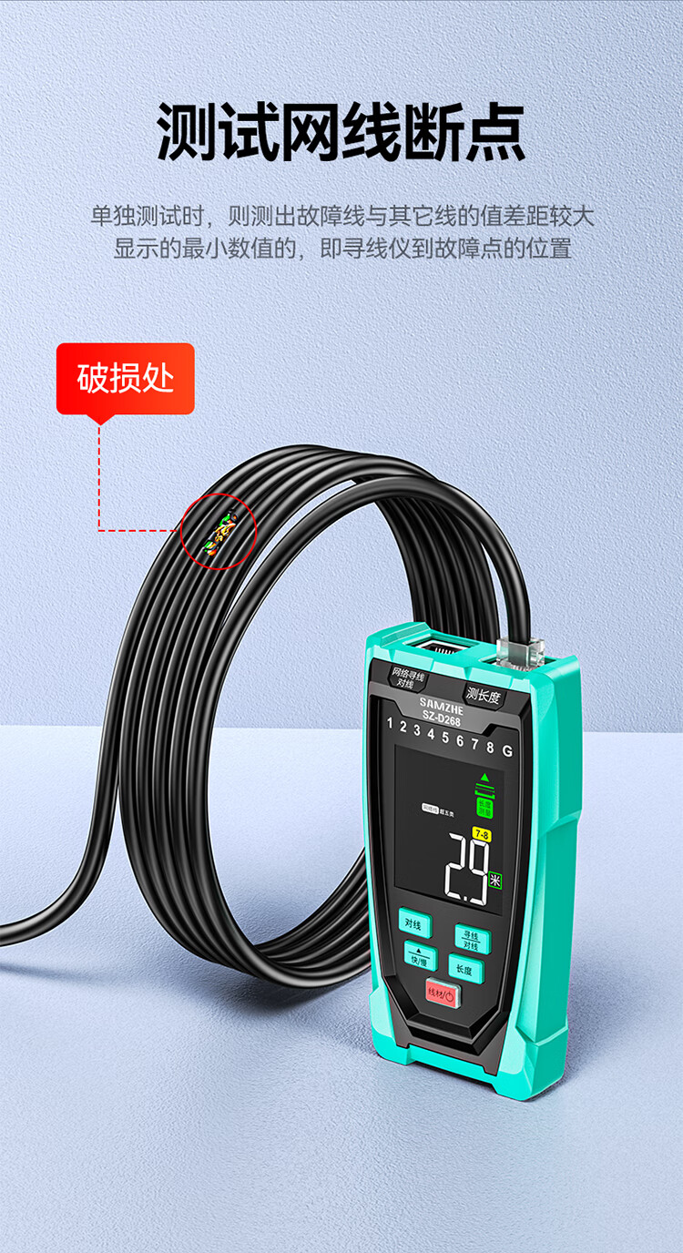 山泽 多功能网络寻线仪 支持POE带电60V耐压巡线 网线长度断点测线仪找线器抗干扰 SZ-D268