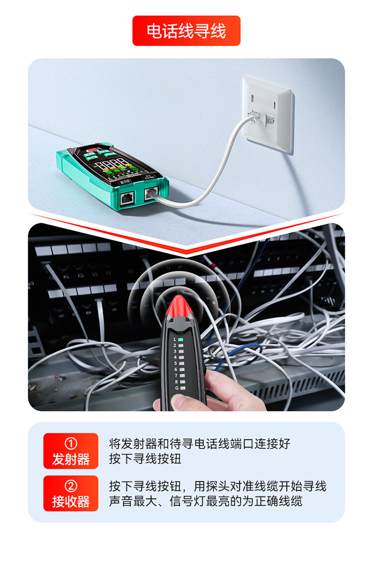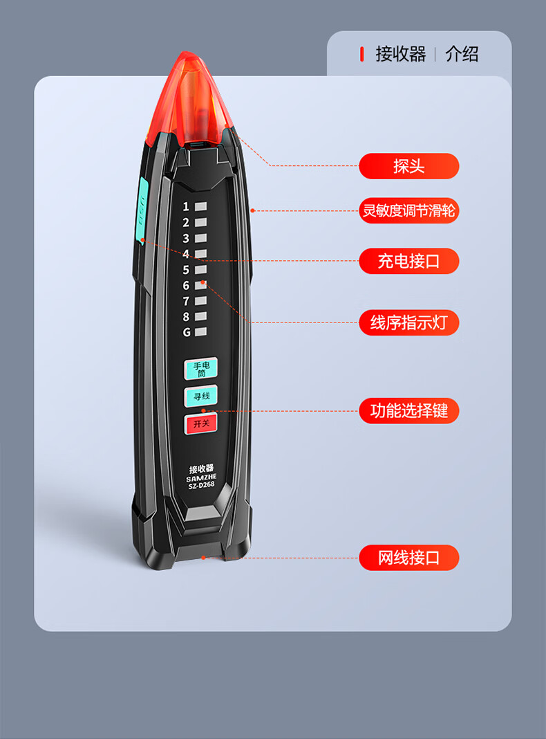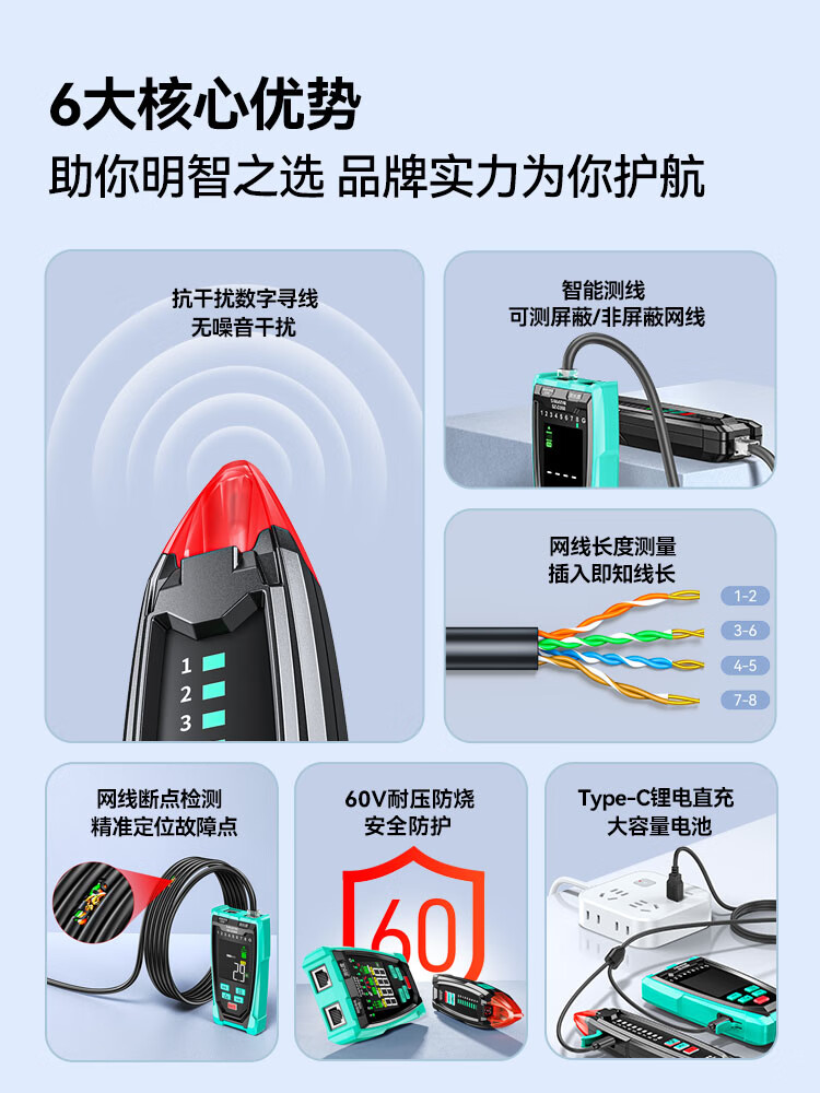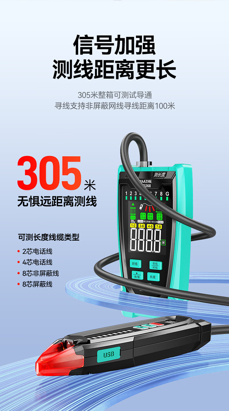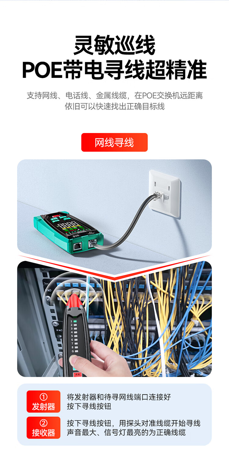 山泽 多功能网络寻线仪 支持POE带电60V耐压巡线 网线长度断点测线仪找线器抗干扰 SZ-D268