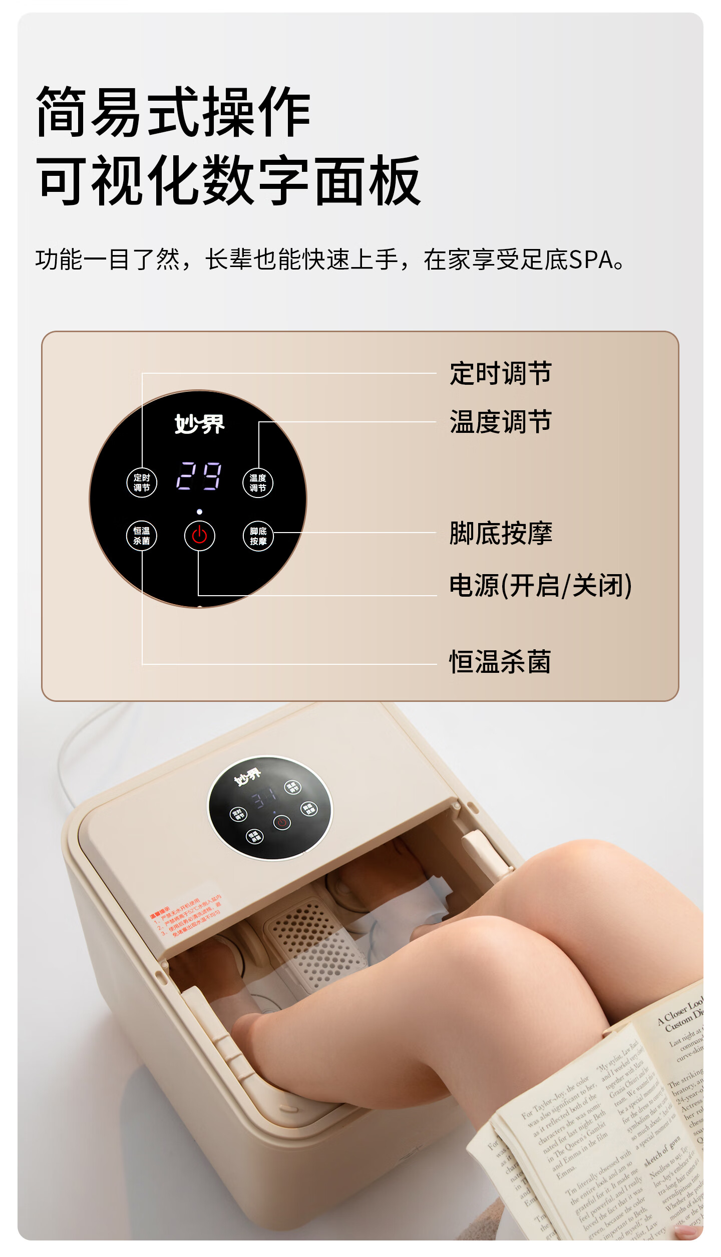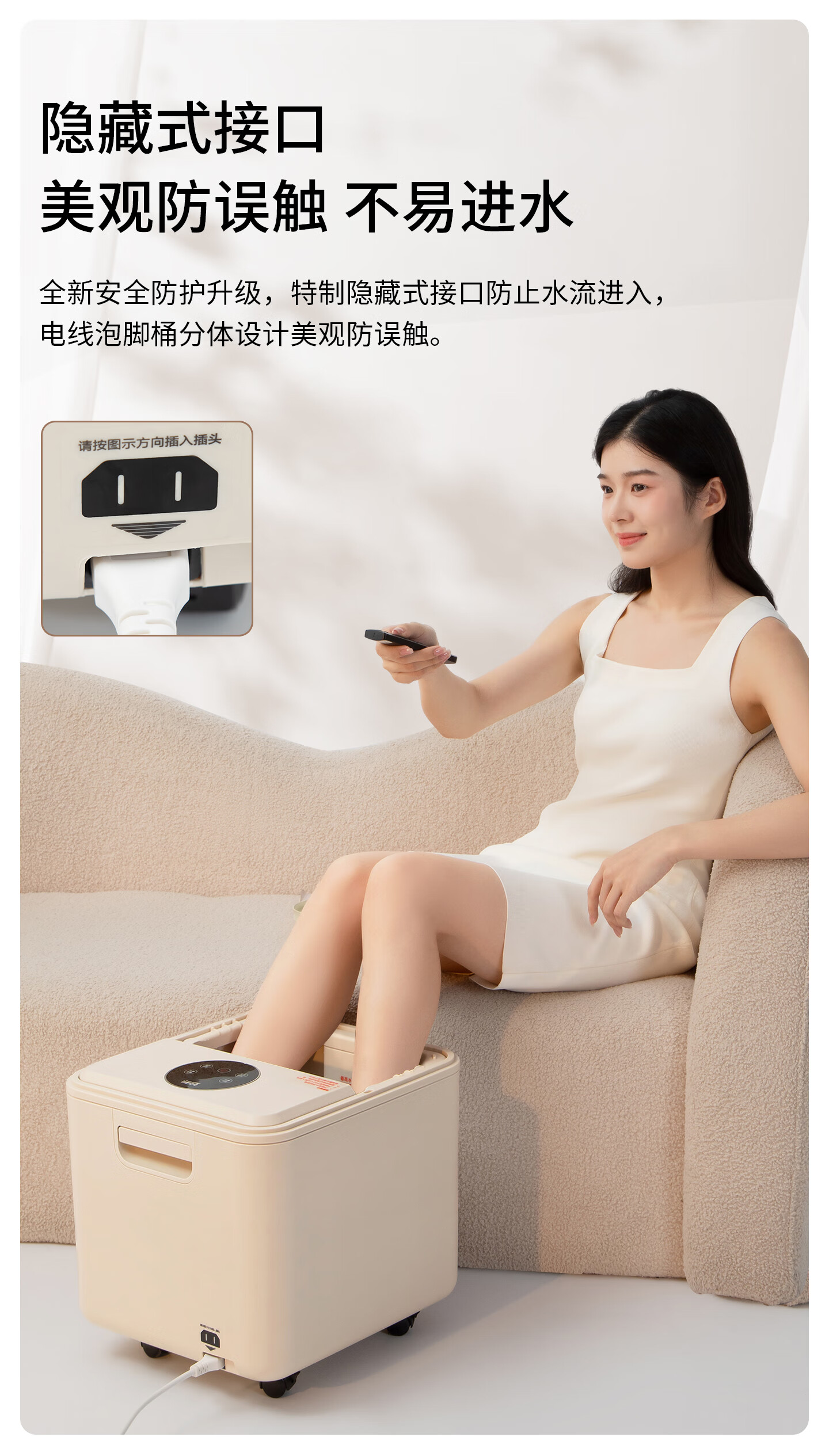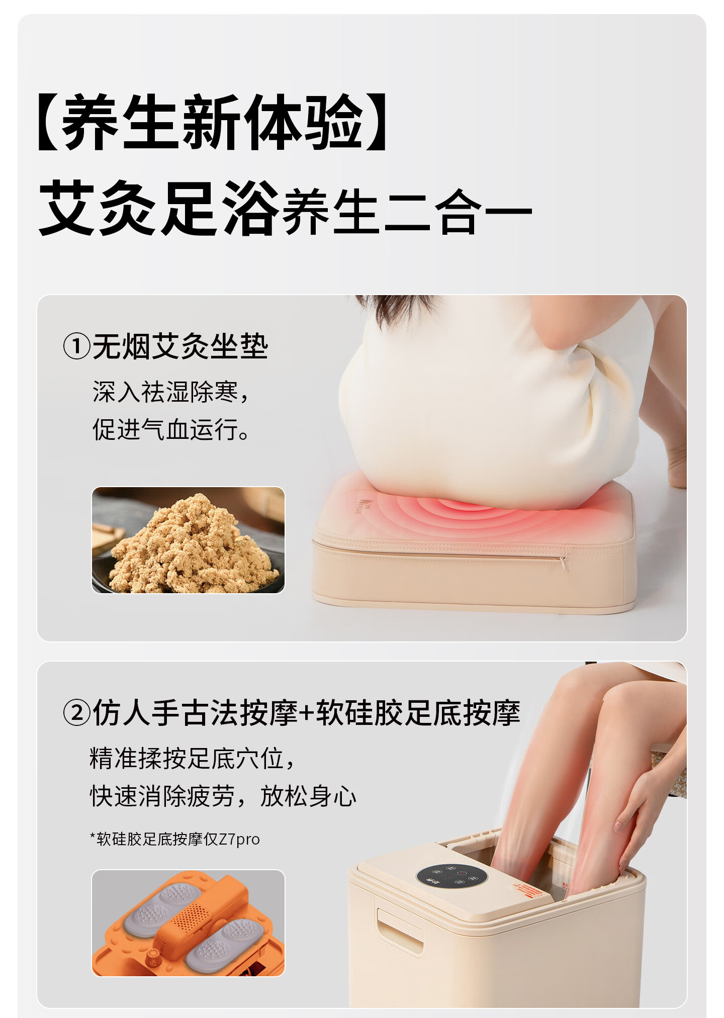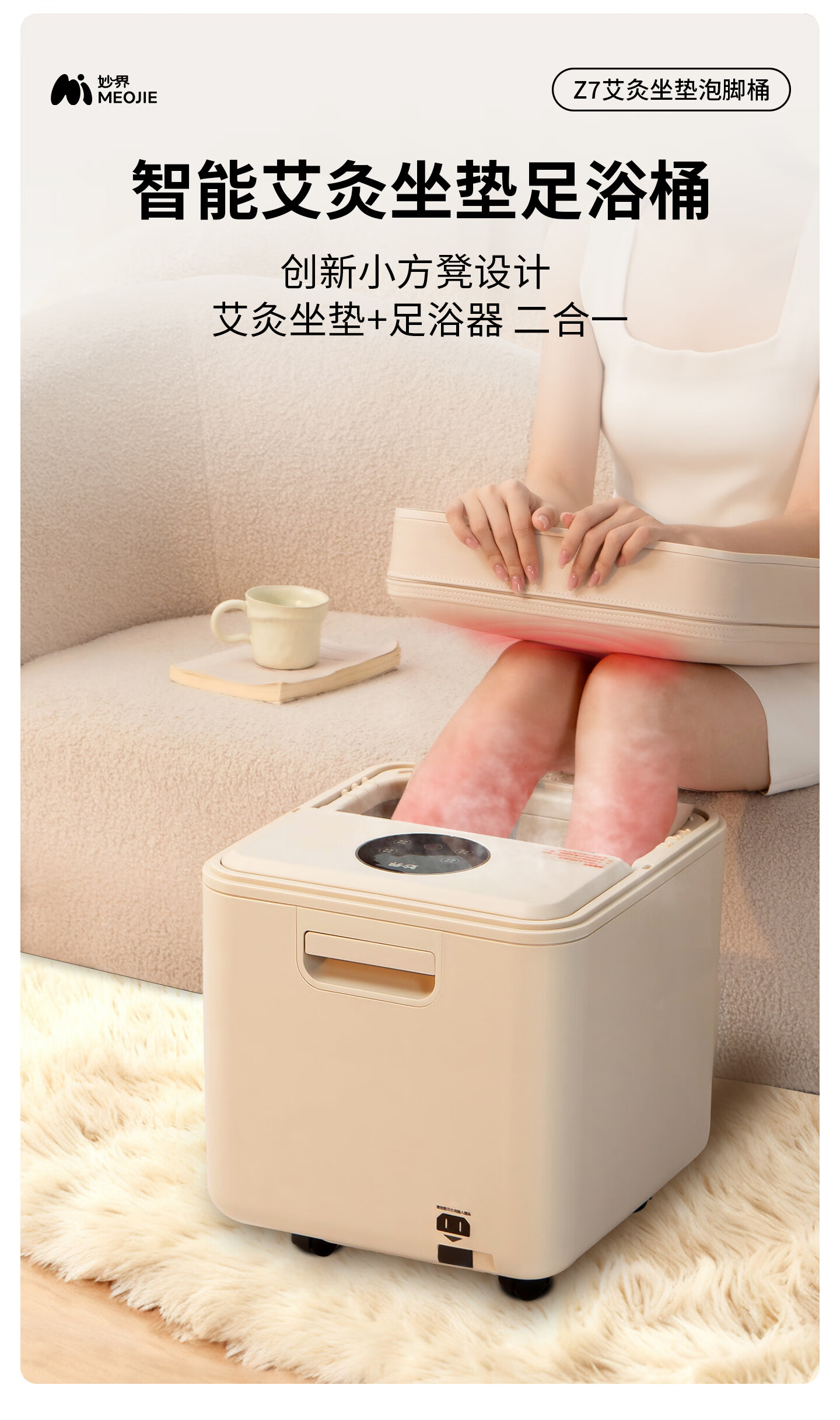妙界Z6Z7泡脚桶居家足浴Spa加热精准控温恒温智能杀菌活水足浴盆艾灸热敷坐垫足浴器 【Z7香槟金】小方凳+电动按摩+DPS加热+涌浪