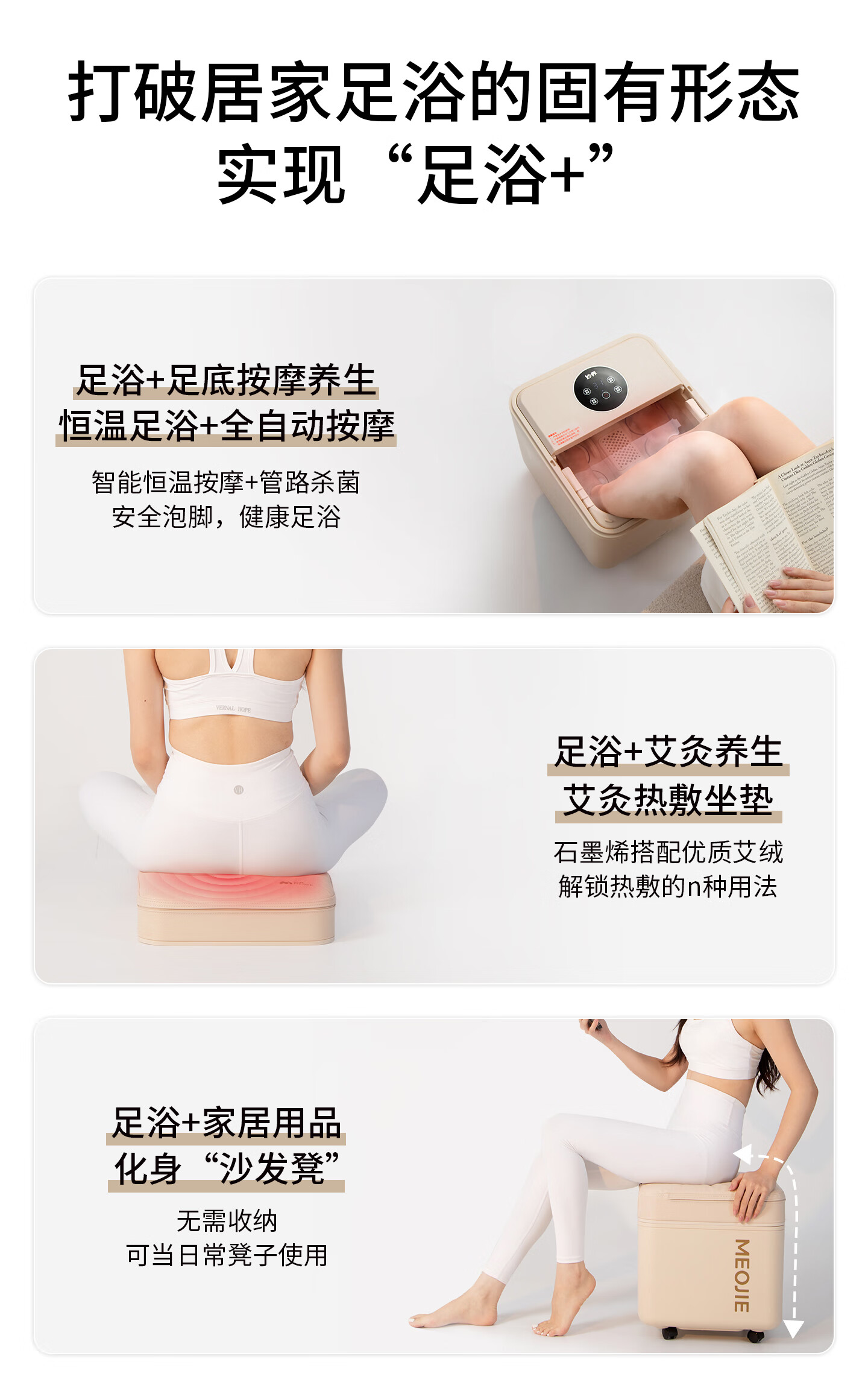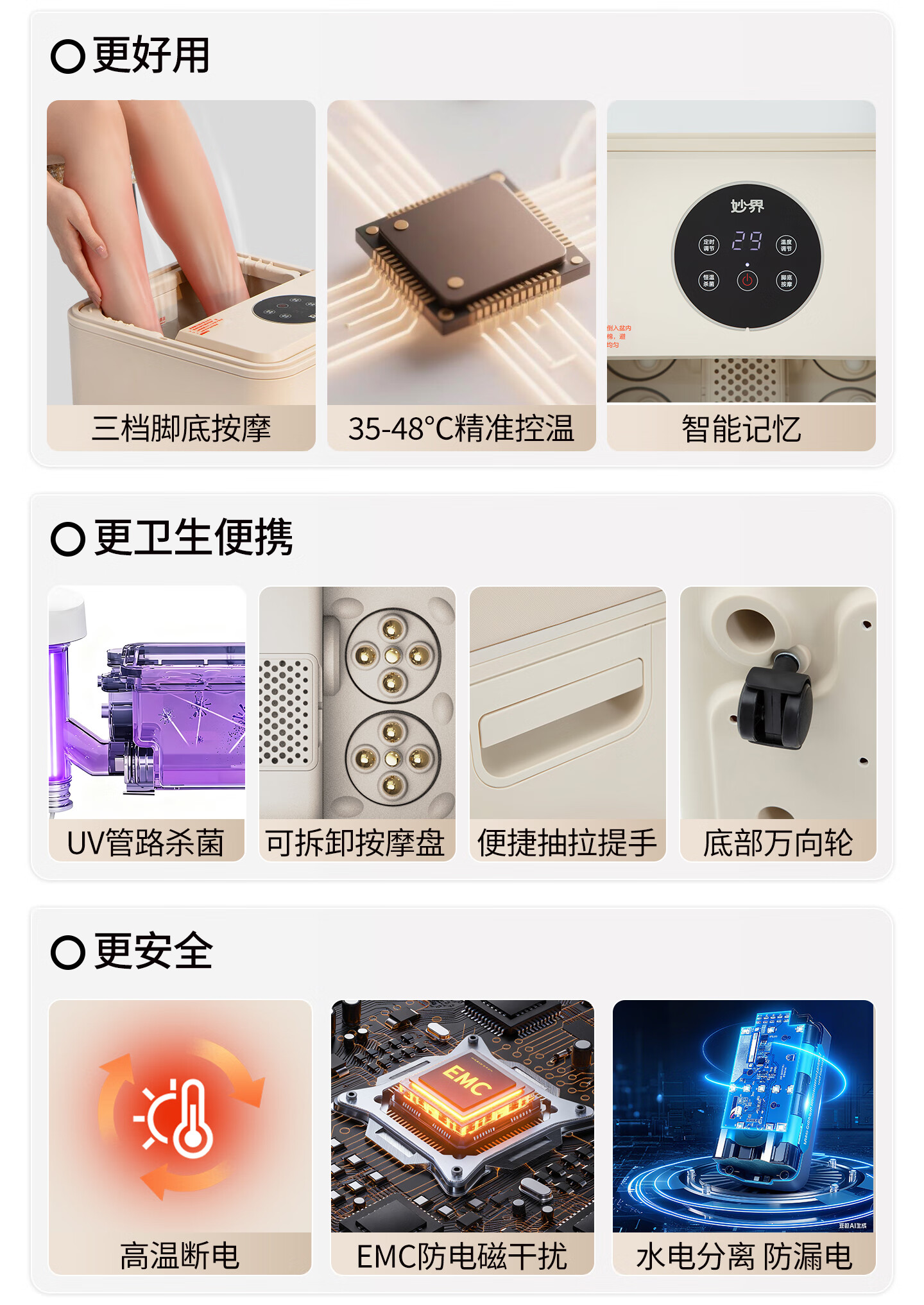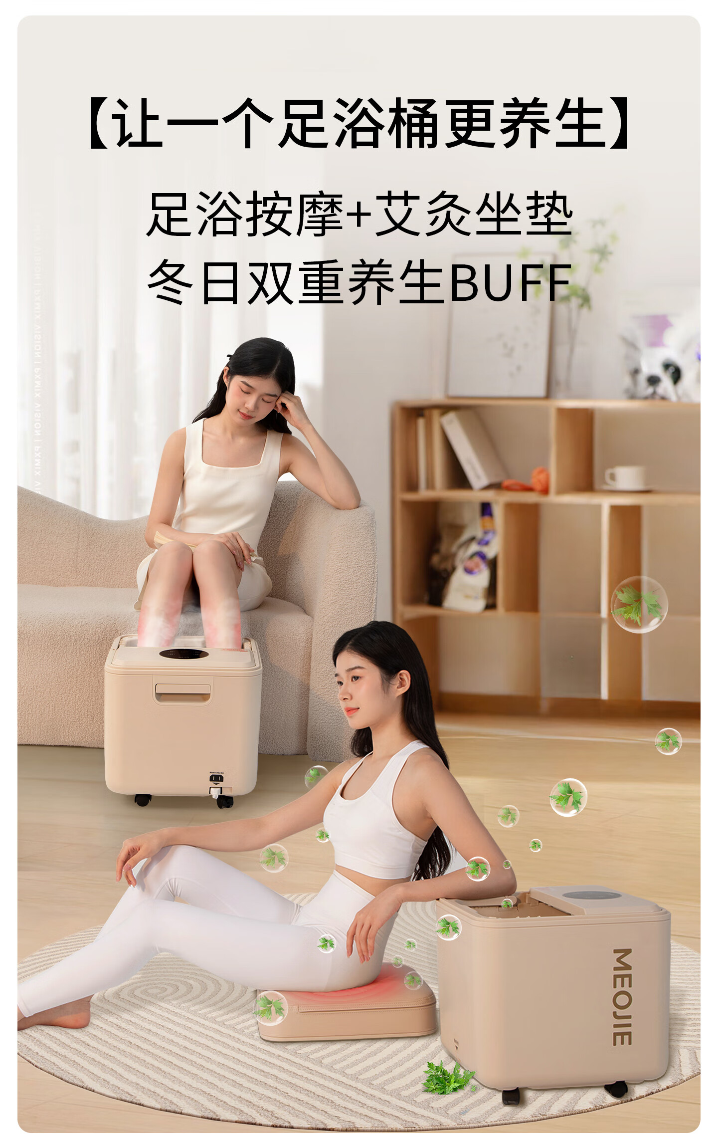 妙界Z6Z7泡脚桶居家足浴Spa加热精准控温恒温智能杀菌活水足浴盆艾灸热敷坐垫足浴器 【Z7香槟金】小方凳+电动按摩+DPS加热+涌浪