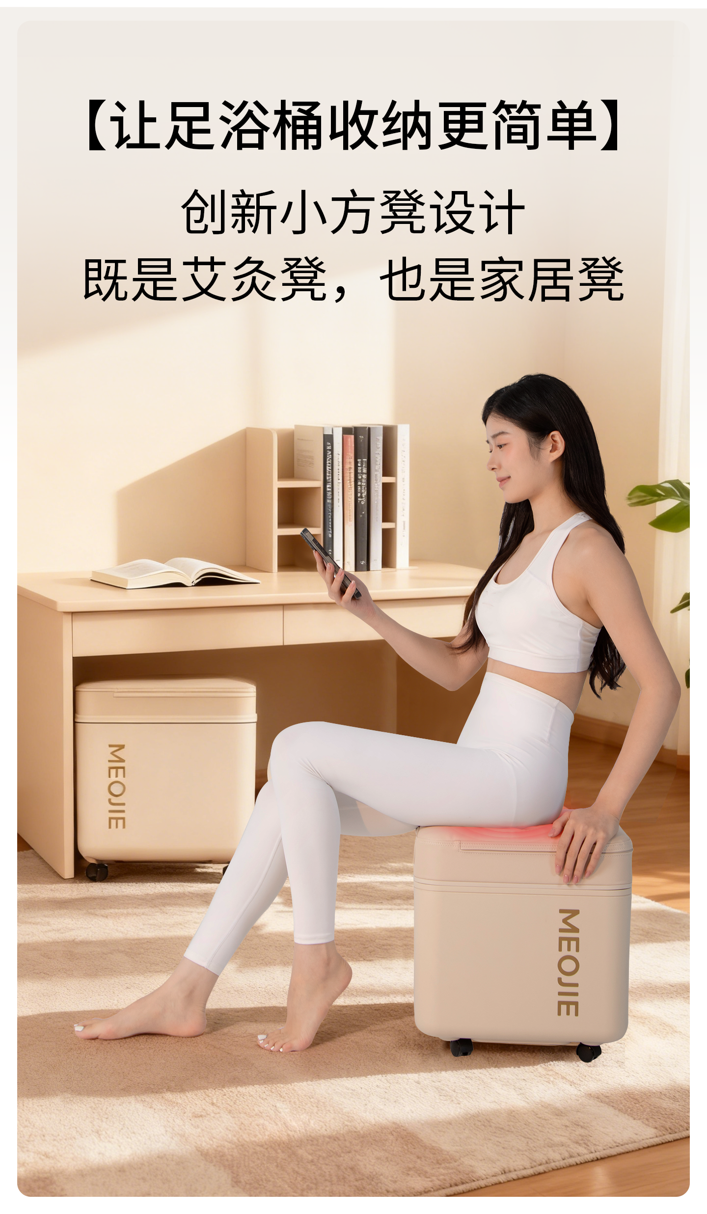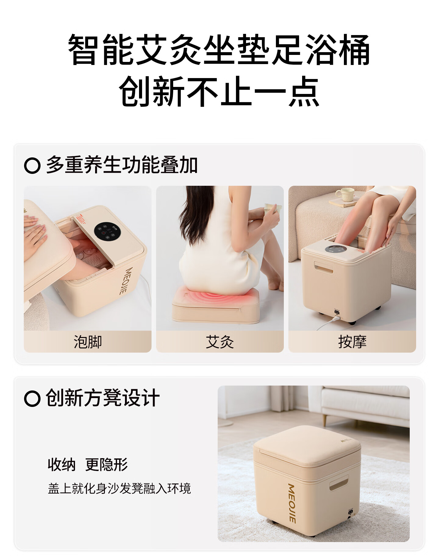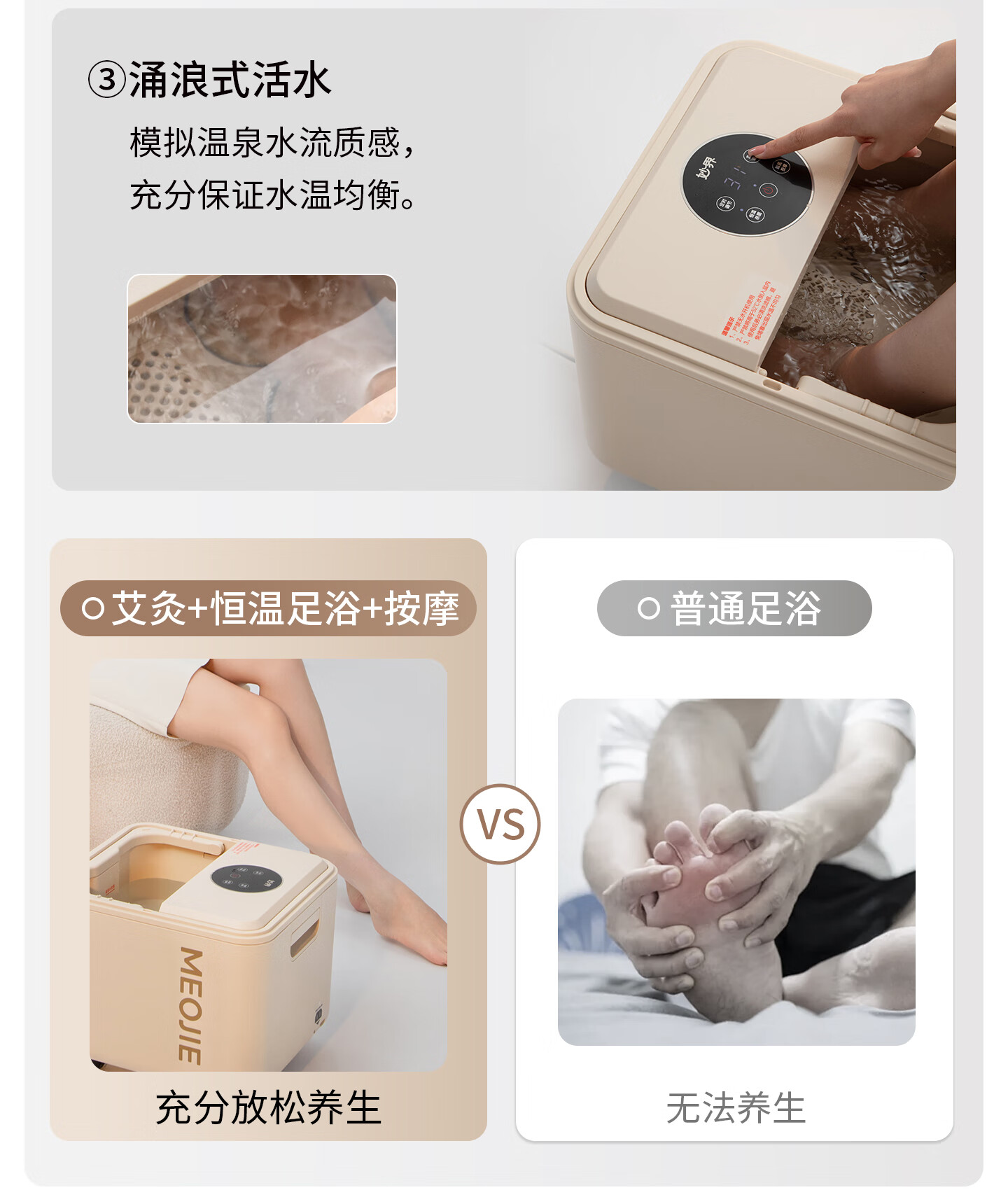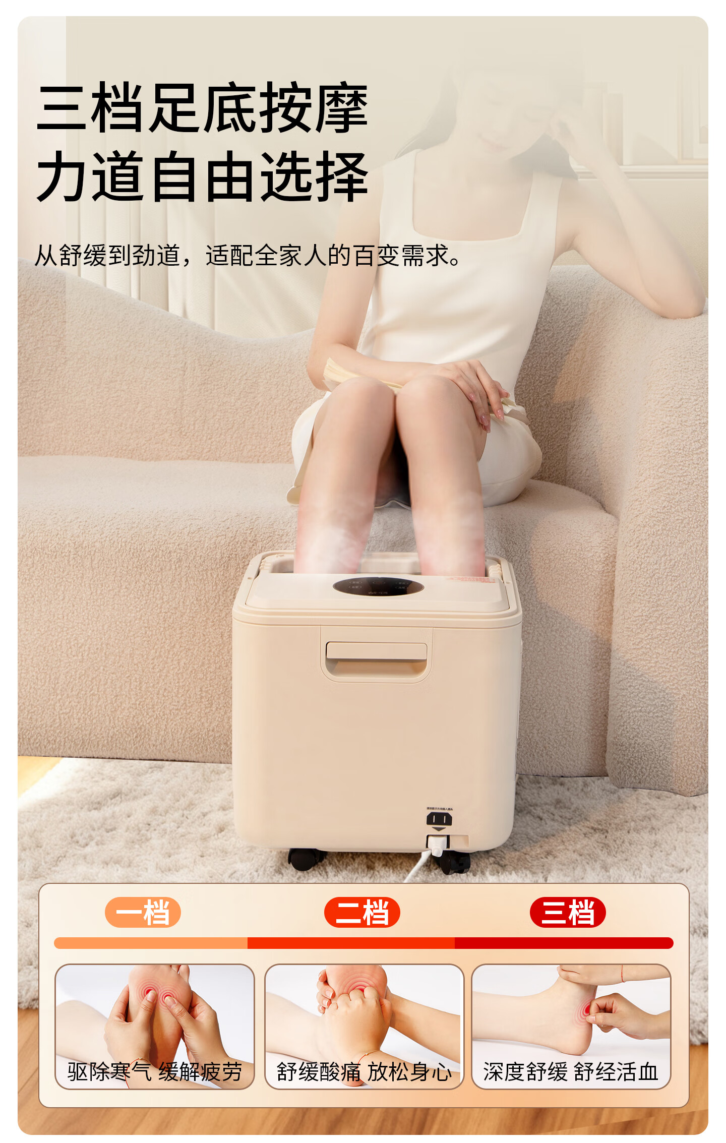 妙界Z6Z7泡脚桶居家足浴Spa加热精准控温恒温智能杀菌活水足浴盆艾灸热敷坐垫足浴器 【Z7香槟金】小方凳+电动按摩+DPS加热+涌浪