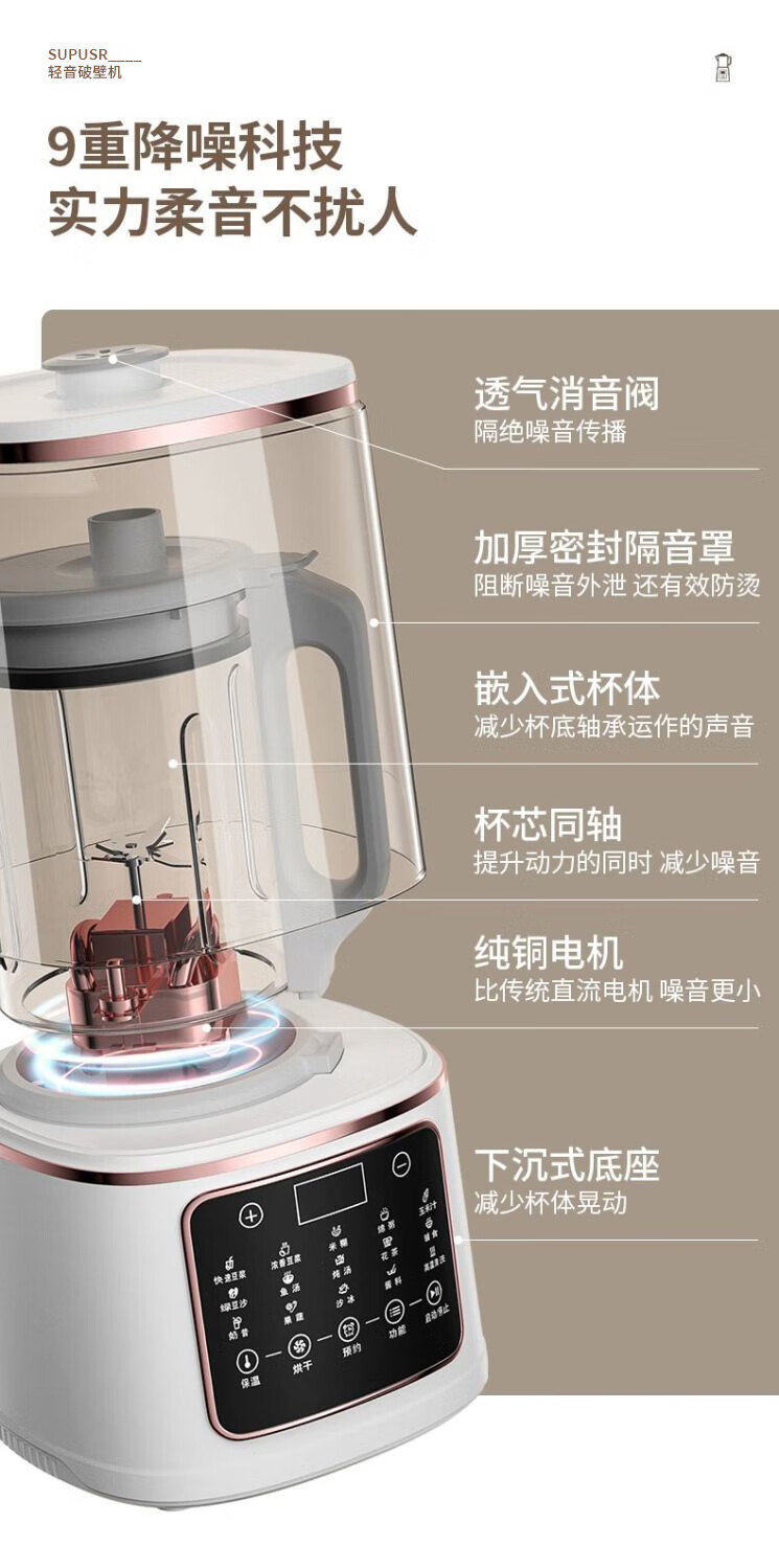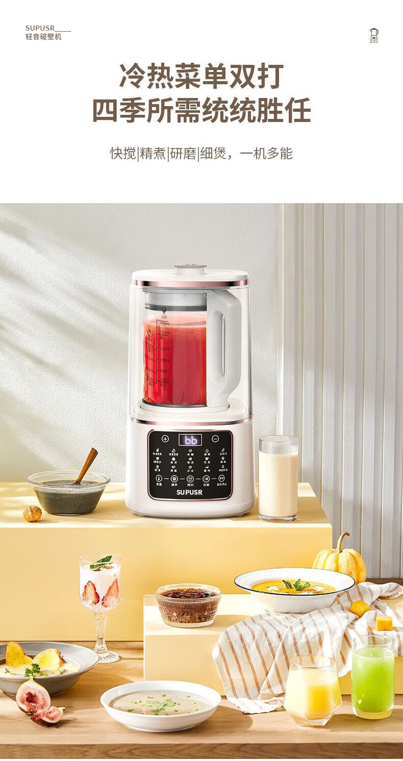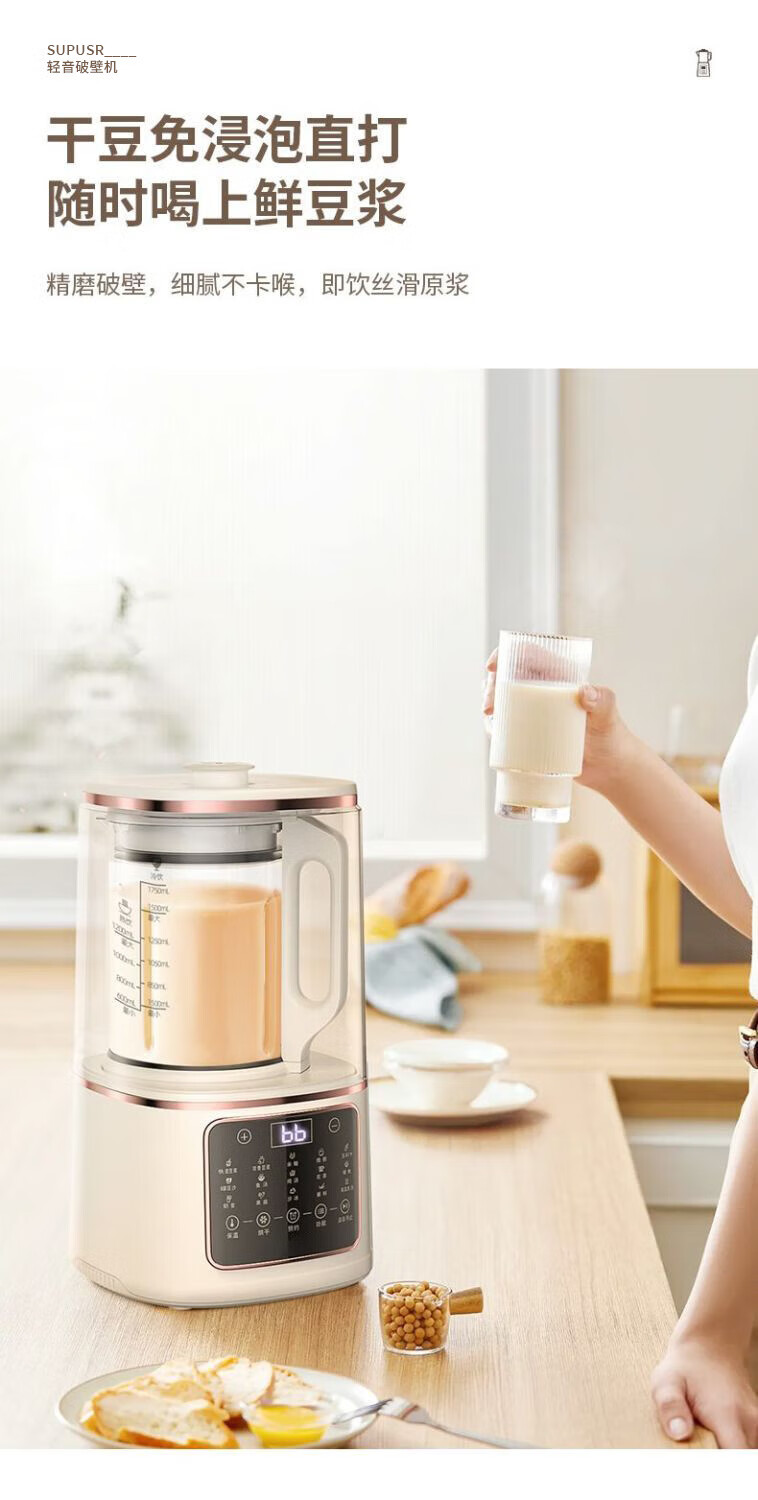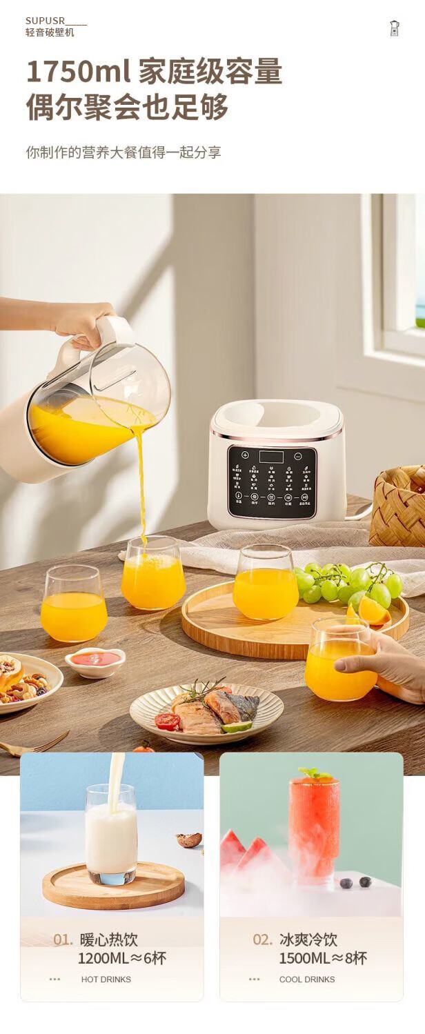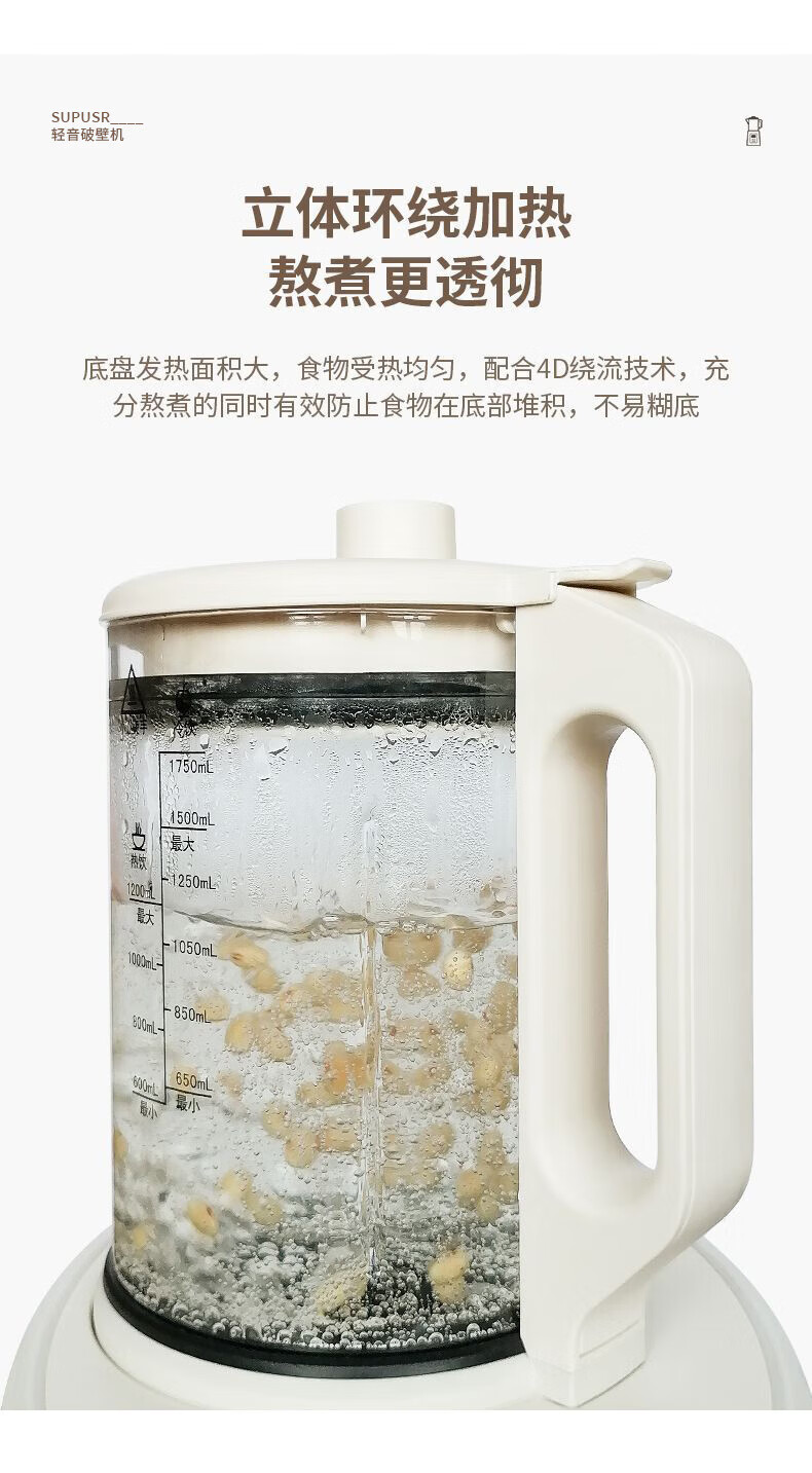 SUPUSR苏铂破壁机全自动豆浆机1.75L大容量免煮五谷杂粮多功能低音十重降噪智能预约加热高速榨汁机辅食 1.75L【防糊底盘+24叶刀】轻音破壁
