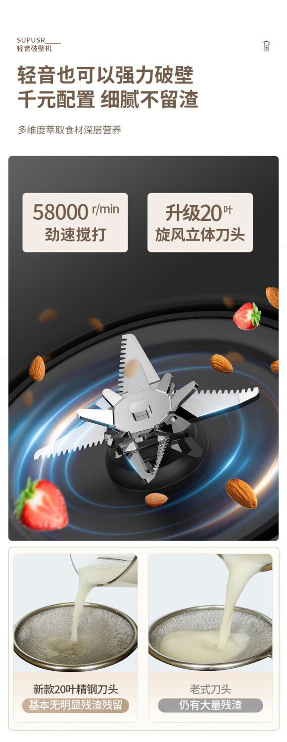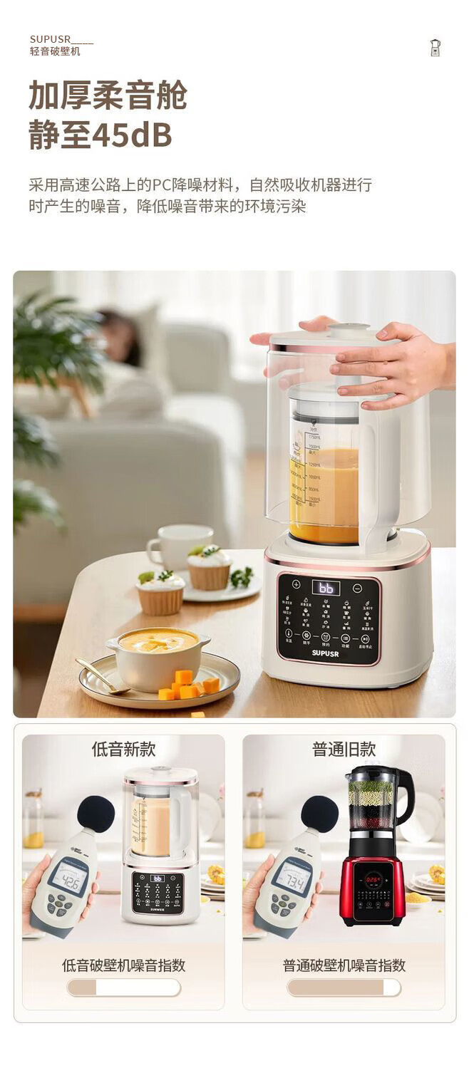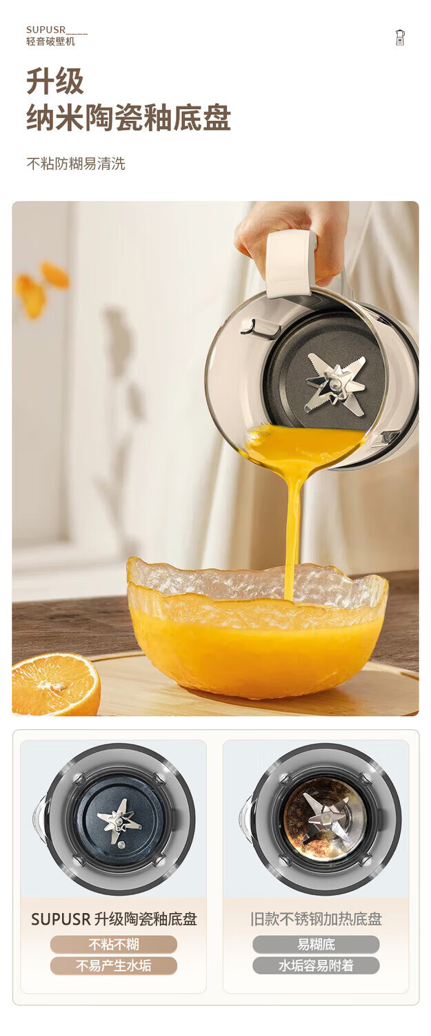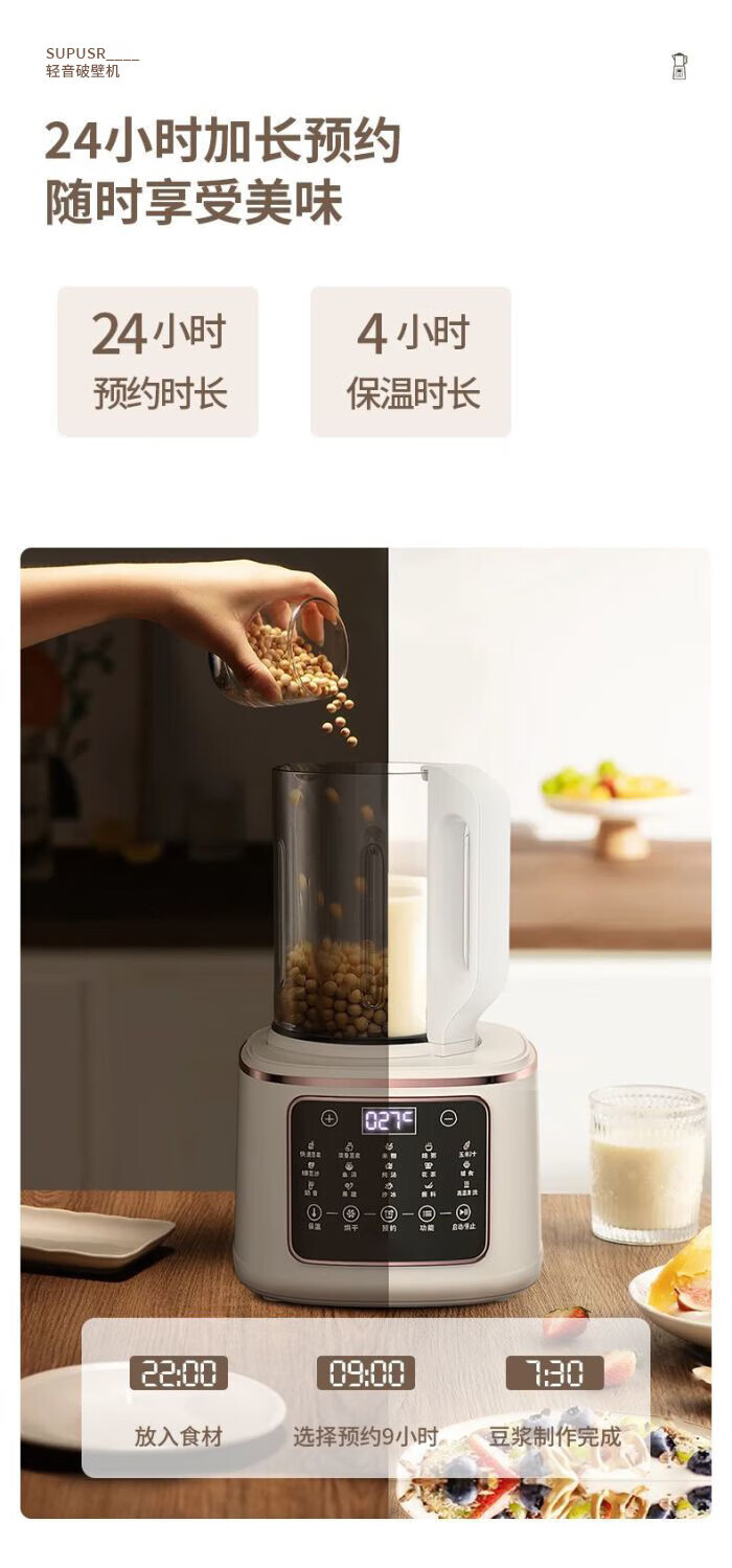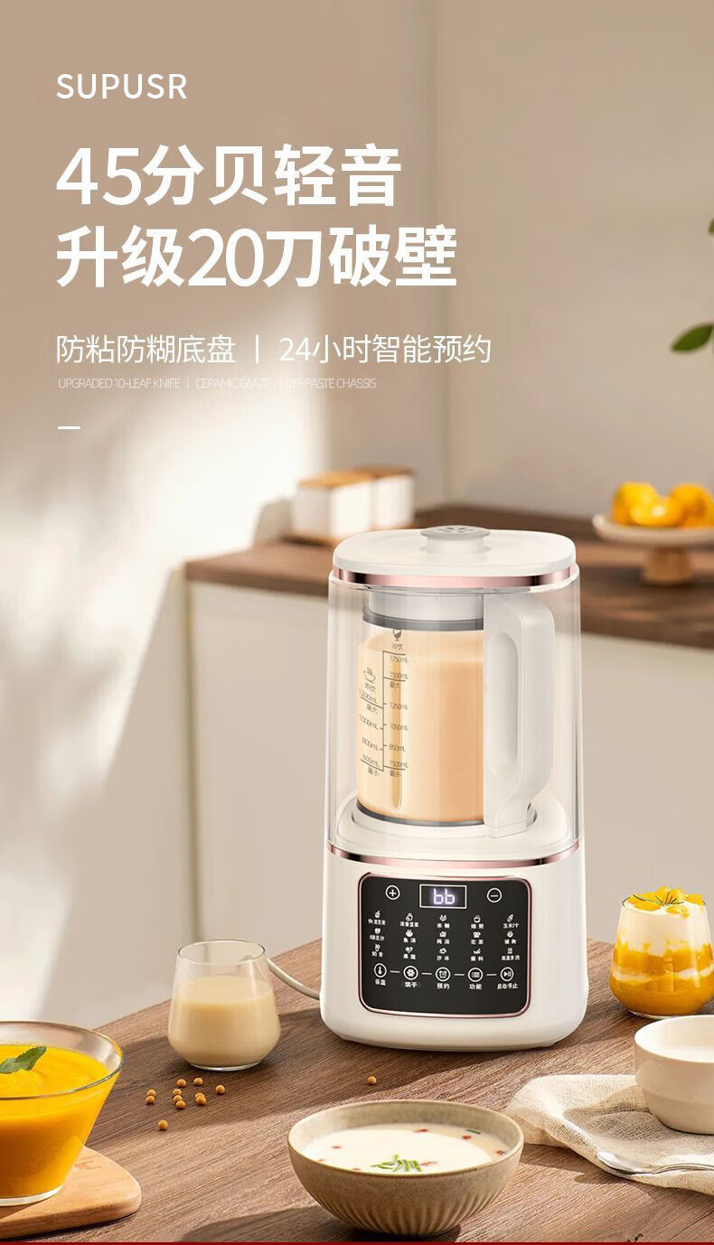 SUPUSR苏铂破壁机全自动豆浆机1.75L大容量免煮五谷杂粮多功能低音十重降噪智能预约加热高速榨汁机辅食 1.75L【防糊底盘+24叶刀】轻音破壁