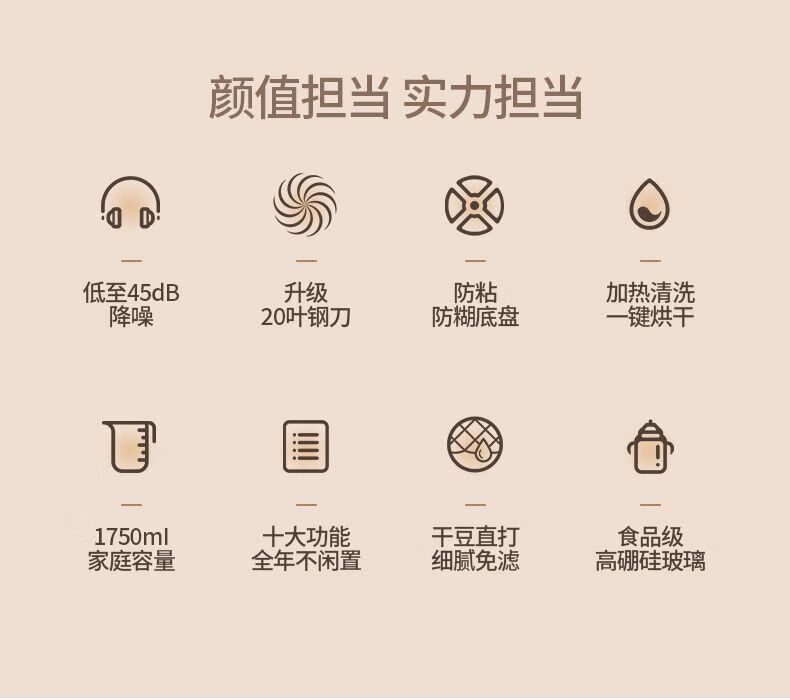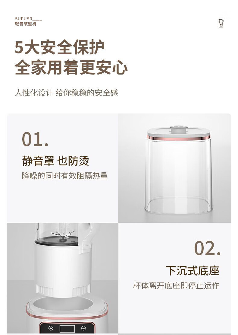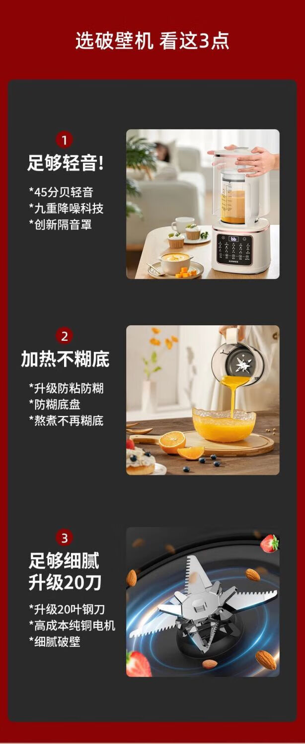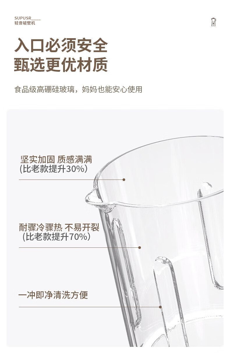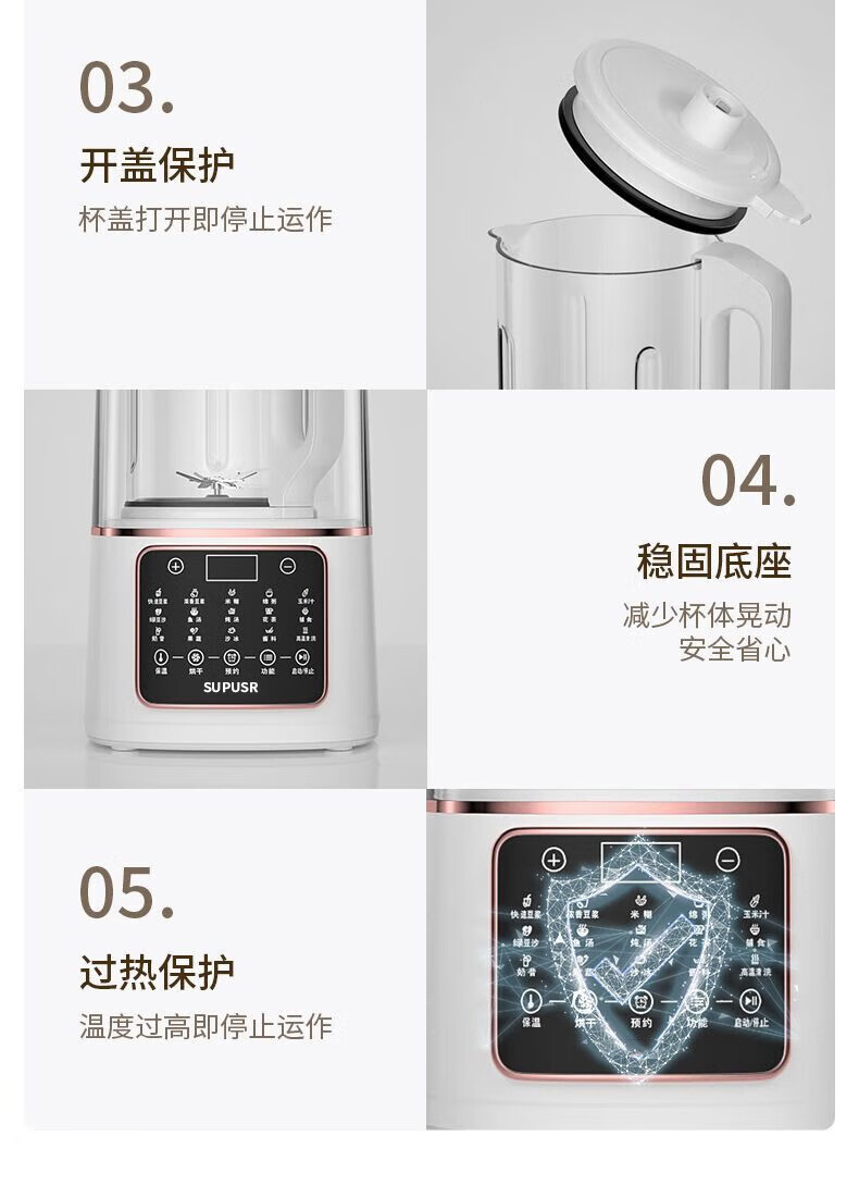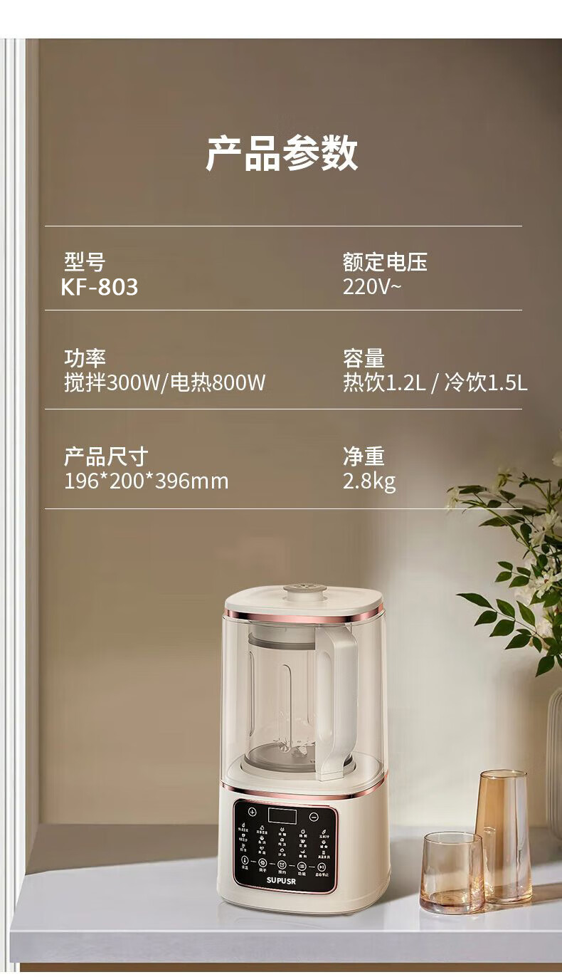 SUPUSR苏铂破壁机全自动豆浆机1.75L大容量免煮五谷杂粮多功能低音十重降噪智能预约加热高速榨汁机辅食 1.75L【防糊底盘+24叶刀】轻音破壁
