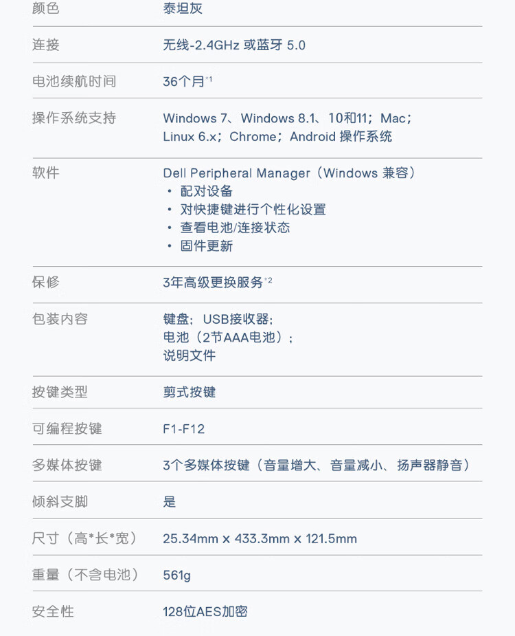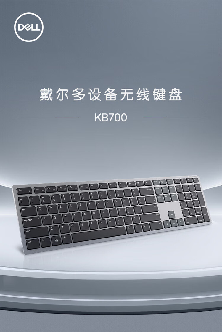 戴尔(DELL)KB700 无线键盘 办公家用键盘 精巧键盘 低噪高效 USB外接 泰坦灰