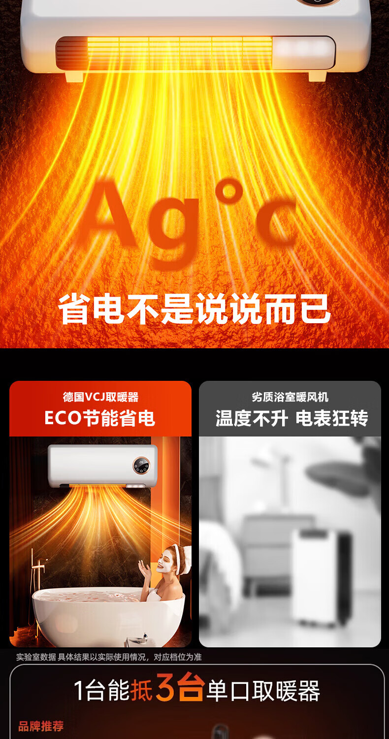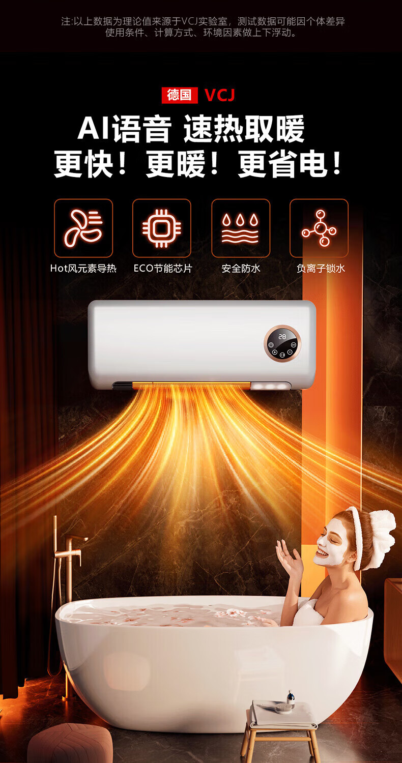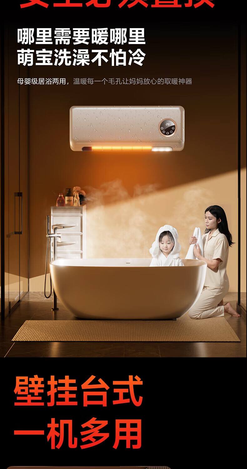 VCJ【卧浴两用】暖风机免打孔壁挂取暖器遥控家用IPX3级防水浴霸冷暖两用电暖器电暖气热风机低噪节能 机械款【安全防高温+IPX3级防水】