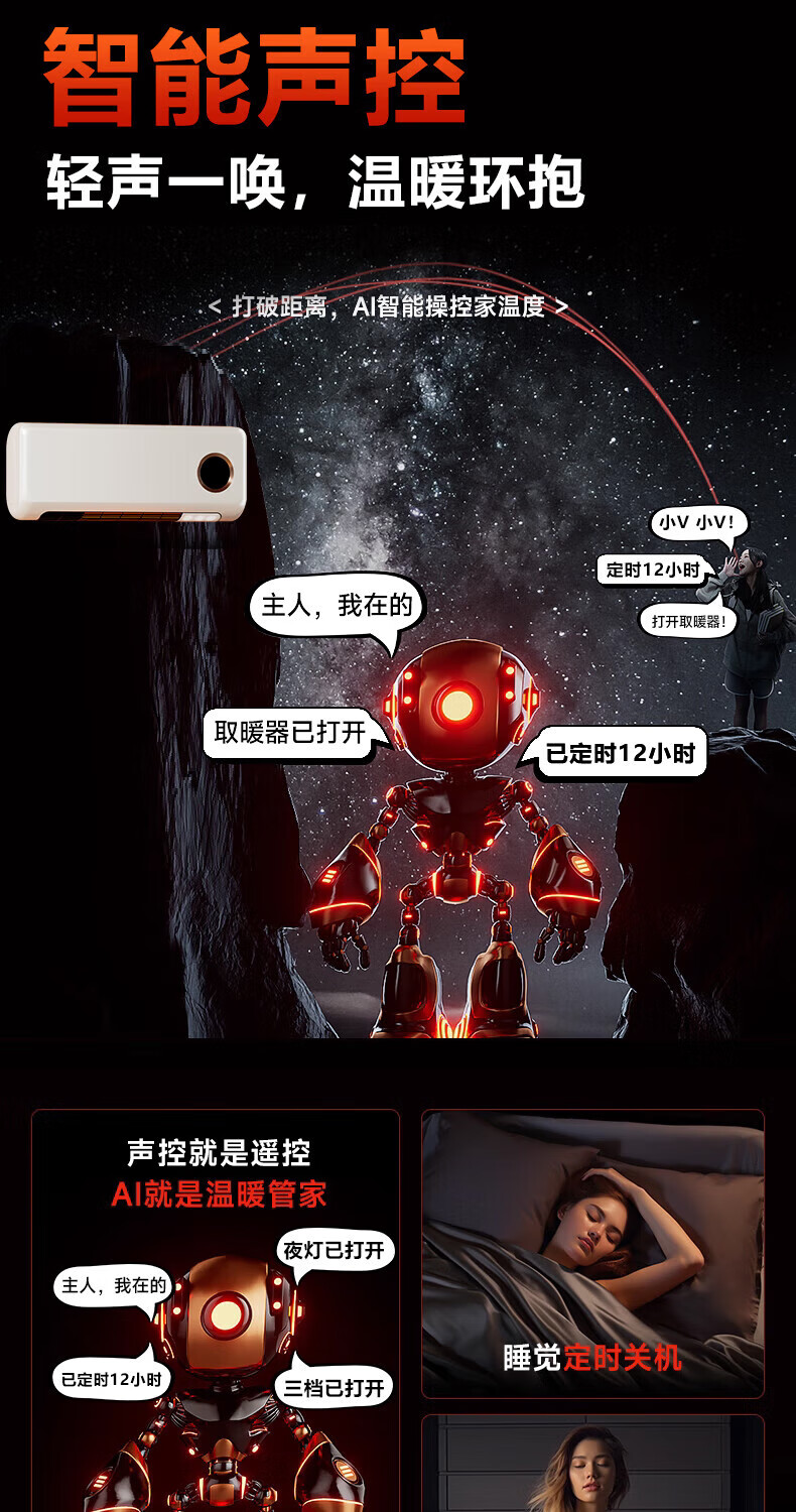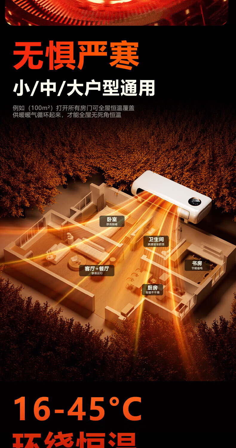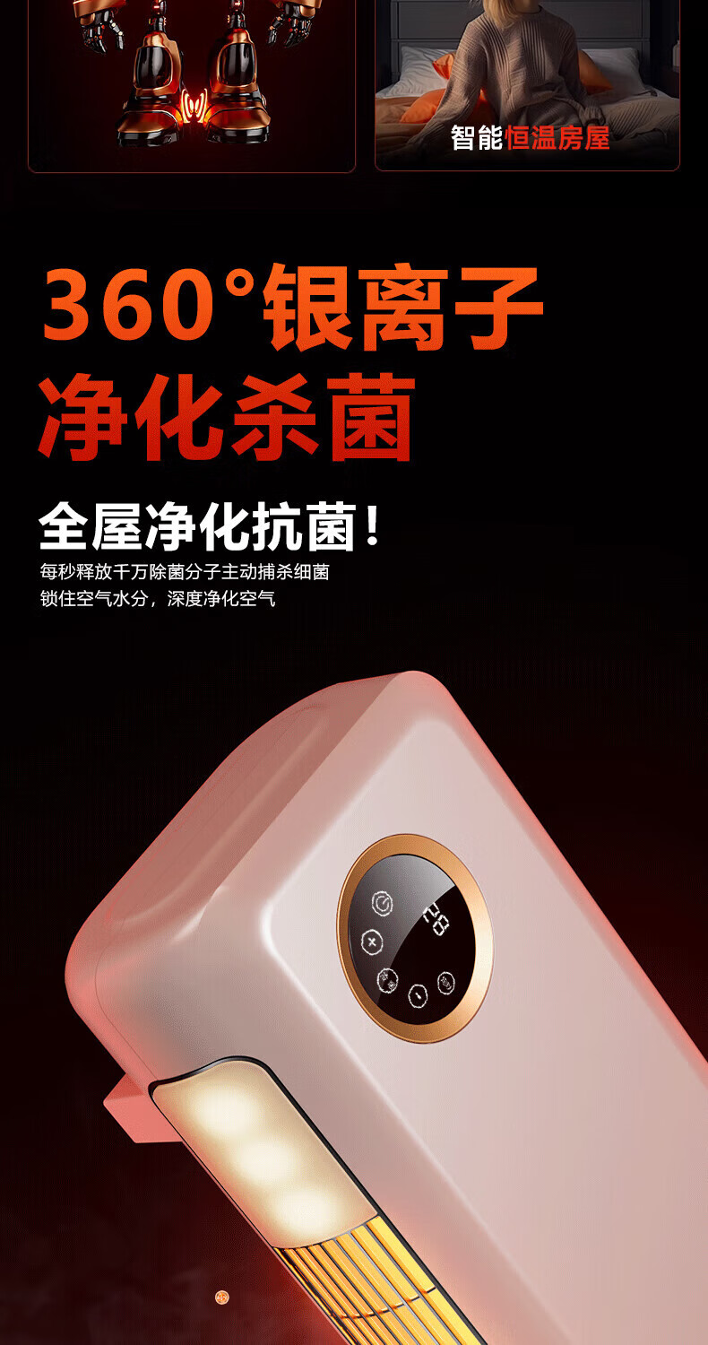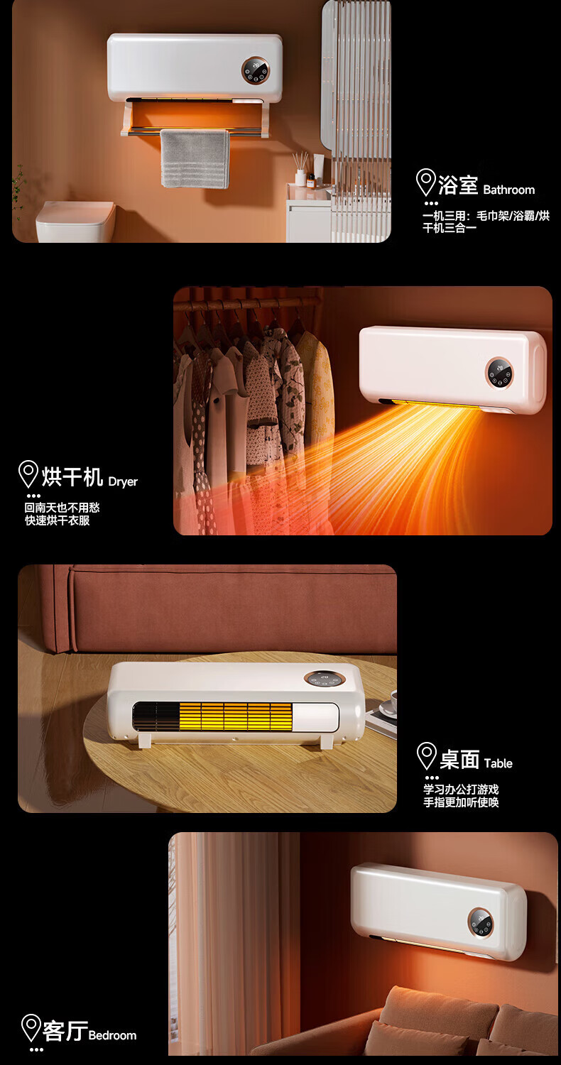VCJ【卧浴两用】暖风机免打孔壁挂取暖器遥控家用IPX3级防水浴霸冷暖两用电暖器电暖气热风机低噪节能 机械款【安全防高温+IPX3级防水】