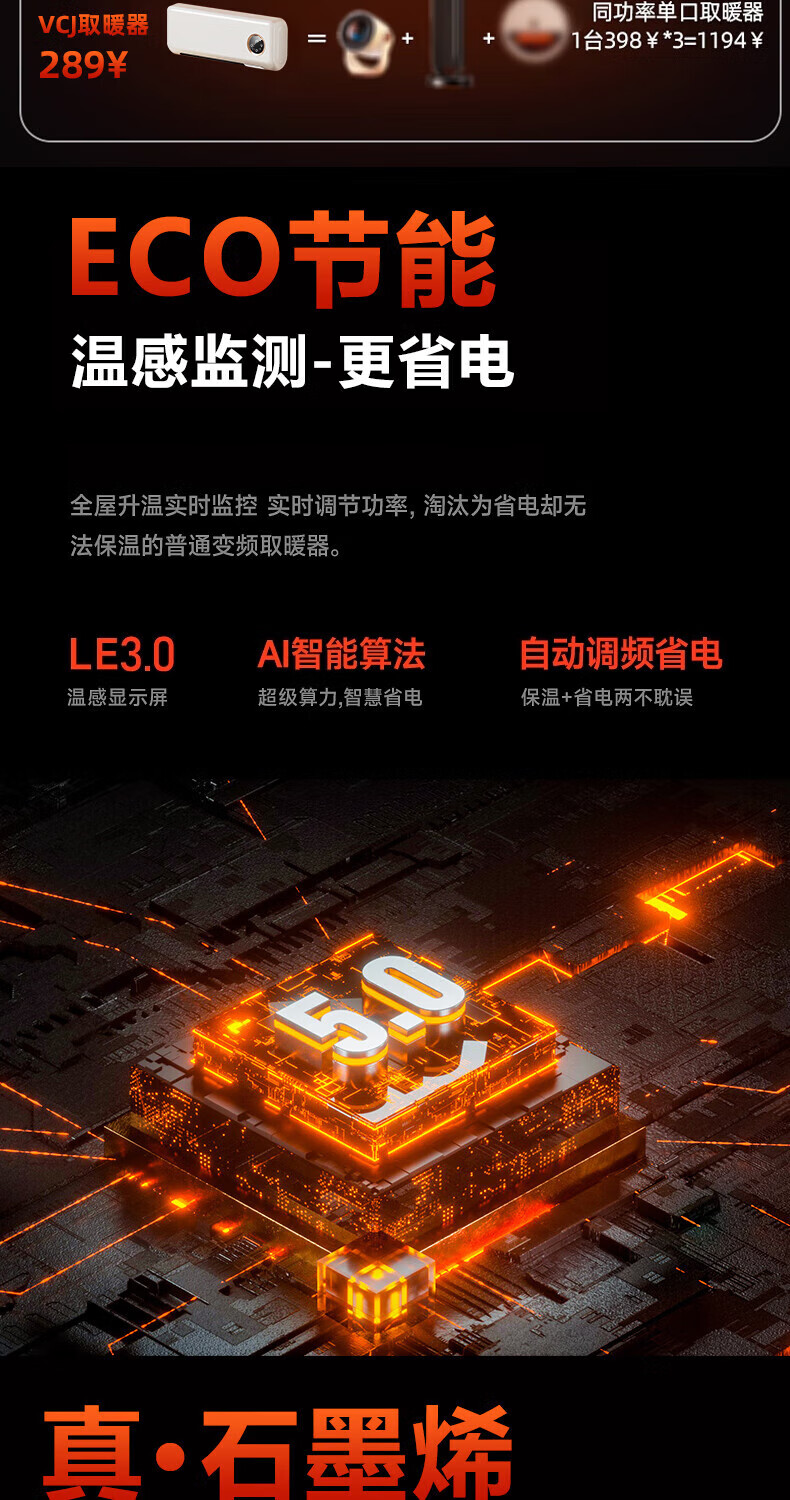 艾美特(AIRMATE)【热销爆款】石墨烯踢脚线取暖器暖风机速热电热电暖器遥控智能电暖气 家用浴室节能全屋升温 SR79