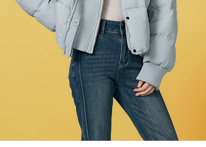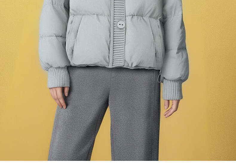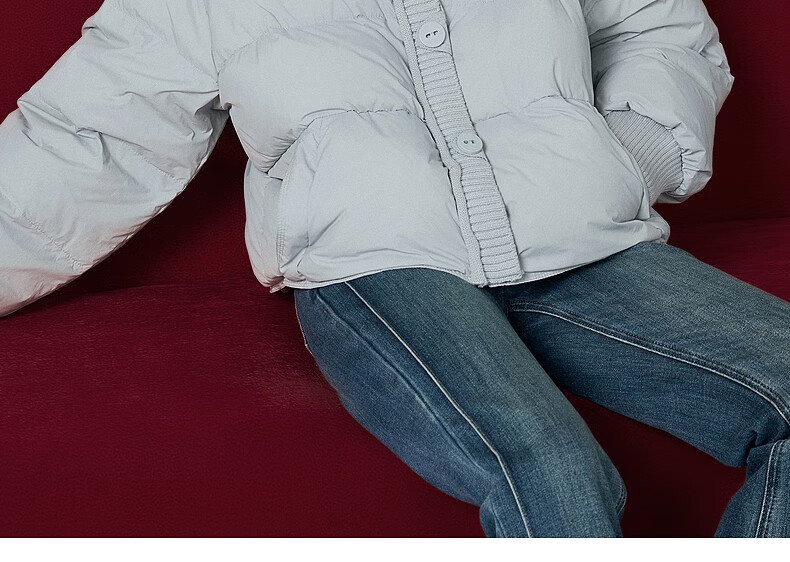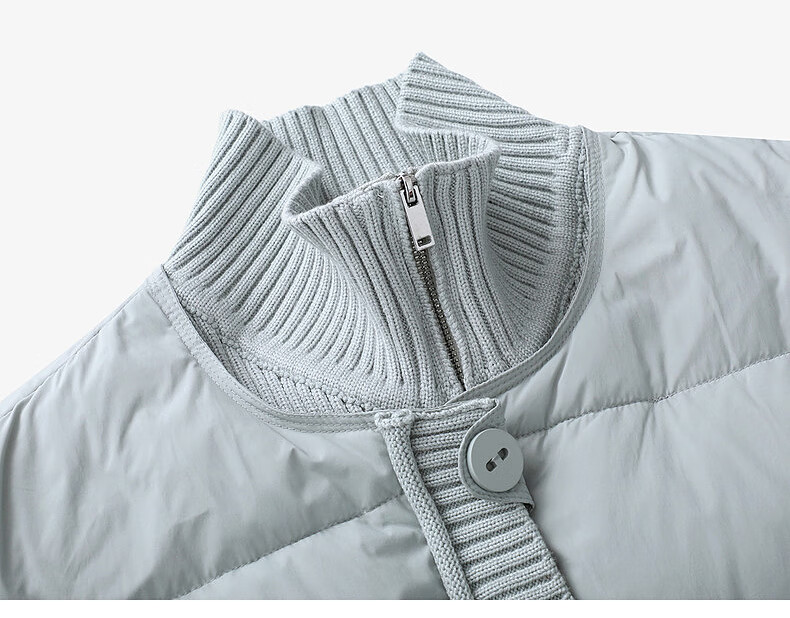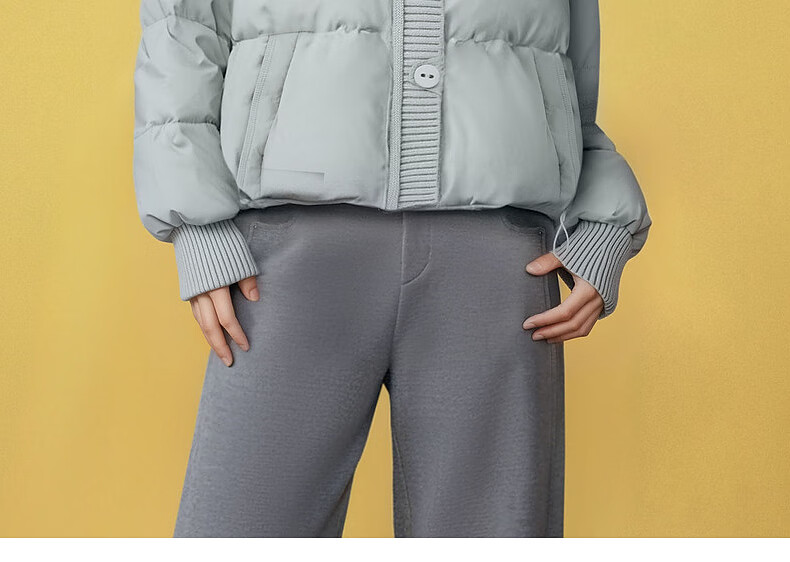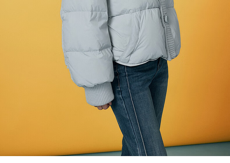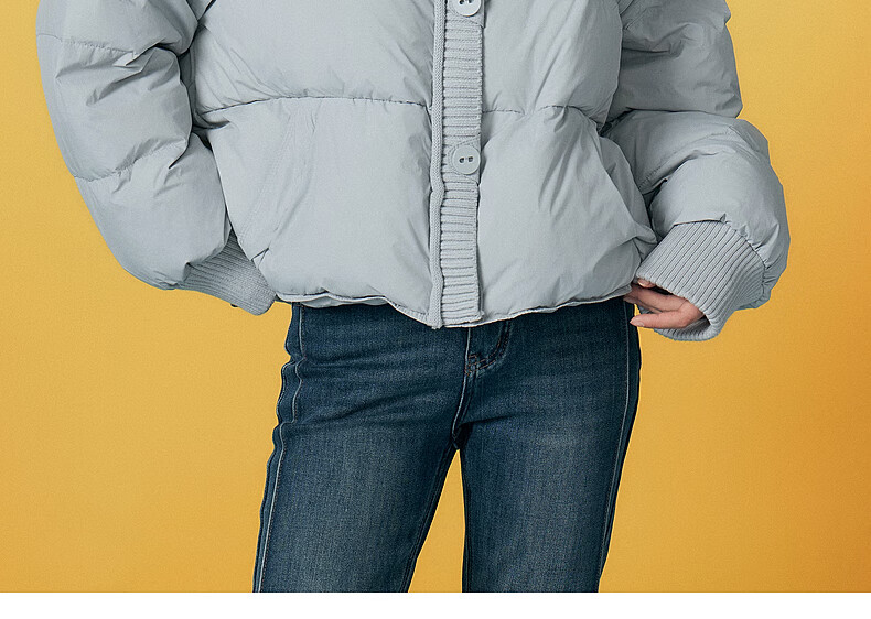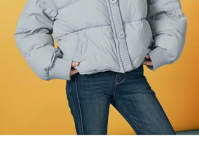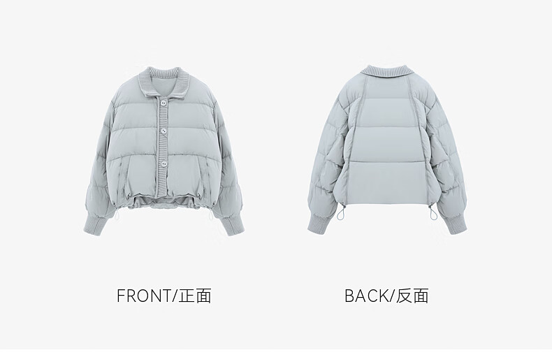 Basic House/百家好针织立领短款羽绒服冬季新款加厚90白鸭绒外套 浅蓝 M
