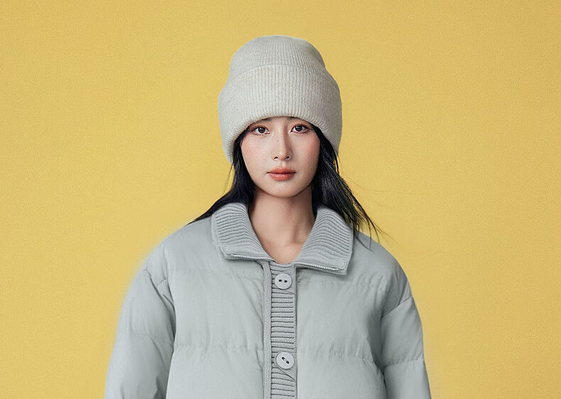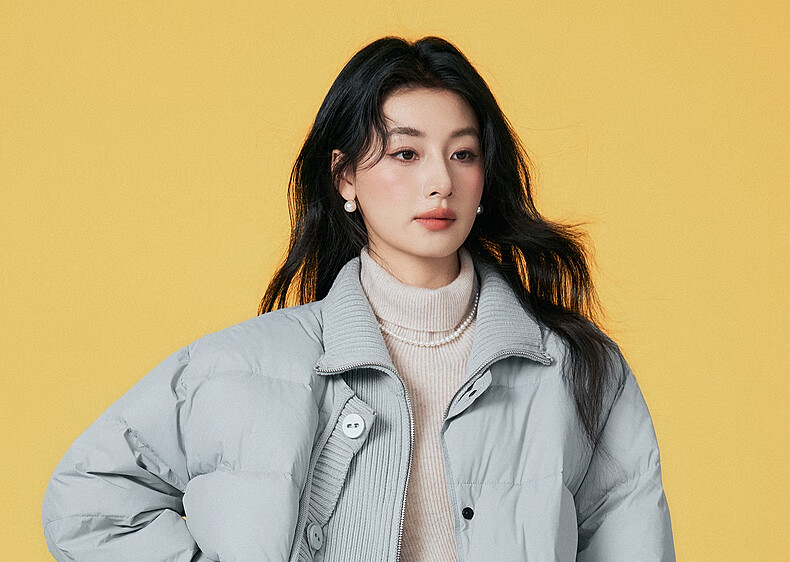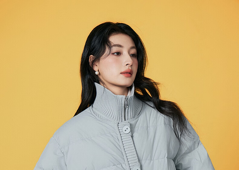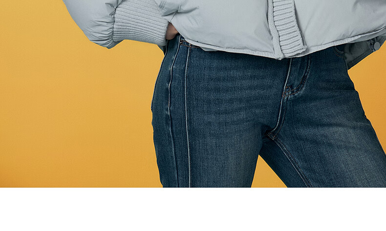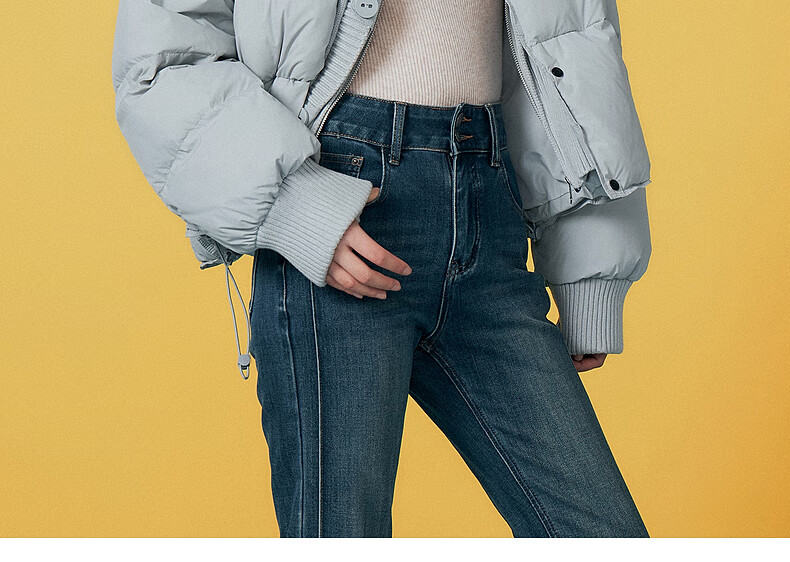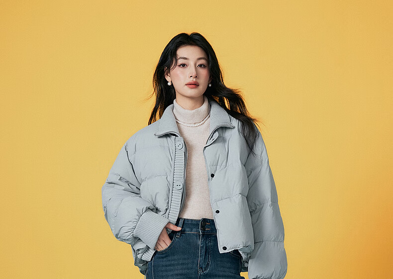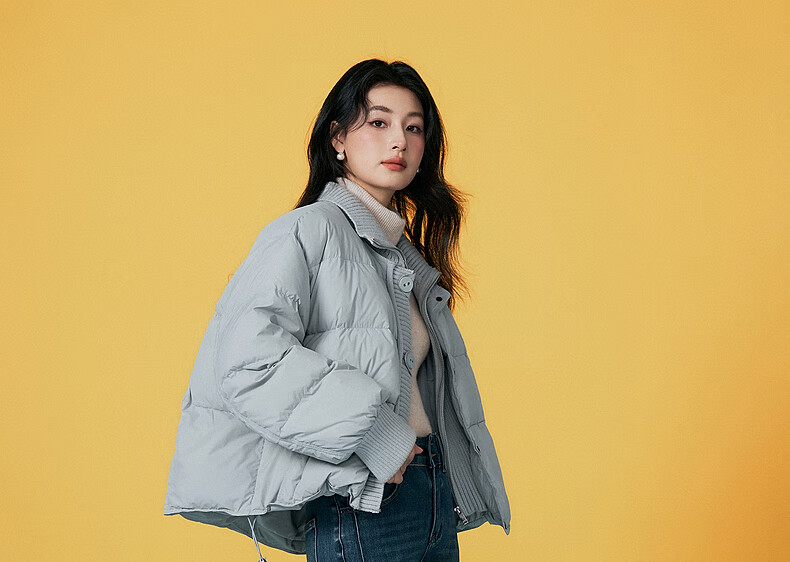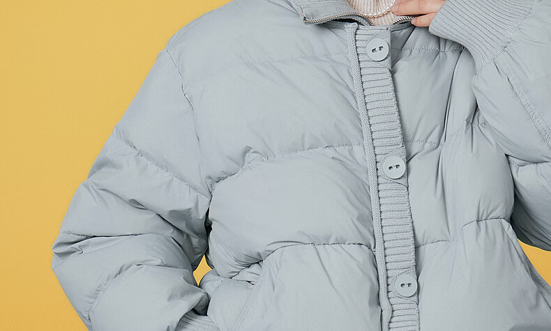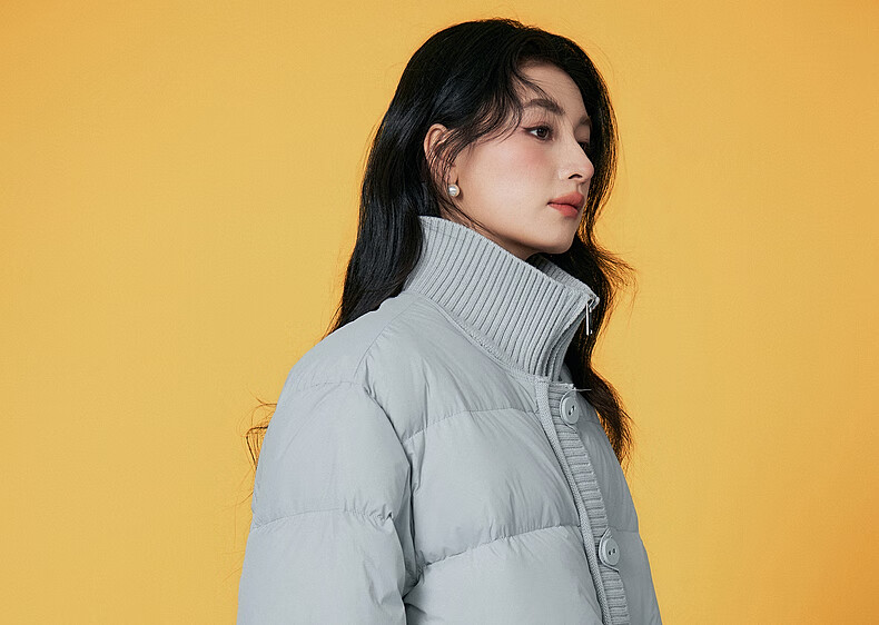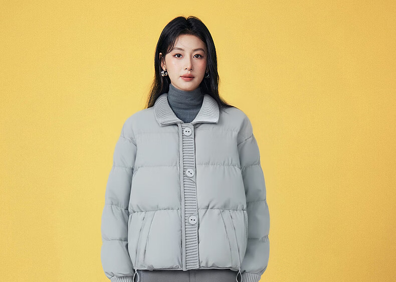 Basic House/百家好针织立领短款羽绒服冬季新款加厚90白鸭绒外套 浅蓝 M