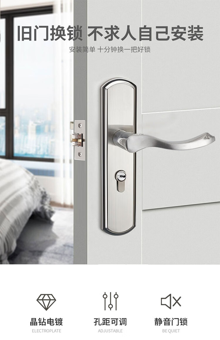 云航室内门锁木门锁卧室房门锁整套单舌锁卫生间实木门锁把手 免改孔125A锁体套装