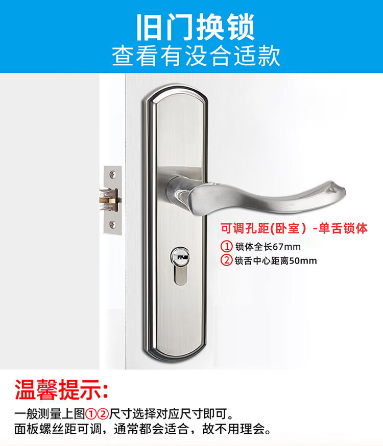 云航防盗门锁体家用大门锁通用锁体不锈钢防盗锁体入户门防盗门锁配件 24*240方舌锁体有钩