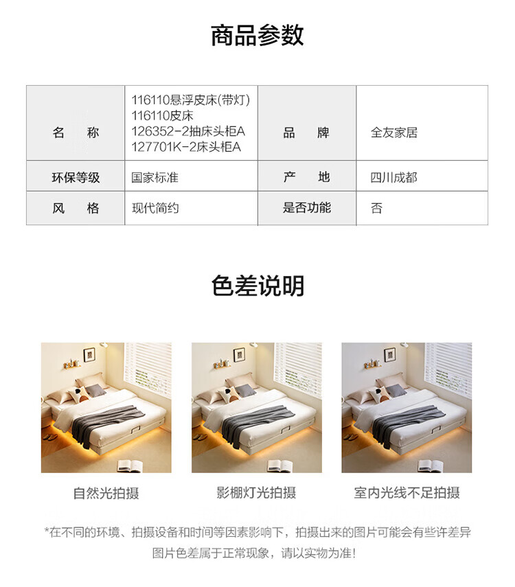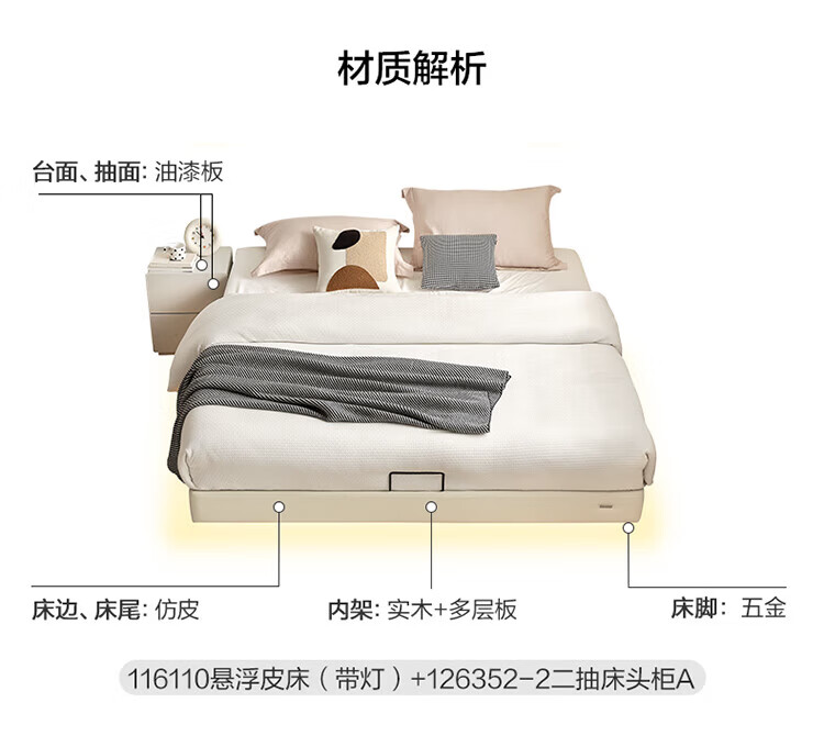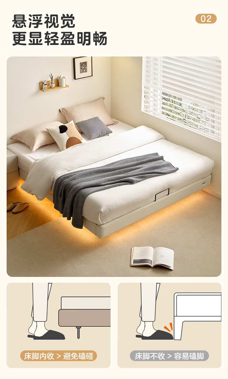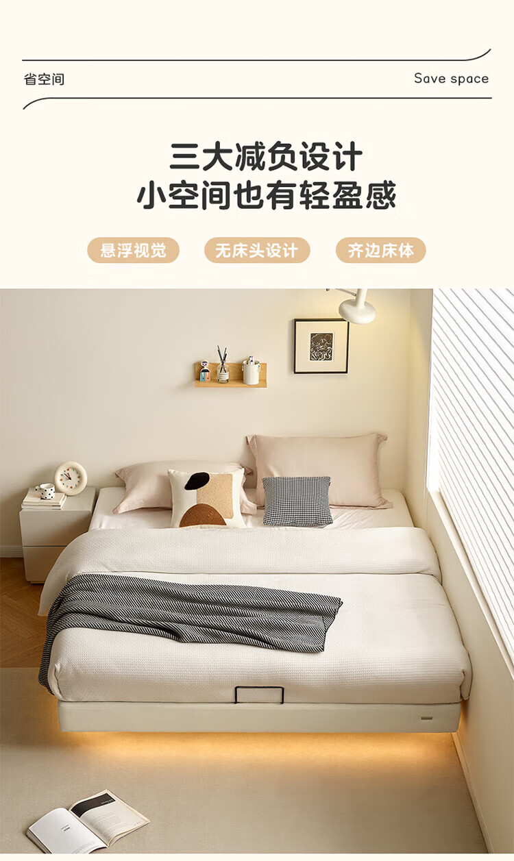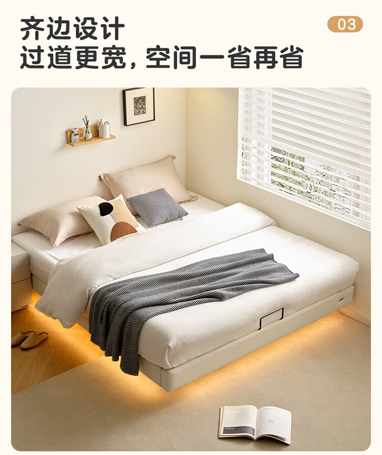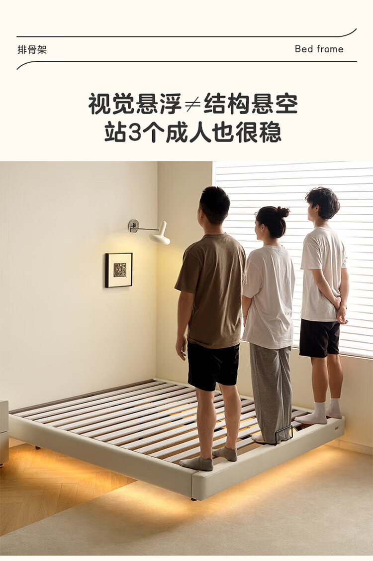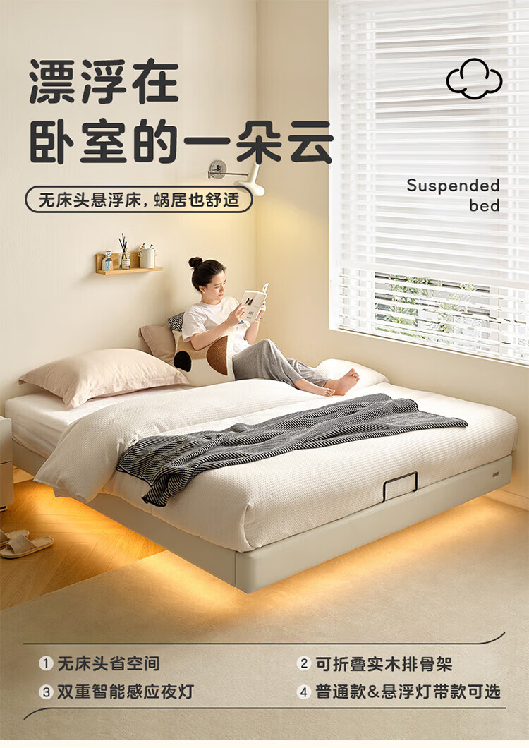 全友(QUANU)家居现代简约小户型皮艺悬浮床榻榻米主卧室双人大床无床头齐边床 高脚床 1.35米×2米 单床