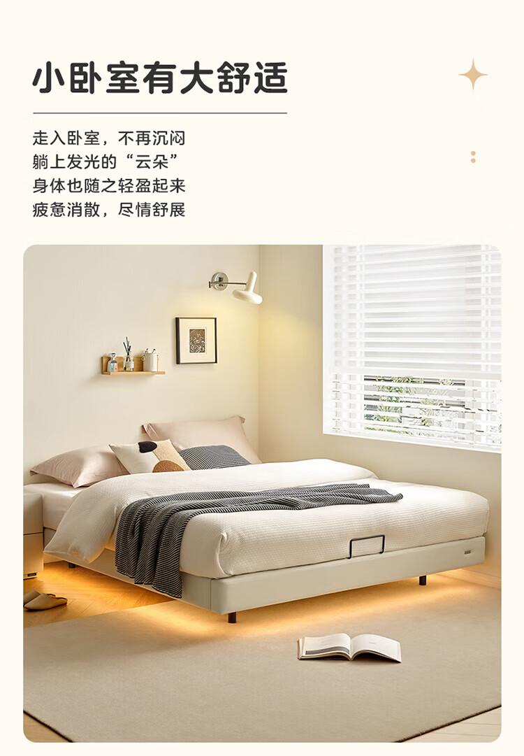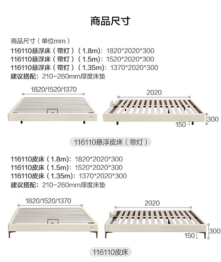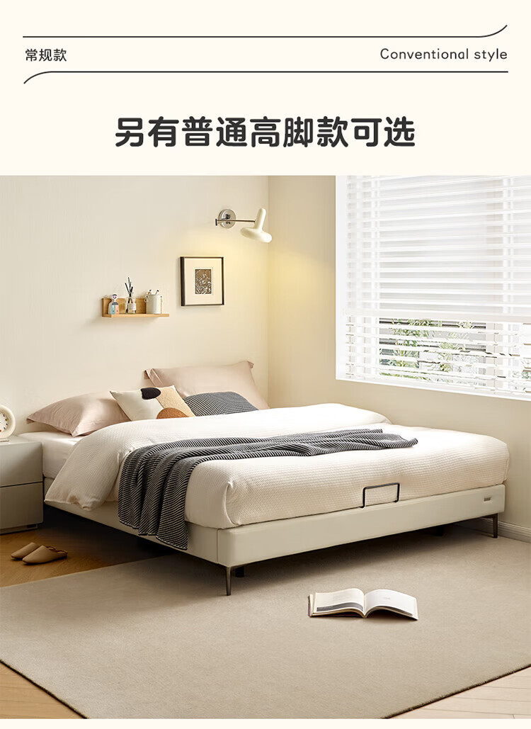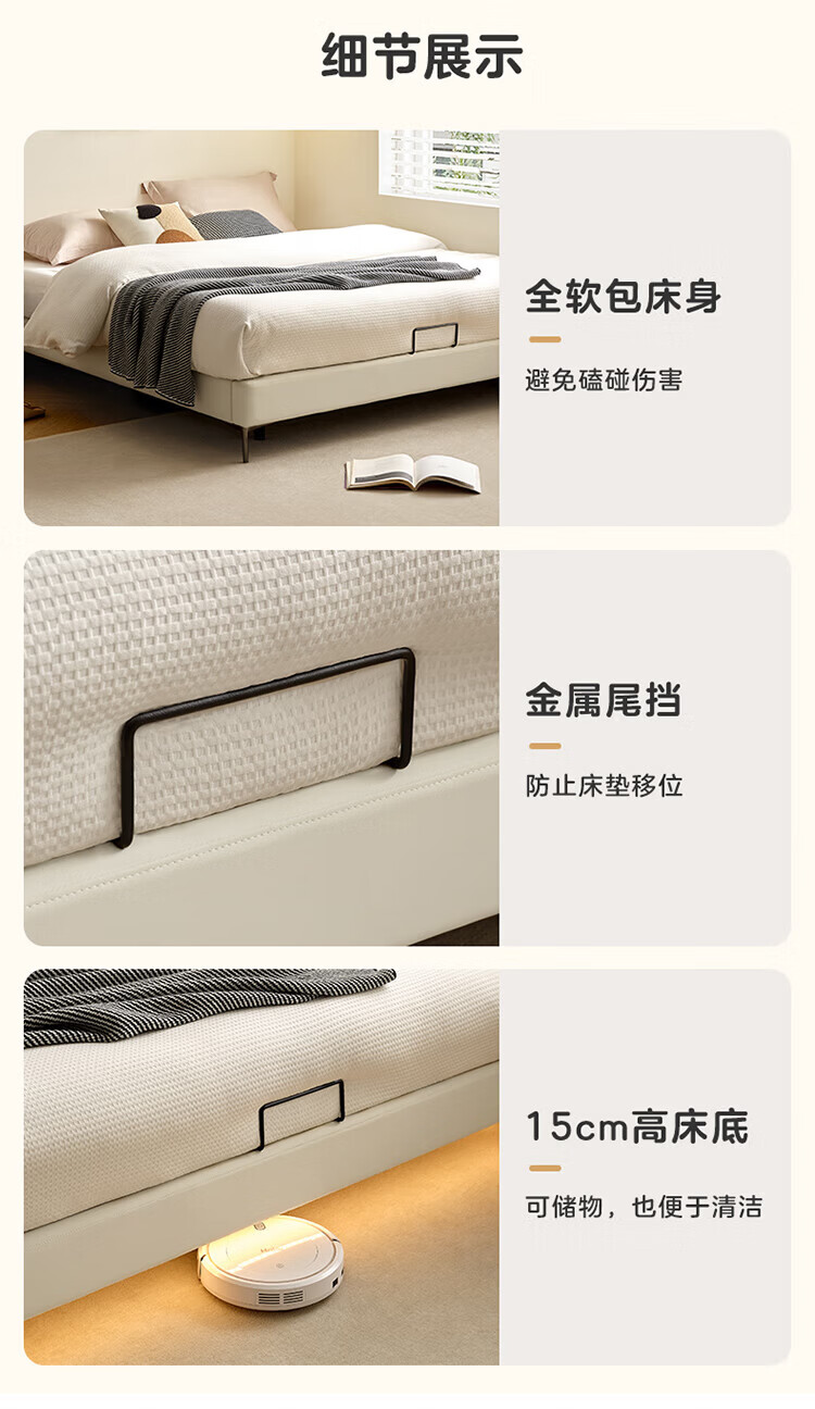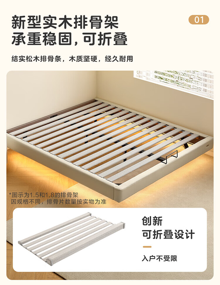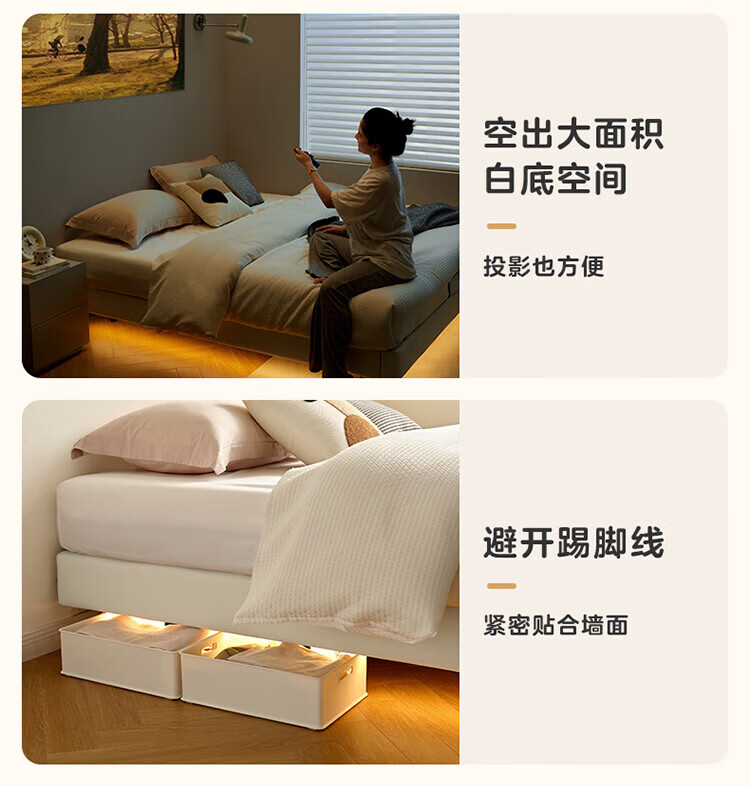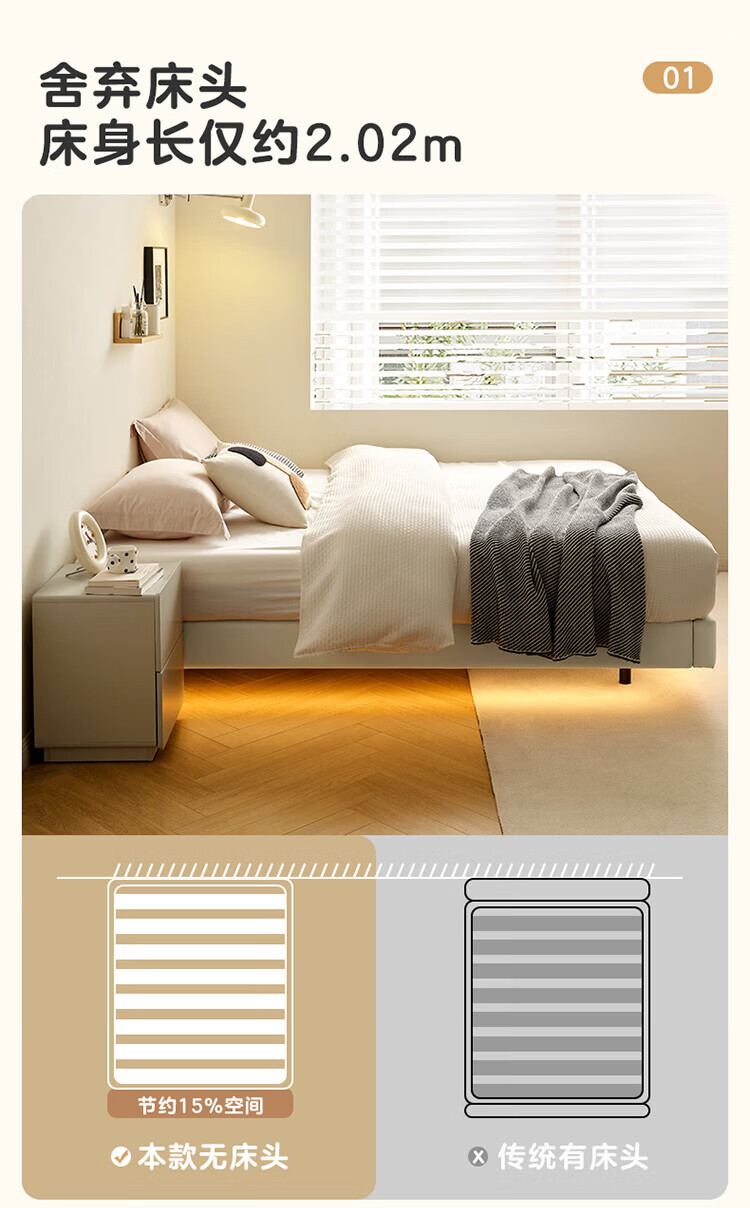 全友(QUANU)家居现代简约小户型皮艺悬浮床榻榻米主卧室双人大床无床头齐边床 高脚床 1.35米×2米 单床