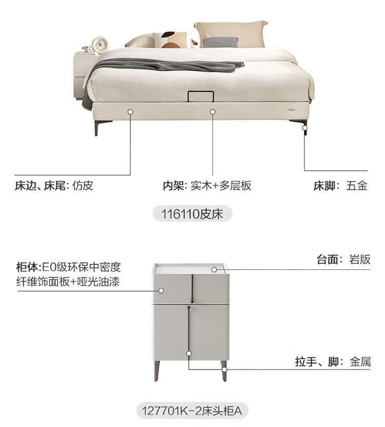 全友家居 高箱储物收纳板式床现代简约主卧室床1.8x2米双人大床含床垫
